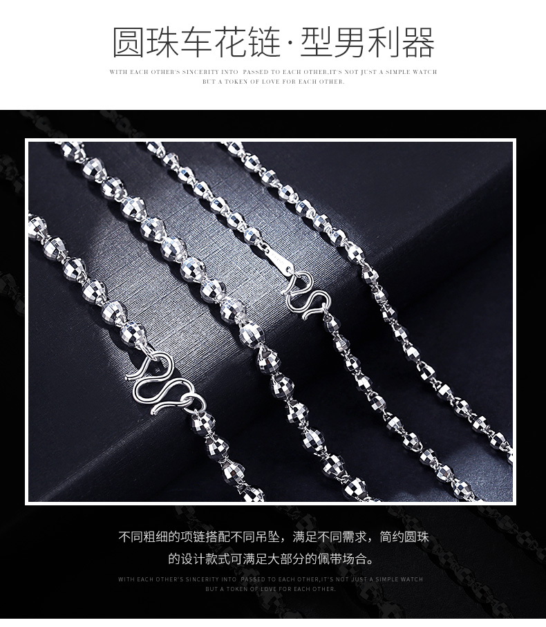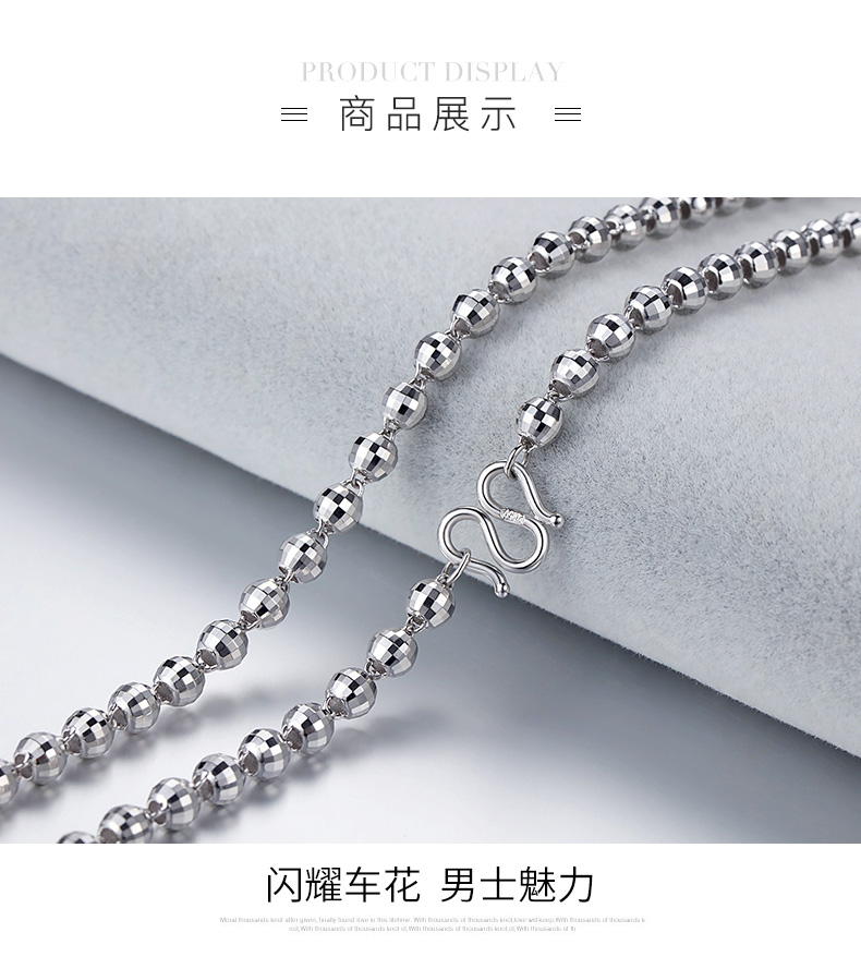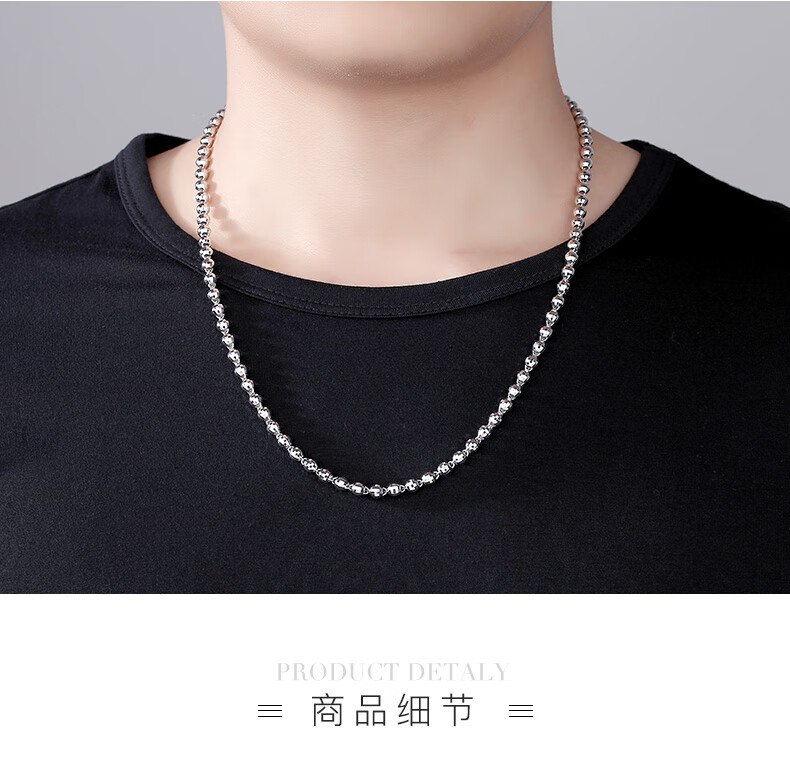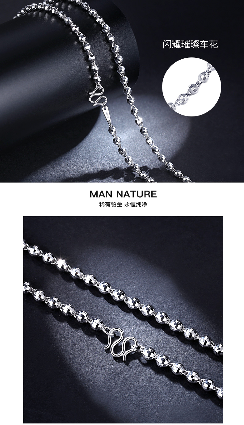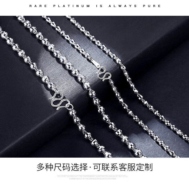 Huiyoulan pt950 platinum necklace for men, platinum laser bead chain for women, 950 Buddha beads, plain chain, thick round bead necklace, Chinese Valentine's Day gift, Christmas gift, PT950, weight about 8.83g, length 43cm, thickness about 2.5m