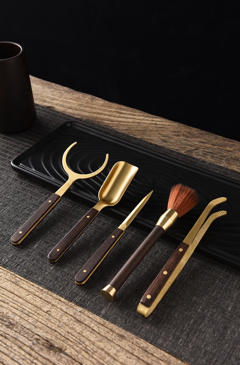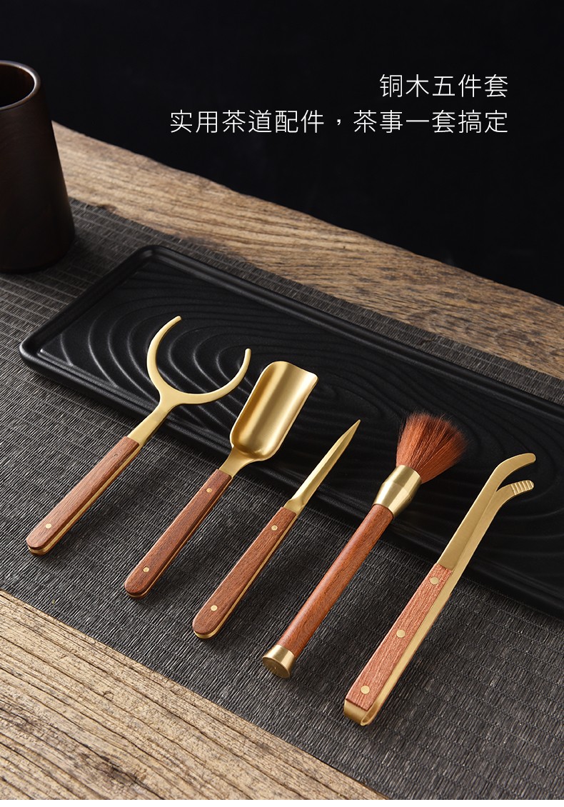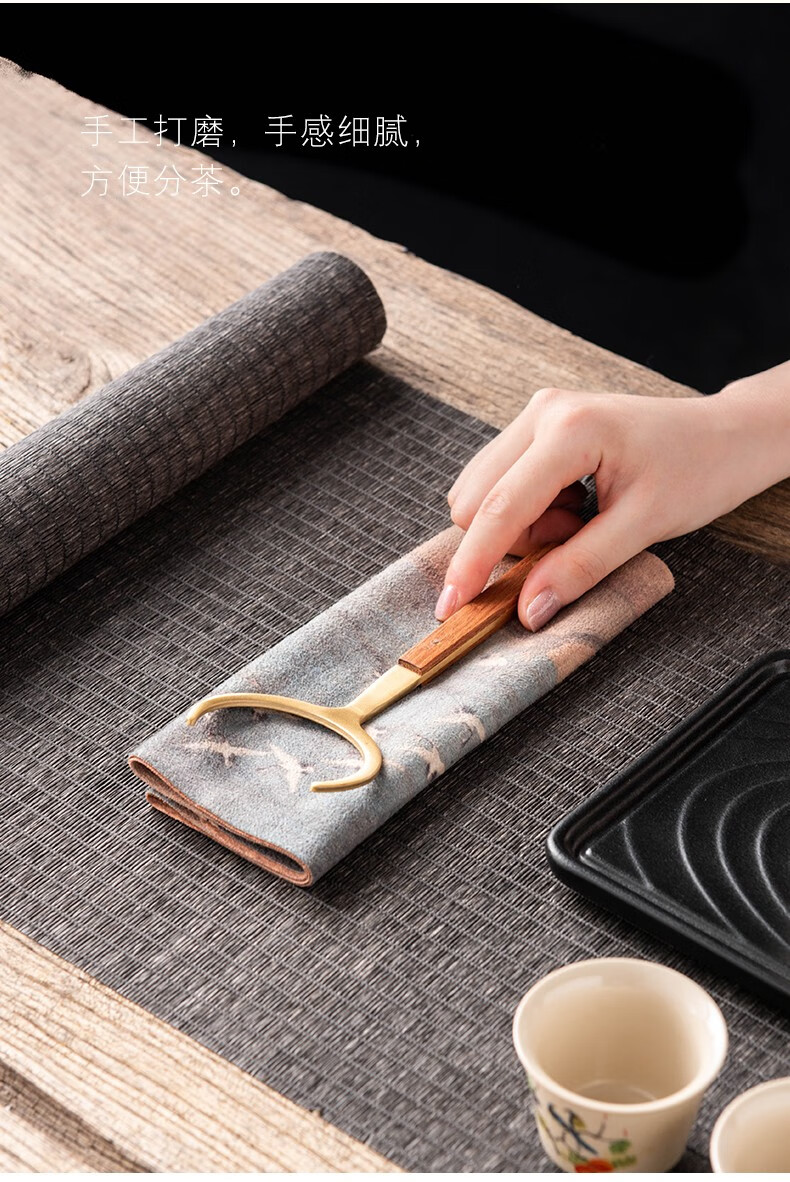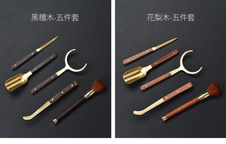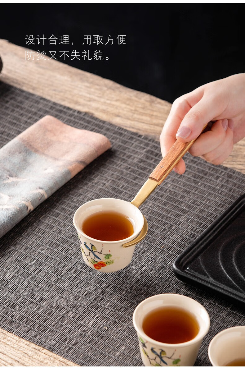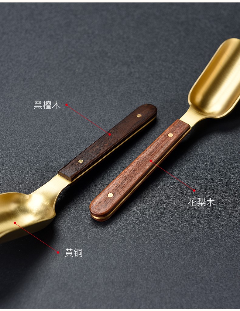 Miaolian Tianxiang rosewood copper tea ceremony six gentlemen tea set accessories ebony tea cup fork tea spoon tea clip tea knife T61-008A tea spoon (ebony)
