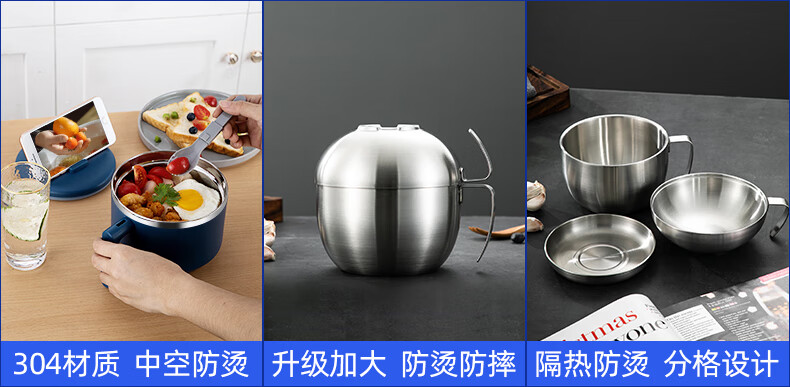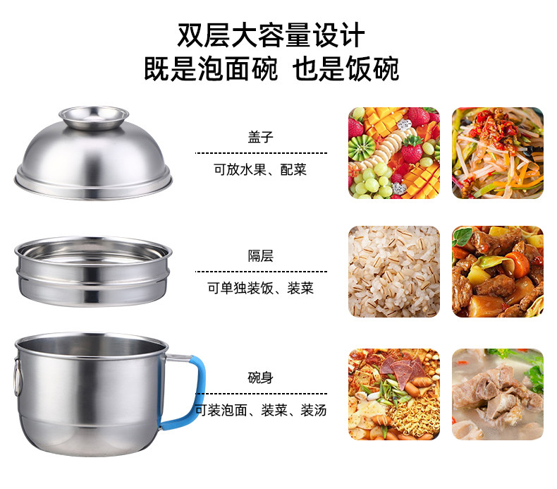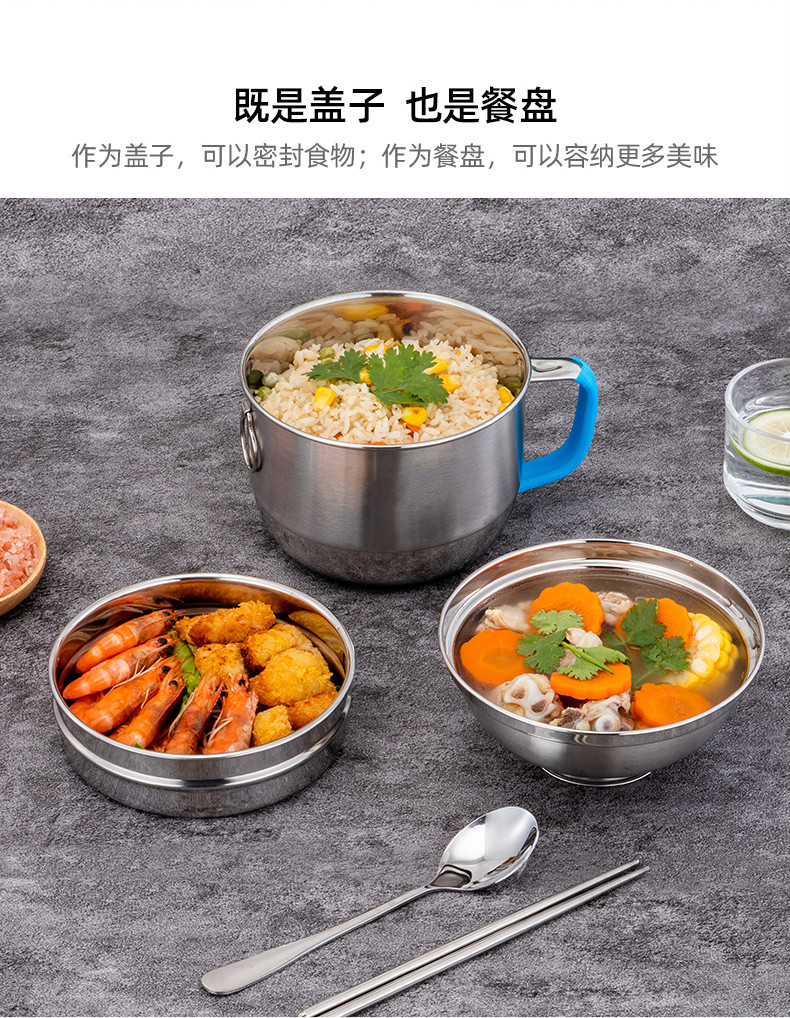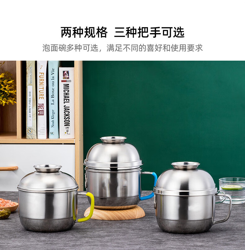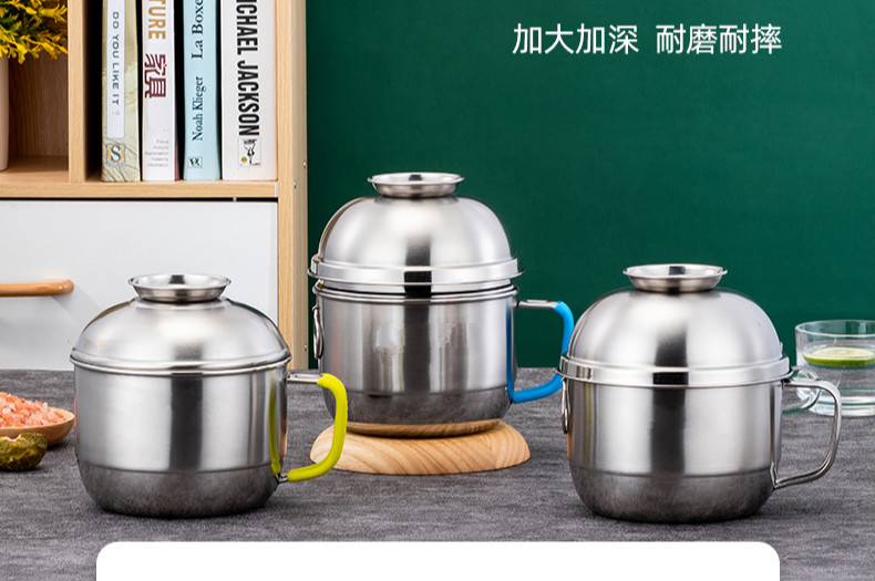 304 stainless steel instant noodle bowl with lid, lunch box for single student dormitory, canteen fast food cup, portable lunch bowl, stainless steel without grid