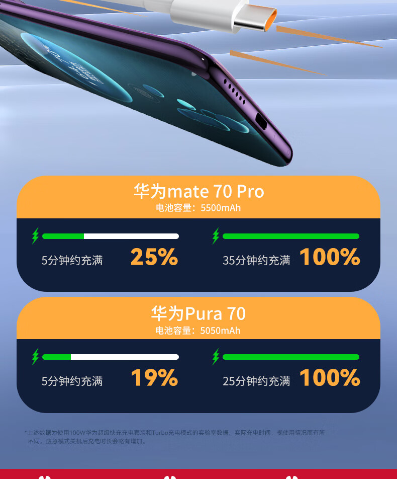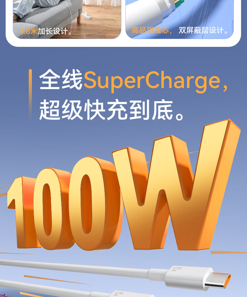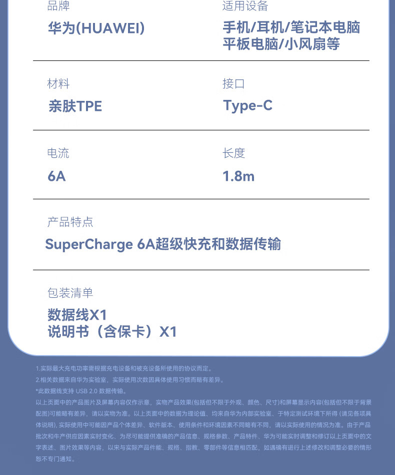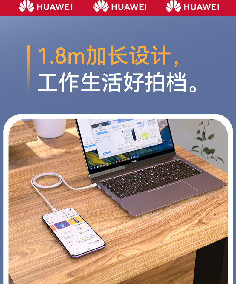 Huawei original 6A super fast charging 1.8m double-headed data cable laptop charging cable MateBook