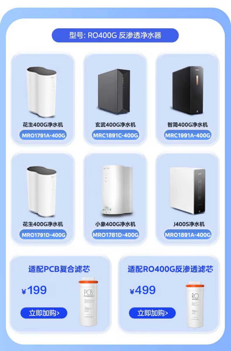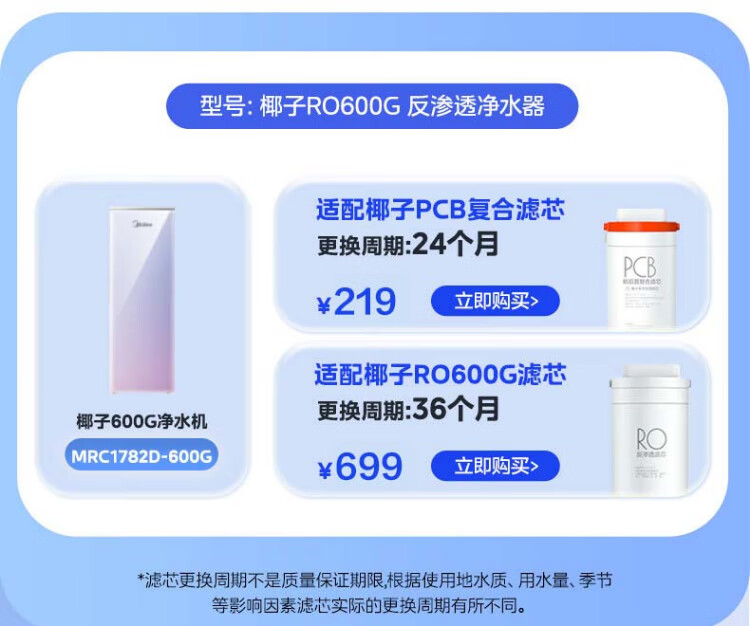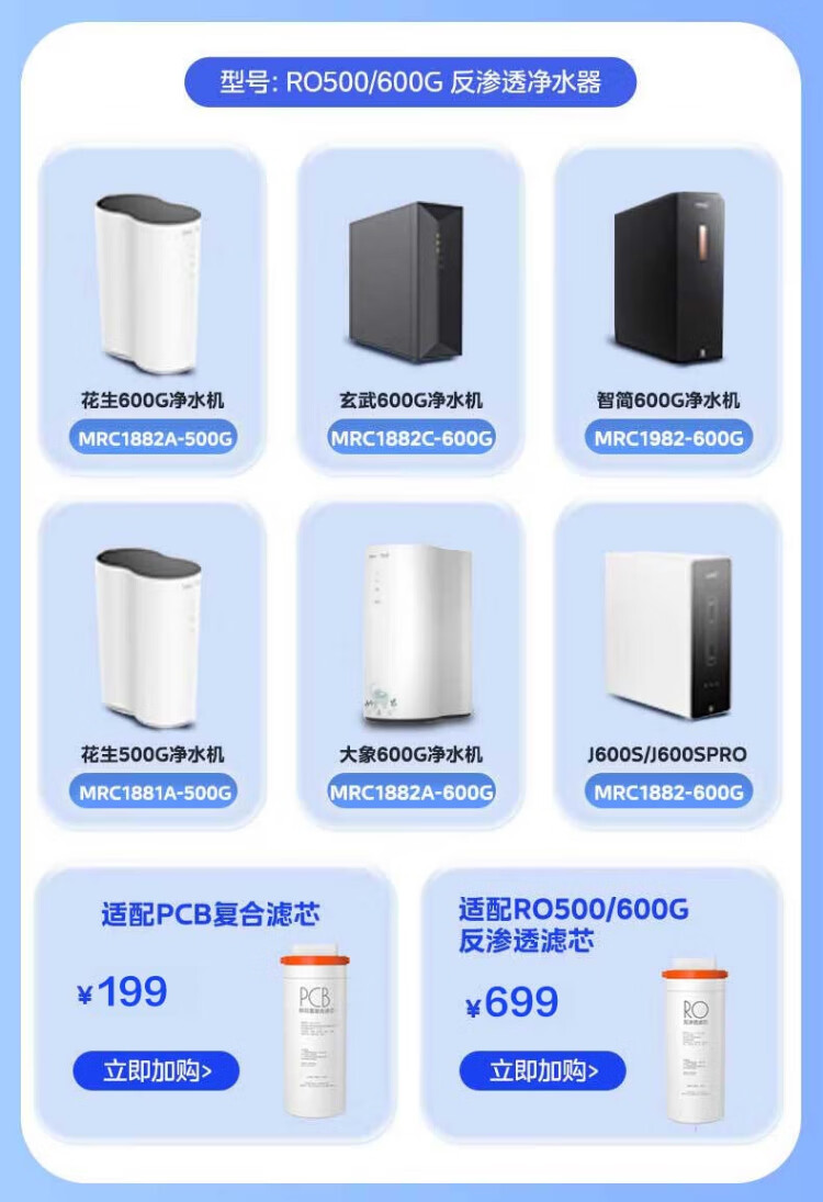 Midea water purifier 0 scale inhibitor filter element is suitable for MRC1882/1882A/1882C/1982/1782D-600G 1881A-500G XRO103-1500 Fist series set PCB+RO600G