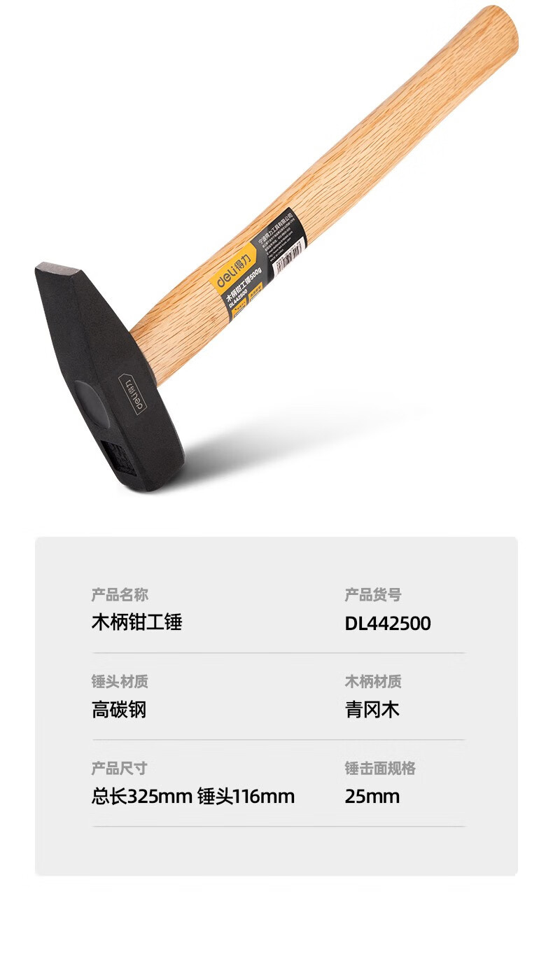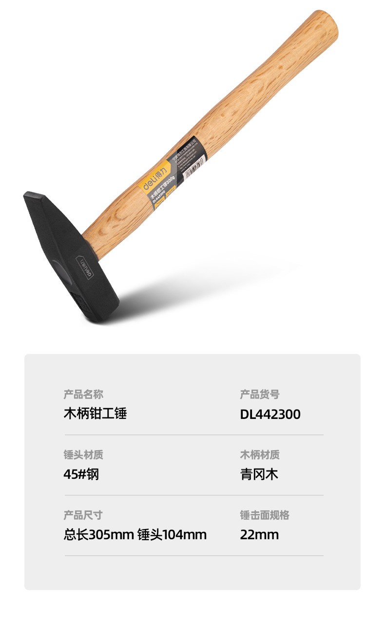 Deli wooden handle fitter hammer duckbill hammer small hammer electrician hammer small hammer small hammer hammer DL442200 wooden handle fitter hammer 200g