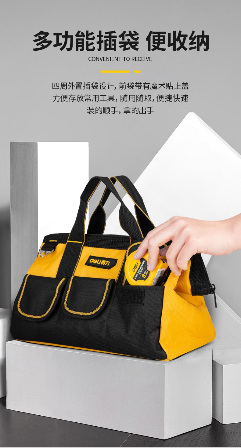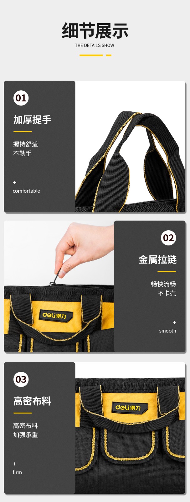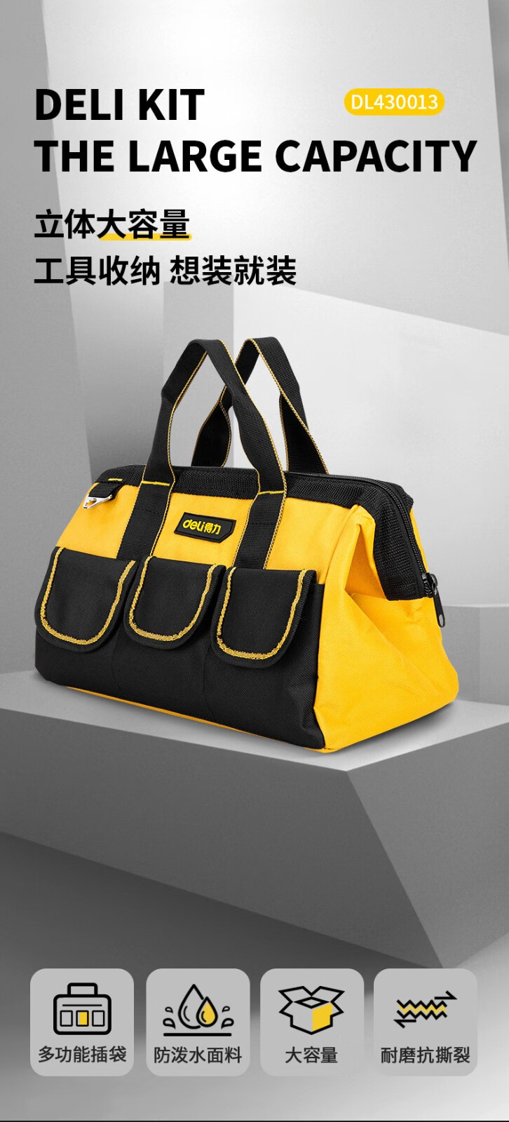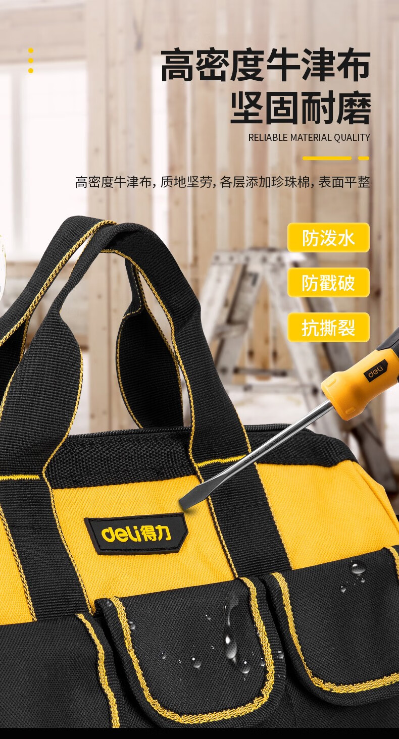 Deli tool bag Oxford cloth large multi-functional home appliance repair bag shoulder thickened electrician bag tool bag tool pocket DL430003