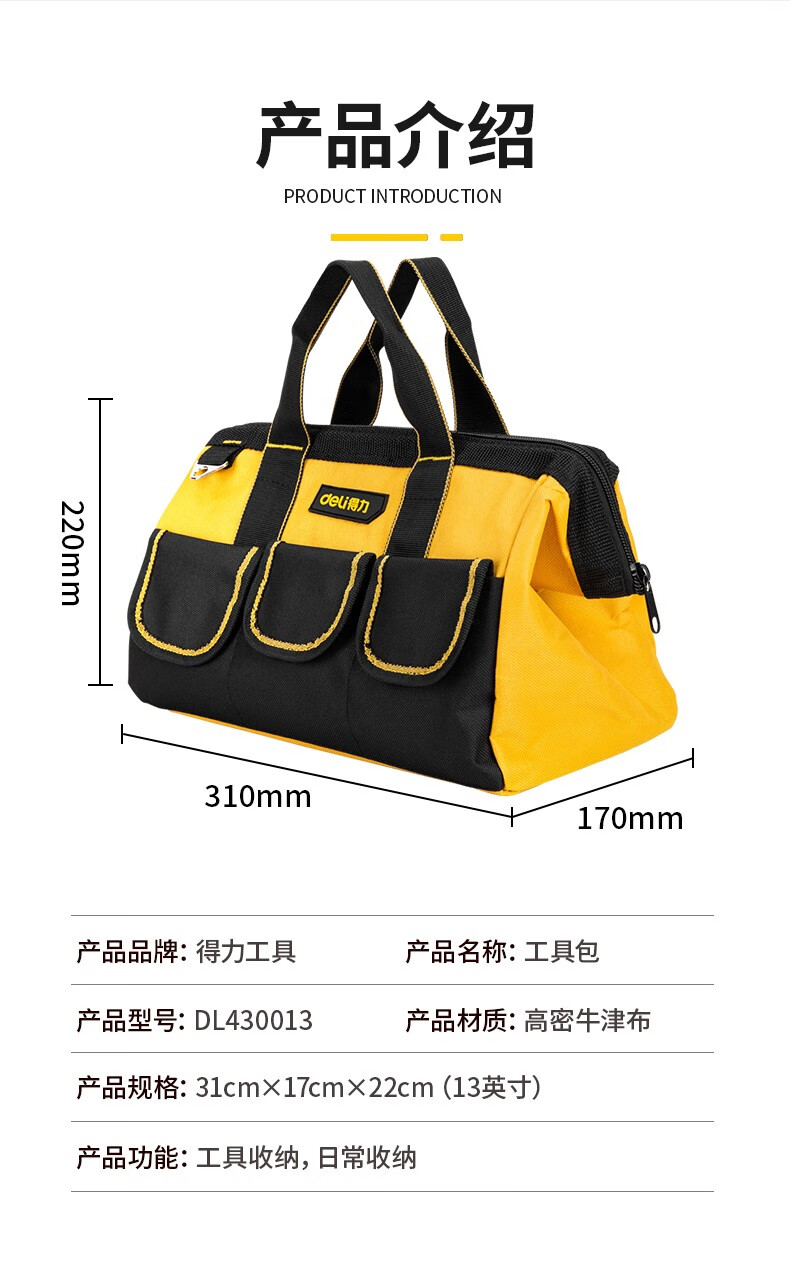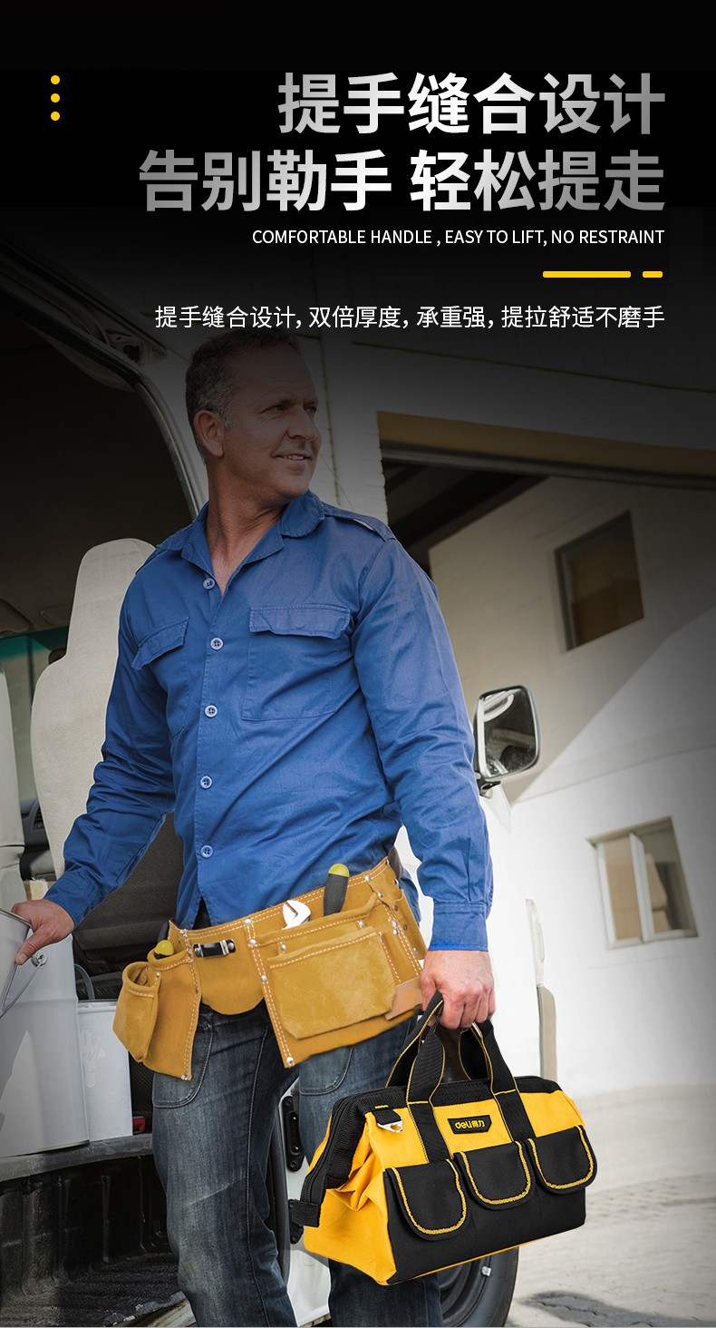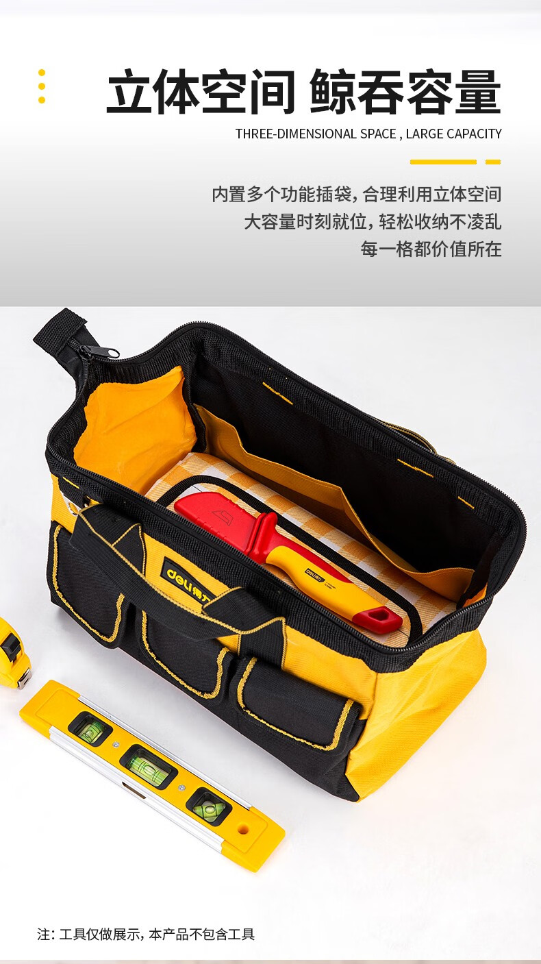Deli tool bag Oxford cloth large multi-functional home appliance repair bag shoulder thickened electrician bag tool bag tool pocket DL430003