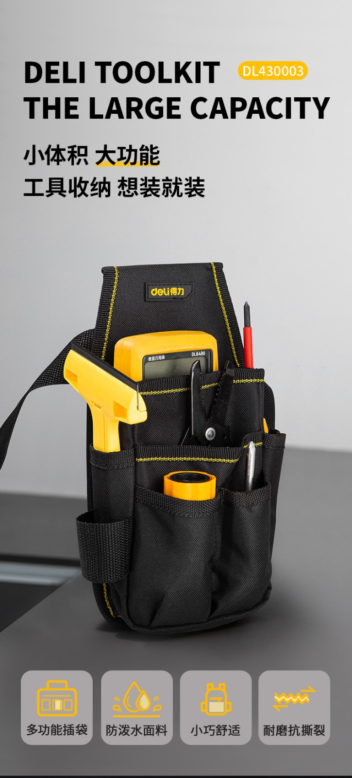 Deli Oxford cloth tool bag multifunctional electrician bag storage bag shoulder handbag large space tool bag tool bag tool small waist bag DL430003