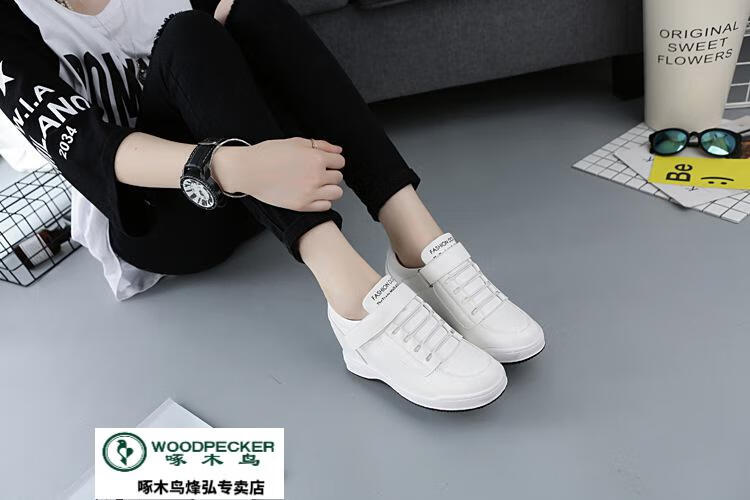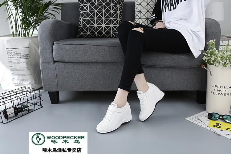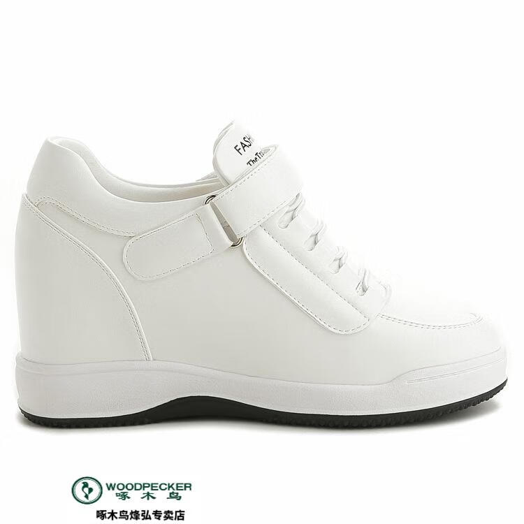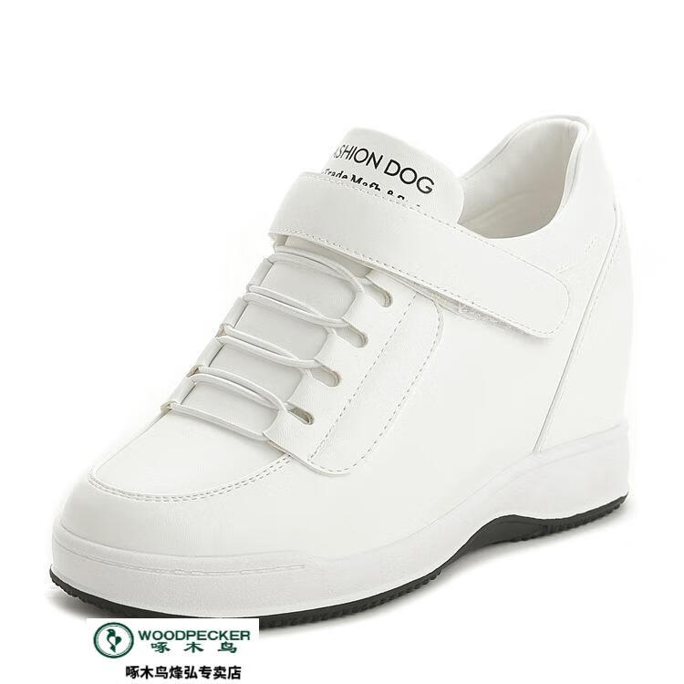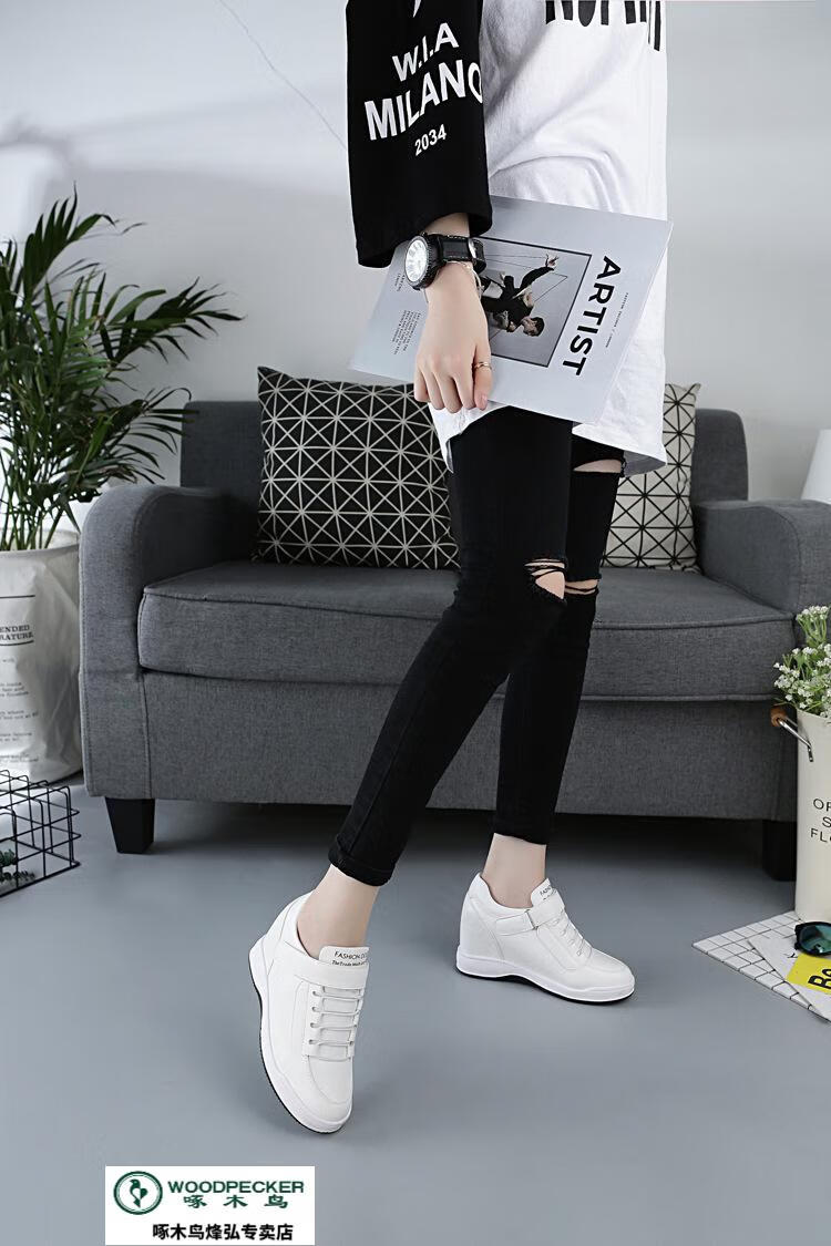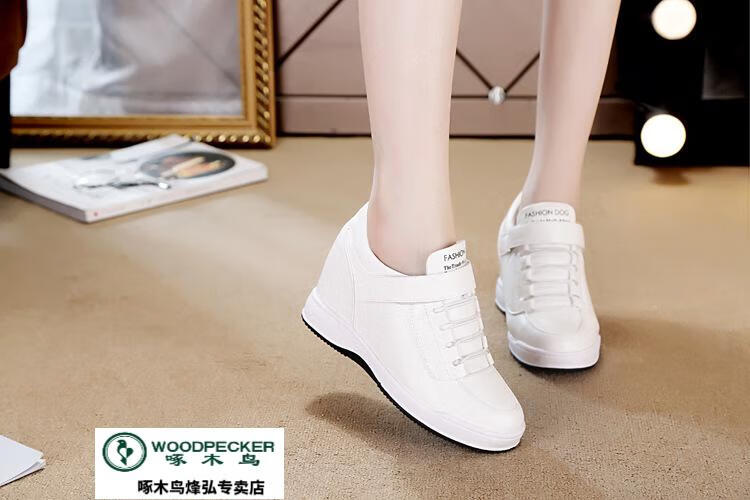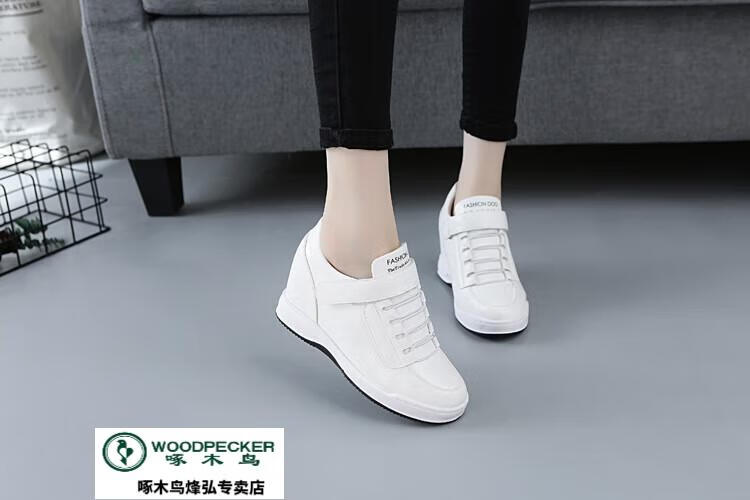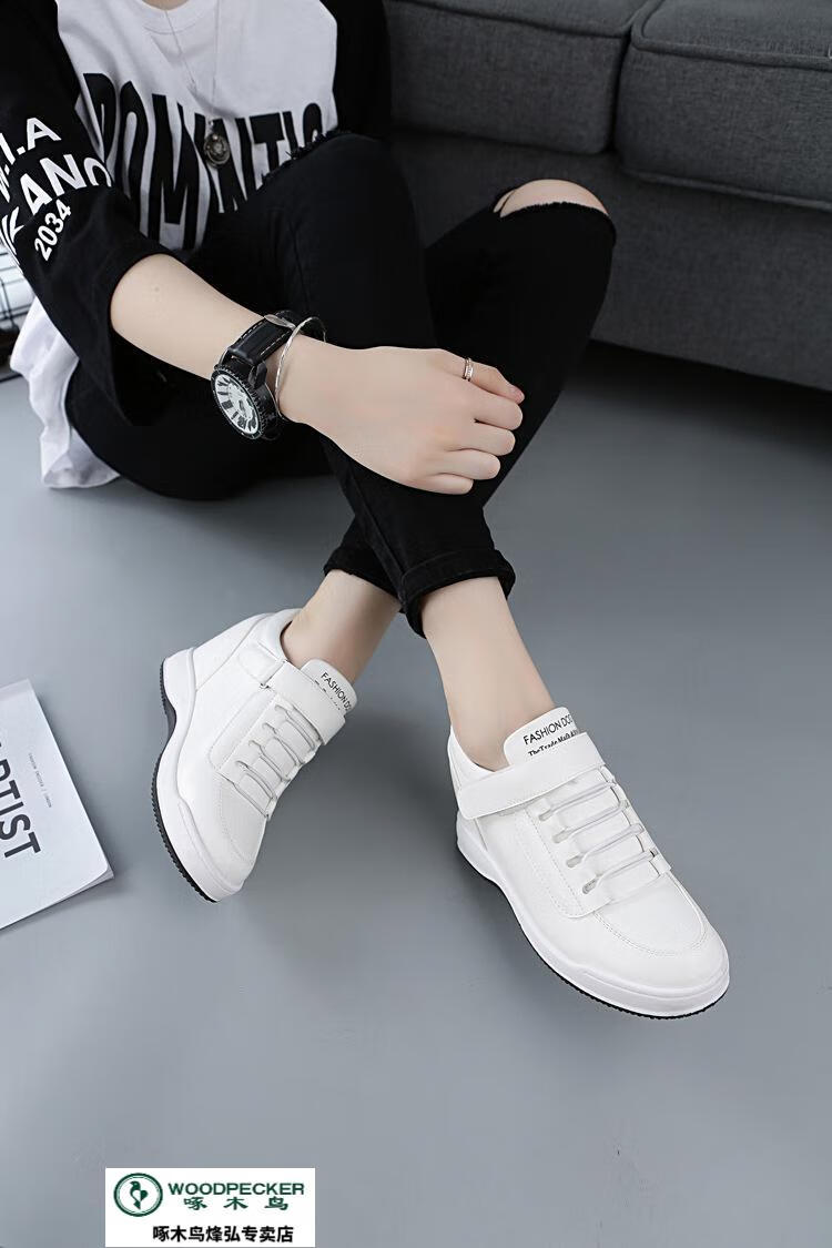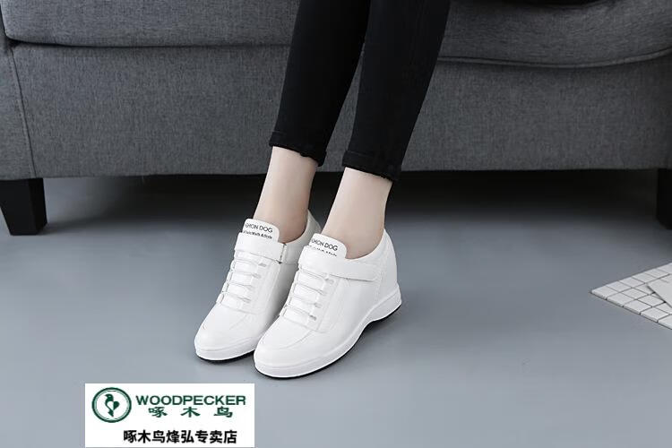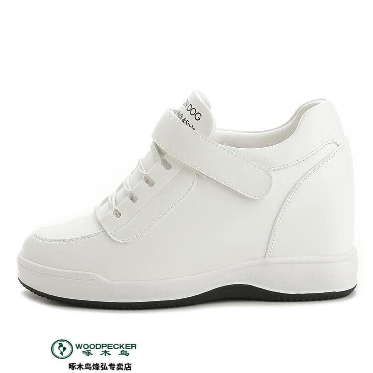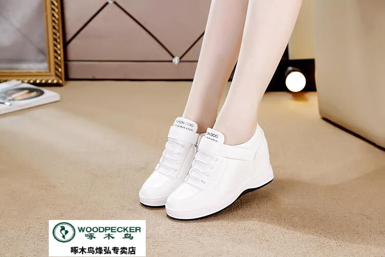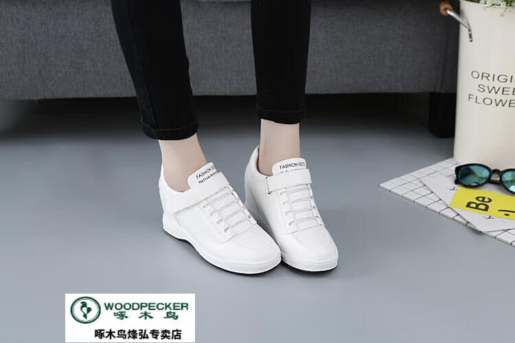 Woodpecker casual spring new simple white women's inner height increasing women's shoes new autumn wedge heel summer leisure travel comfortable white single lining 38