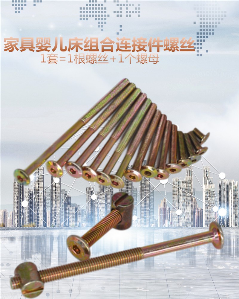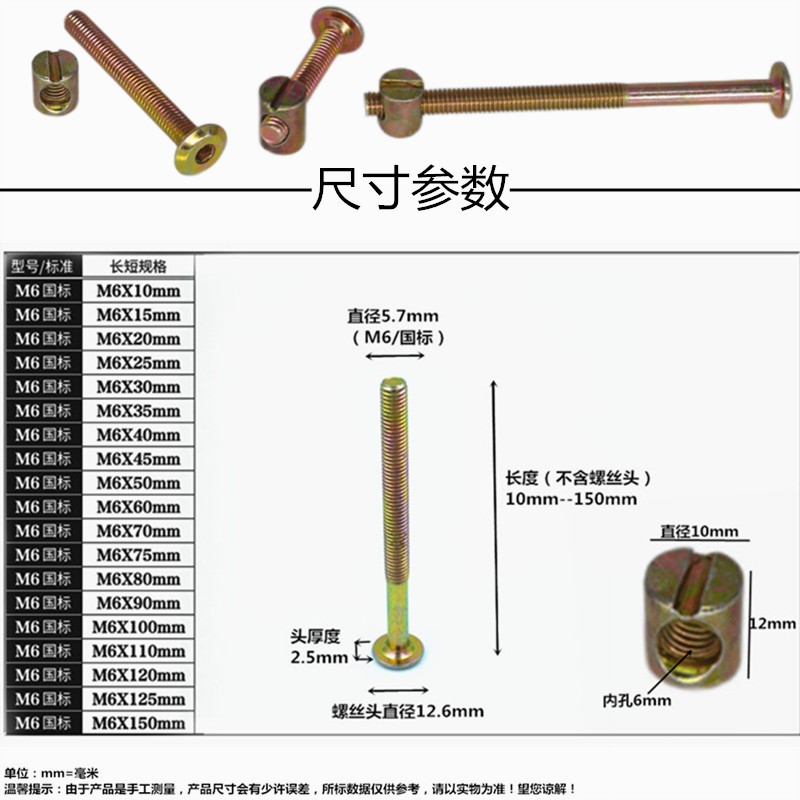 FEI ER GU furniture hardware screws baby crib connection accessories cross hole nut bookcase oblique flat head hammer head nut 6mm Screw SpecificationsM6*Length 100mm/10 sets