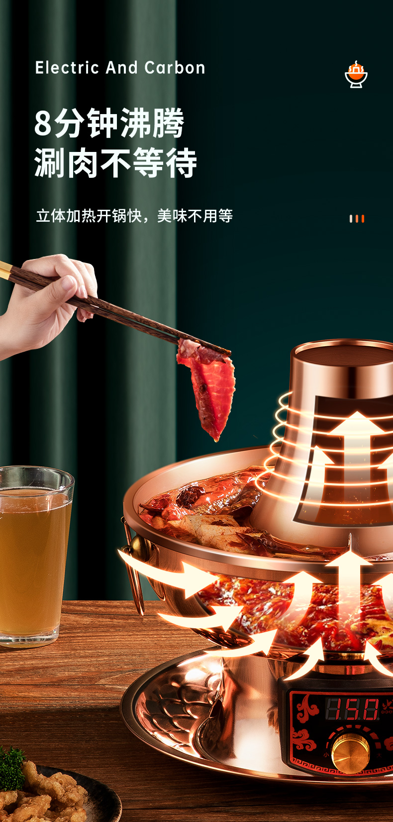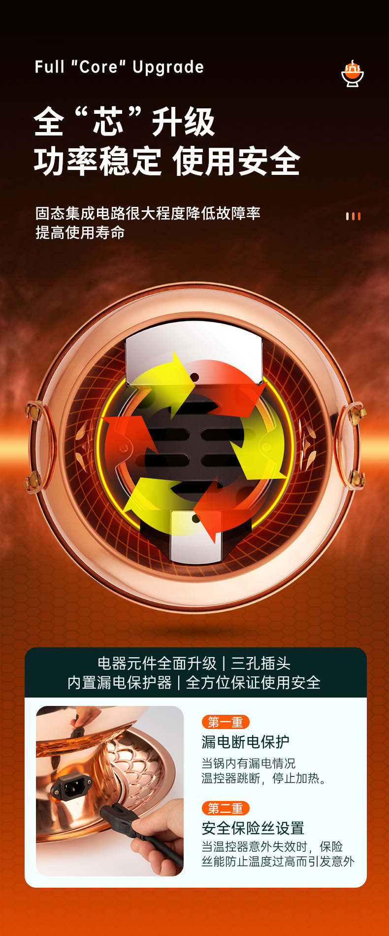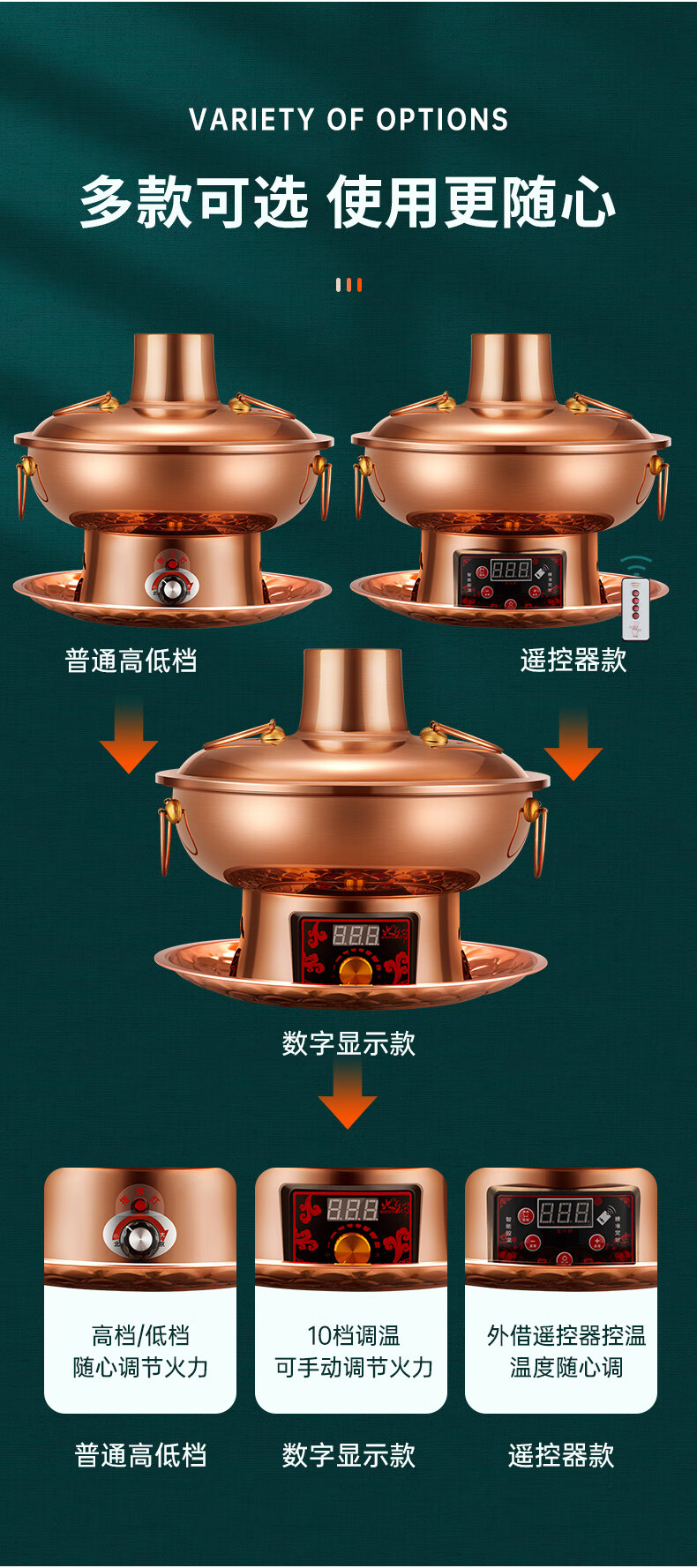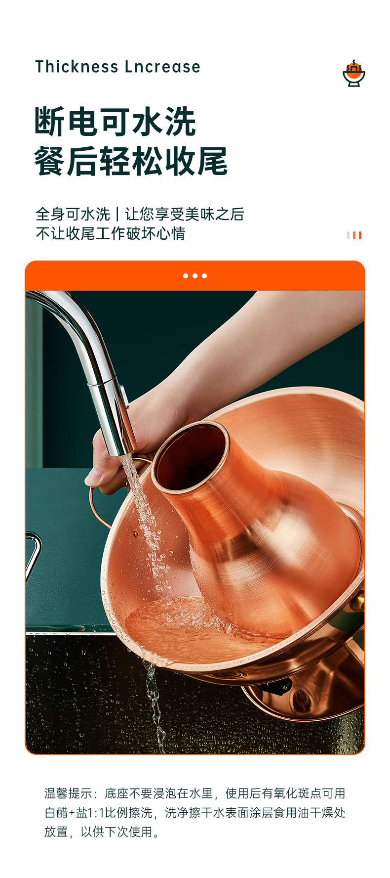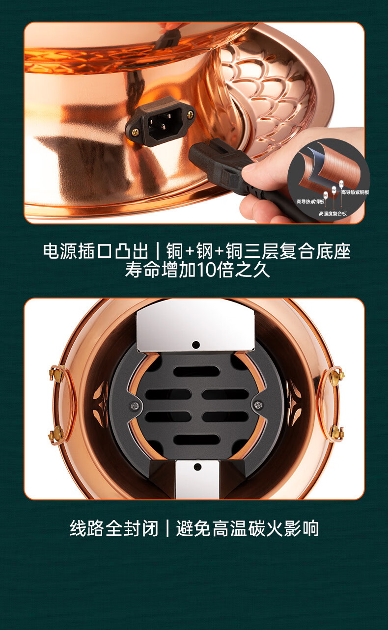 Chuilaoye (CHUILAOYE) copper hot pot, electric and carbon dual-purpose mandarin duck pot, pure copper pot, hot pot pot, charcoal, household plug-in, old Beijing shabu-shabu, Yuanyang 4-6 people, CNC 10 gears, 32cm