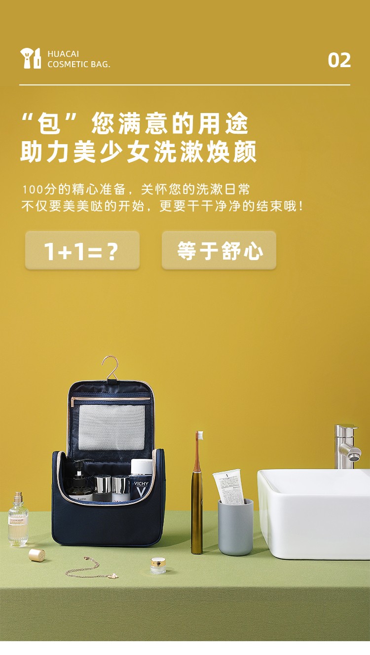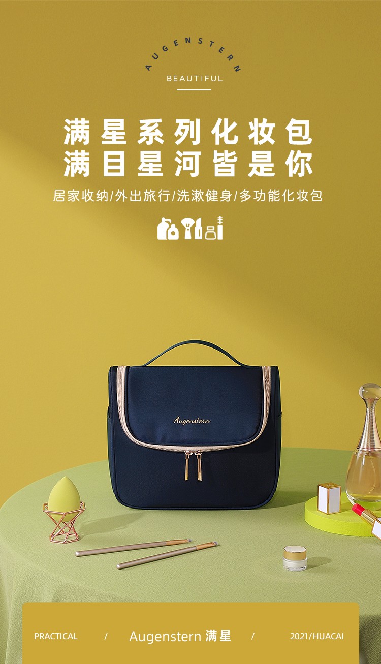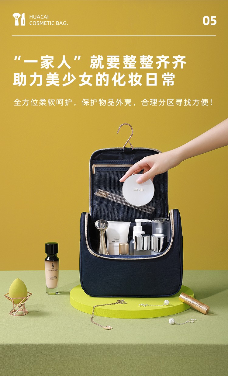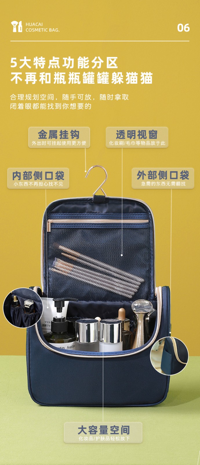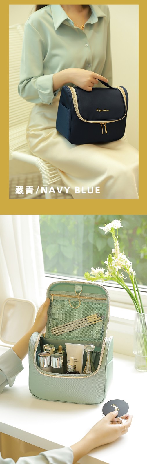 Fuxin Cosmetic Bag Women's Portable Large Capacity Cute Waterproof Travel Toiletries Cosmetic Storage Bag Box Navy