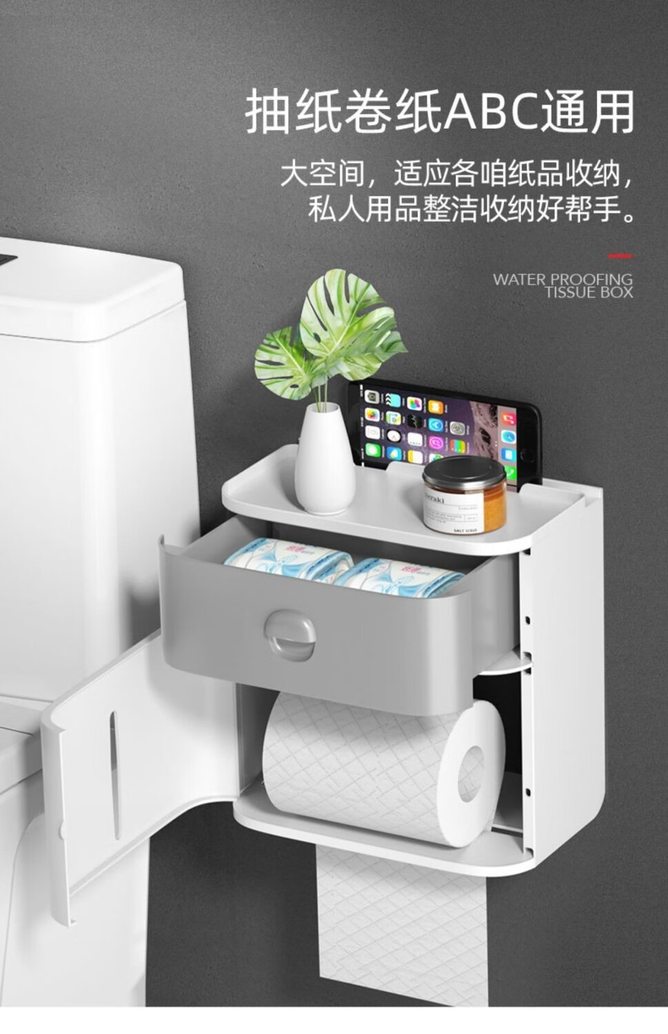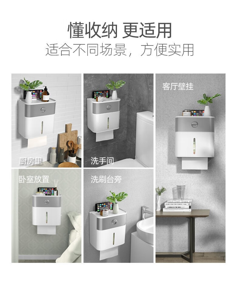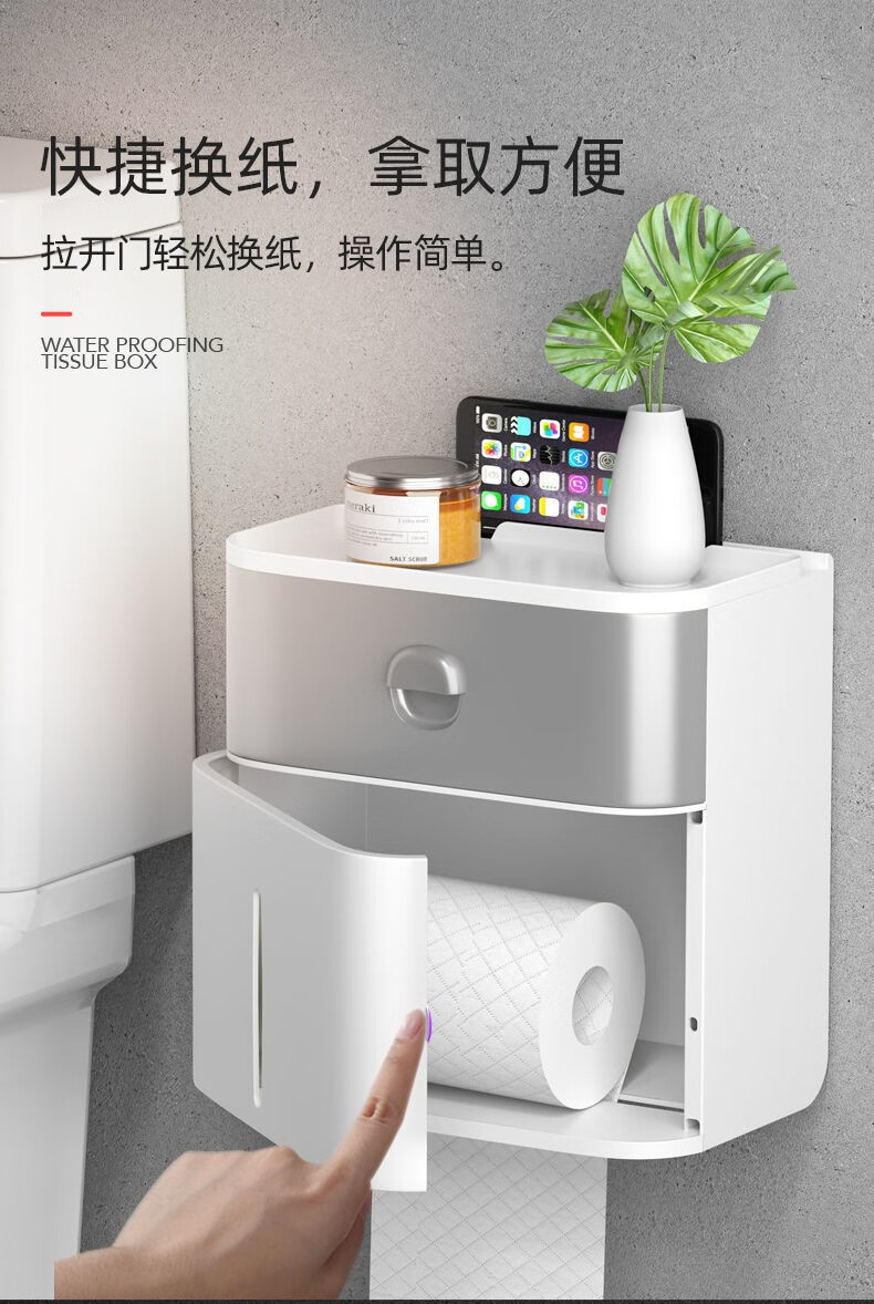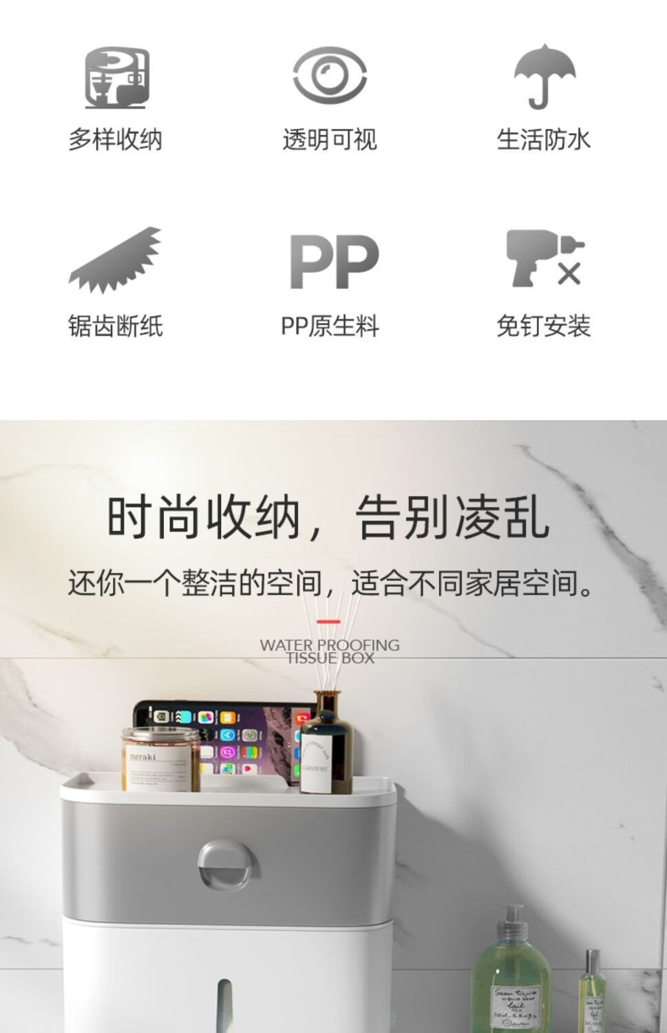 Nuzheng bathroom tissue box toilet paper box toilet paper box wall-mounted punch-free storage rack storage rack waterproof tissue holder upgraded double-layer starry sky gray super large capacity