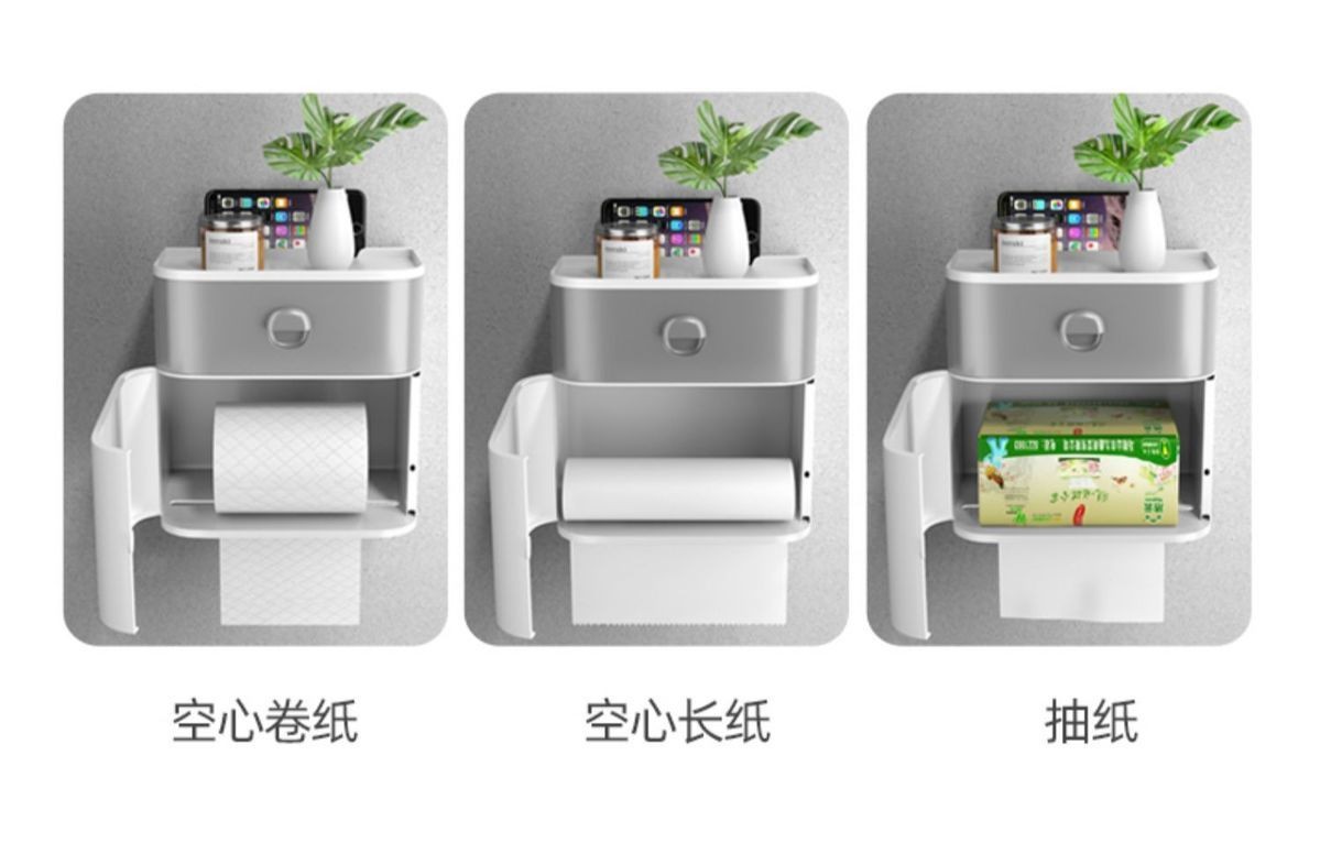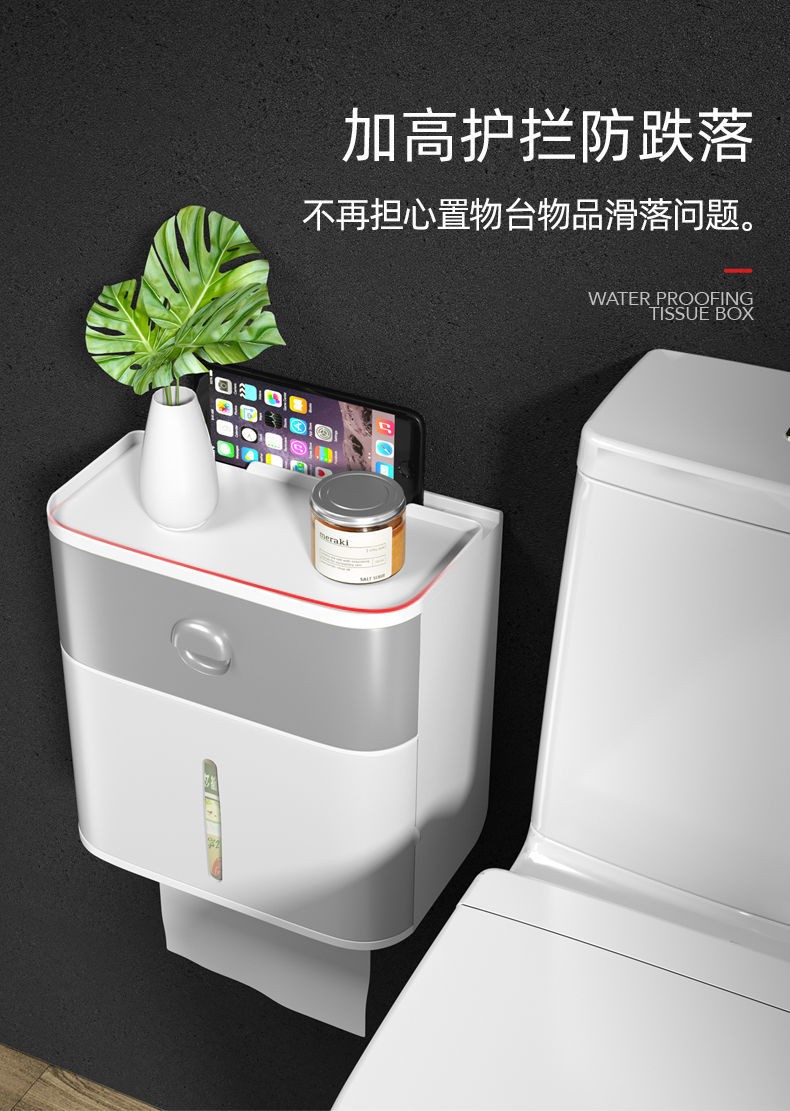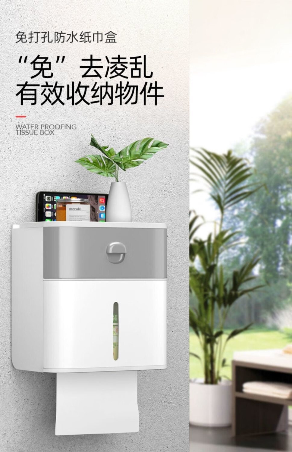 Nuzheng bathroom tissue box toilet paper box toilet paper box wall-mounted punch-free storage rack storage rack waterproof tissue holder upgraded double-layer starry sky gray super large capacity