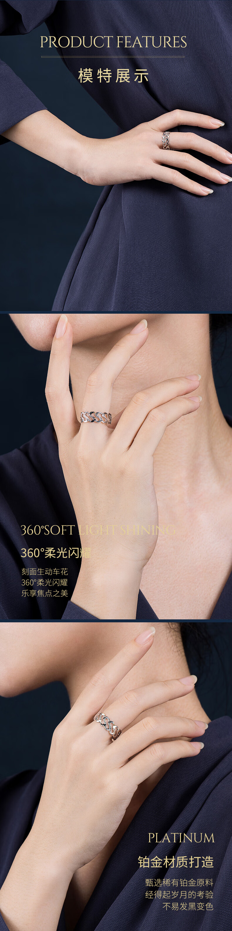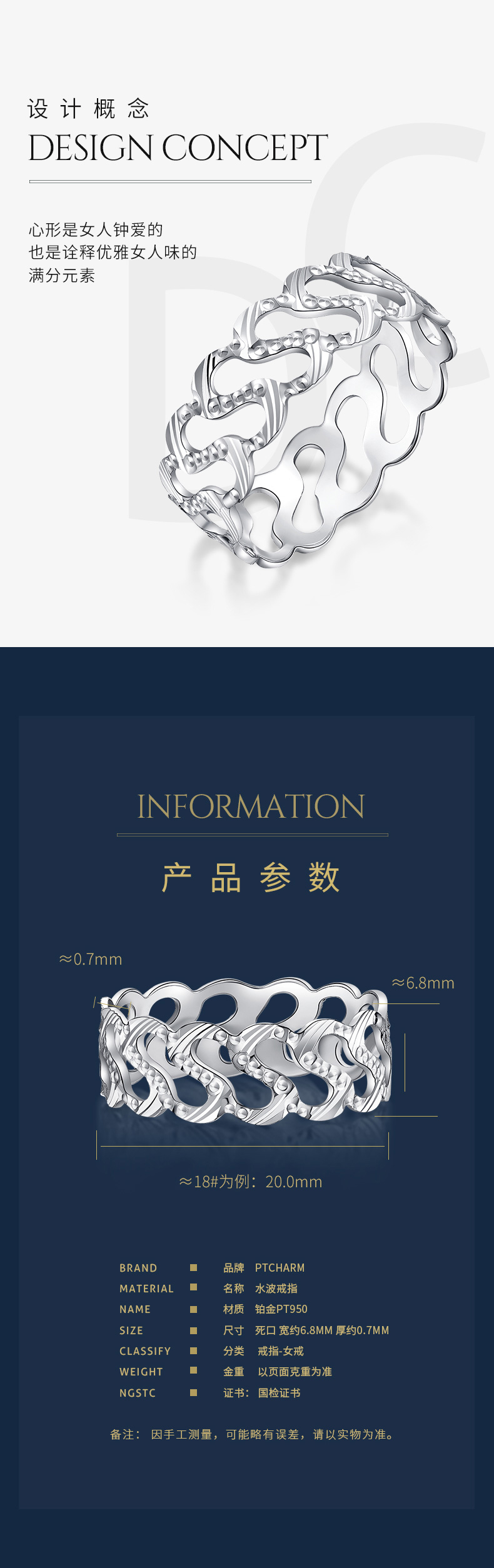 Pt.Charm new platinum ring women's water ripple platinum ring personalized fashion wedding proposal ring spot No. 21 2.8-2.9 grams single