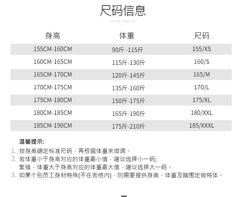 China (cm) 165 / 88-90 170 / 96-98 175 / 108-110 180 / 118-122 185 / 126-130