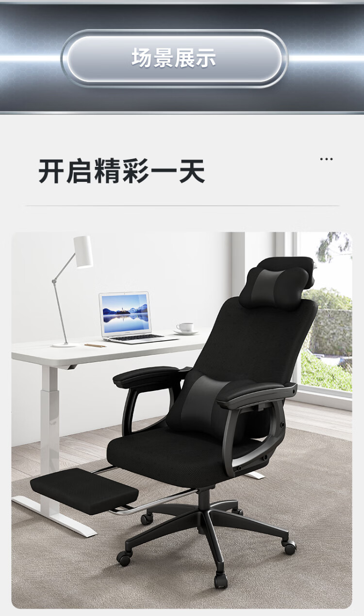 Yipinhui office lunch break dual-use chair ergonomic chair e-sports computer chair boss chair home dormitory comfortable sedentary chair 135 degrees reclining - black