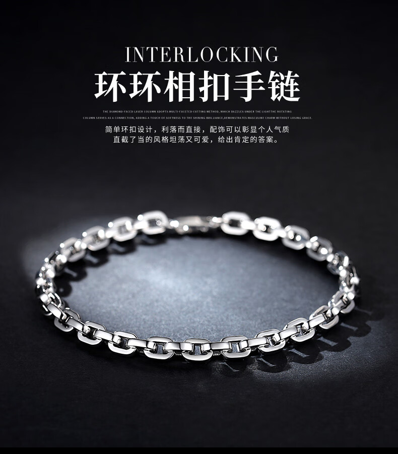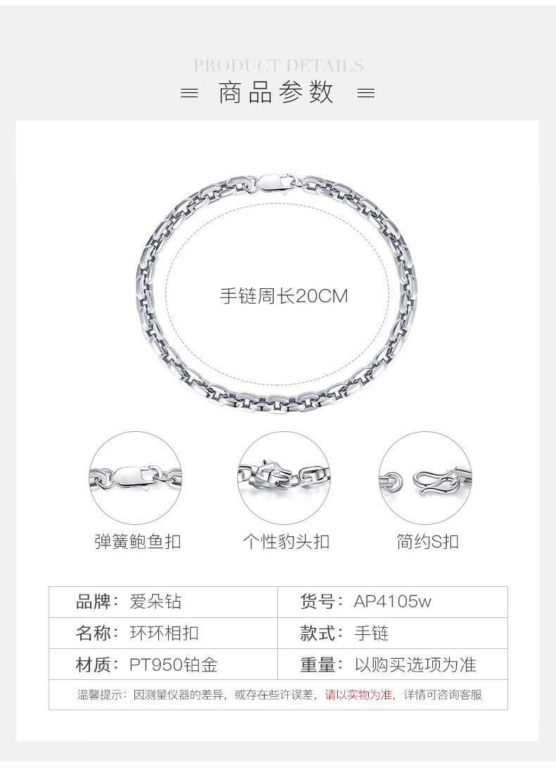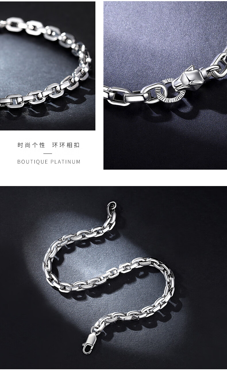 Aido Diamond Platinum Bracelet Men's pt950 Platinum Cross Card Ground Chain Attractive and Versatile Hand Accessories for Women Length Selection Suggestions Thickness 4-6mm = Clean Hand Circumference + 1.5cm