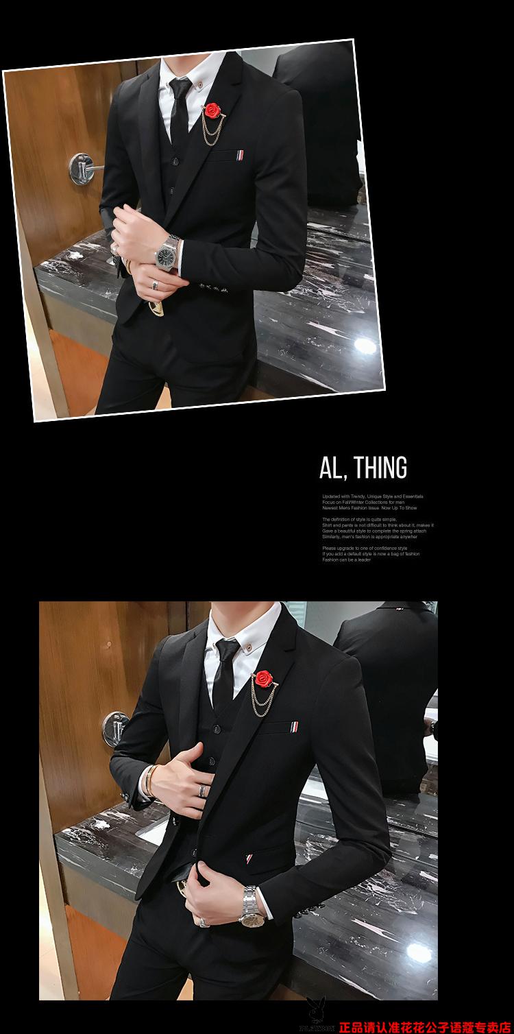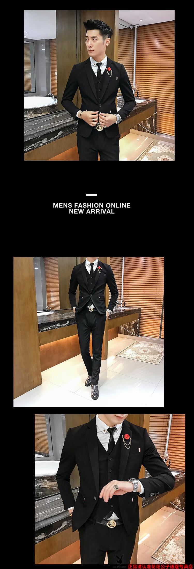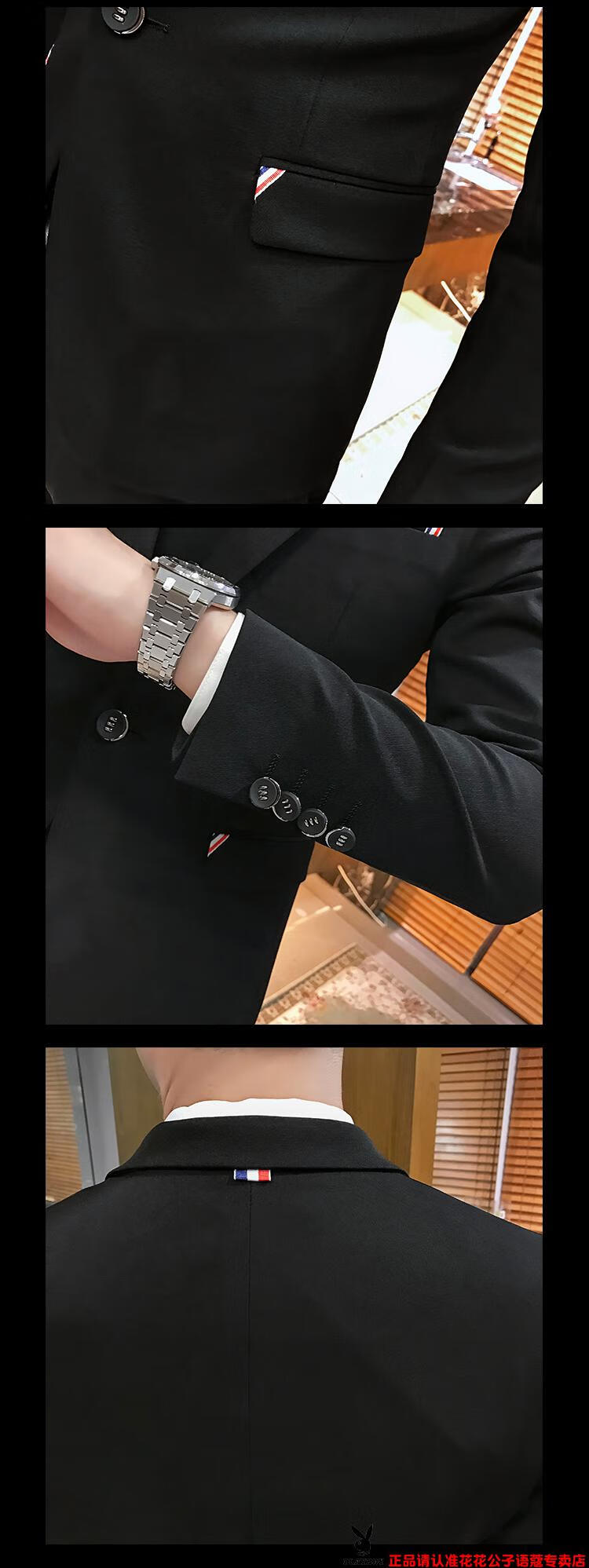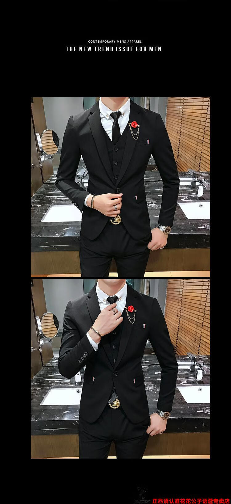 Pierre Cardin Men's Suit Suit Men's Slim Handsome Casual Small Suit Three-piece Trendy Korean Style Black Two-piece Suit (Suit + Pants) M