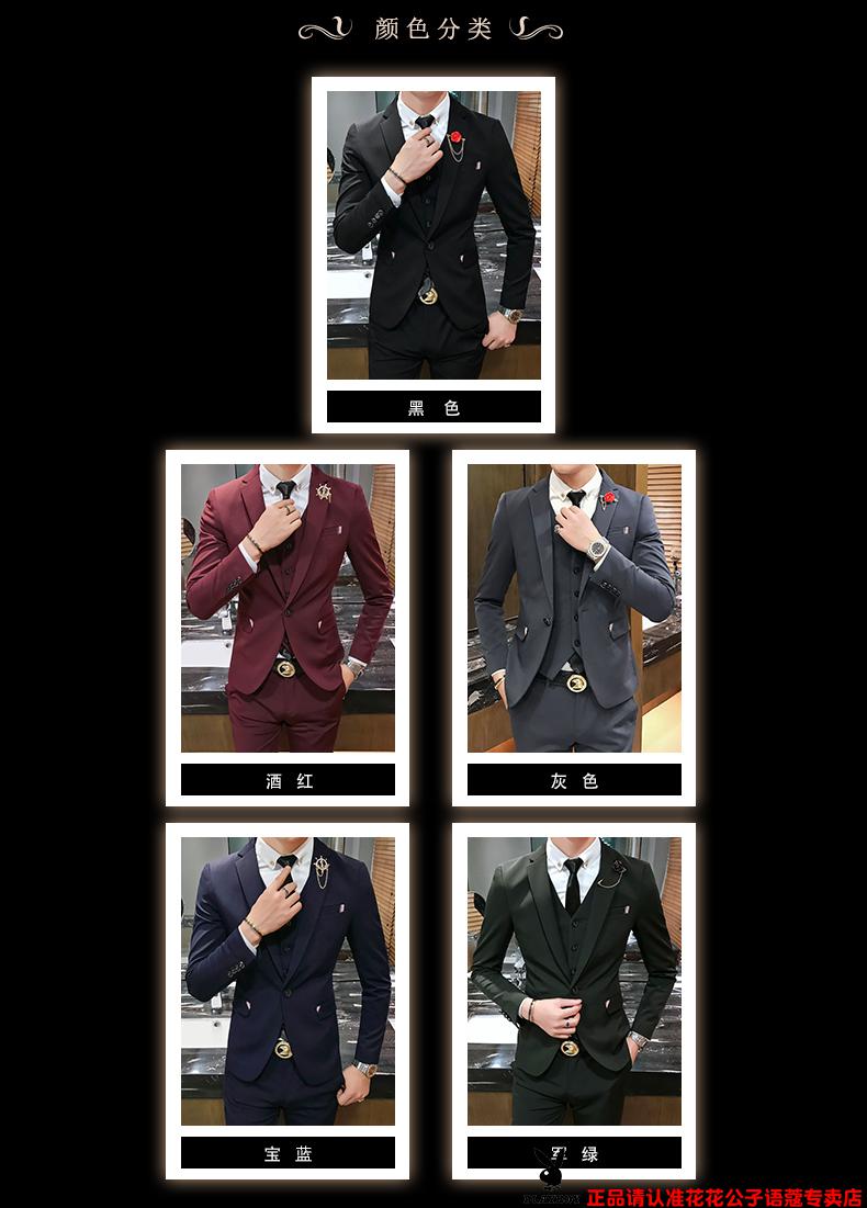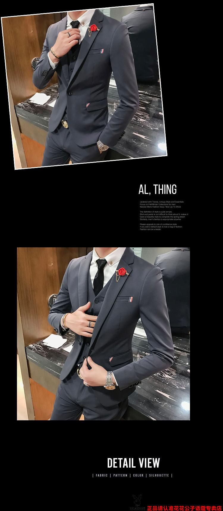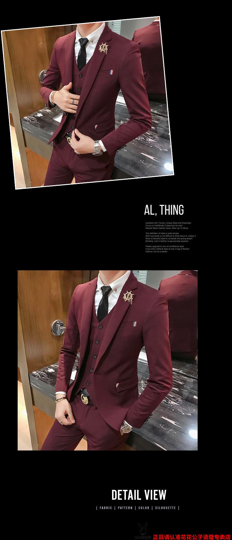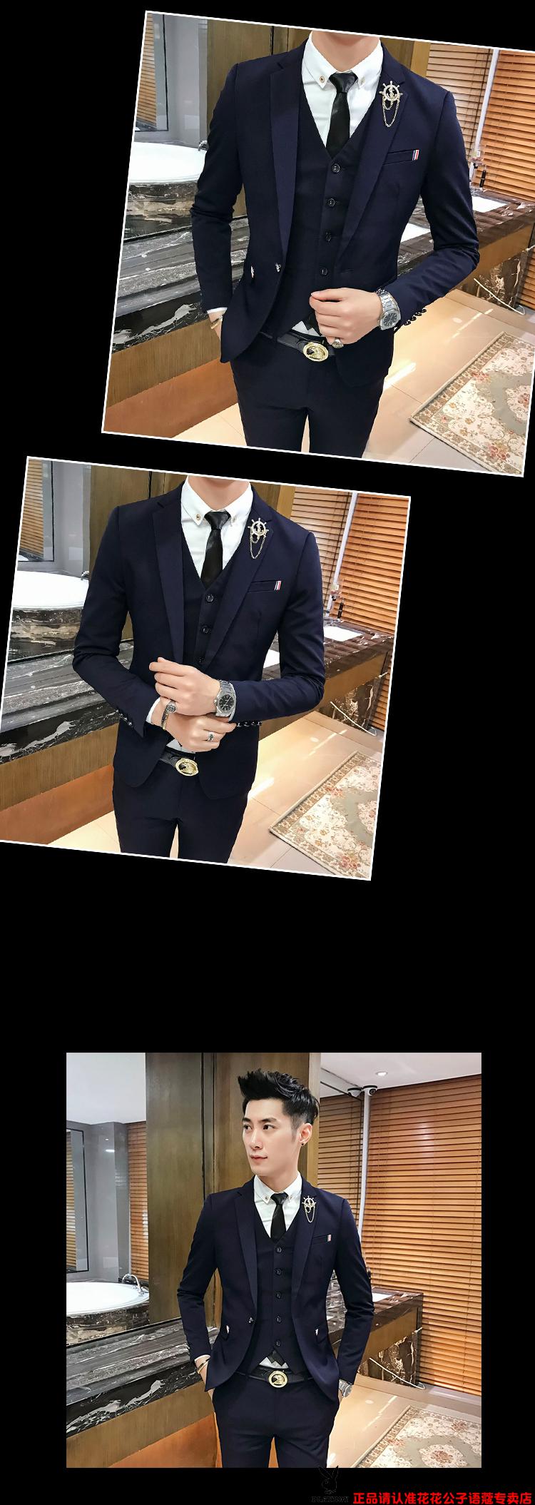 Pierre Cardin Men's Suit Suit Men's Slim Handsome Casual Small Suit Three-piece Trendy Korean Style Black Two-piece Suit (Suit + Pants) M
