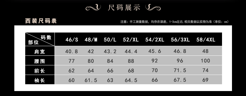 China (cm) 165 / 88-90 170 / 96-98 175 / 108-110 180 / 118-122 185 / 126-130
