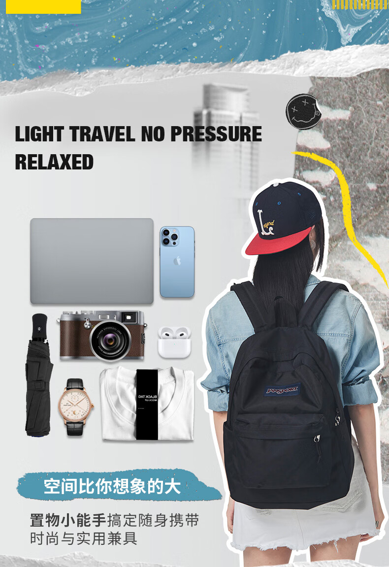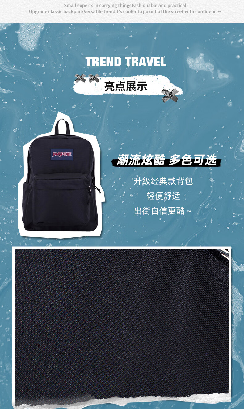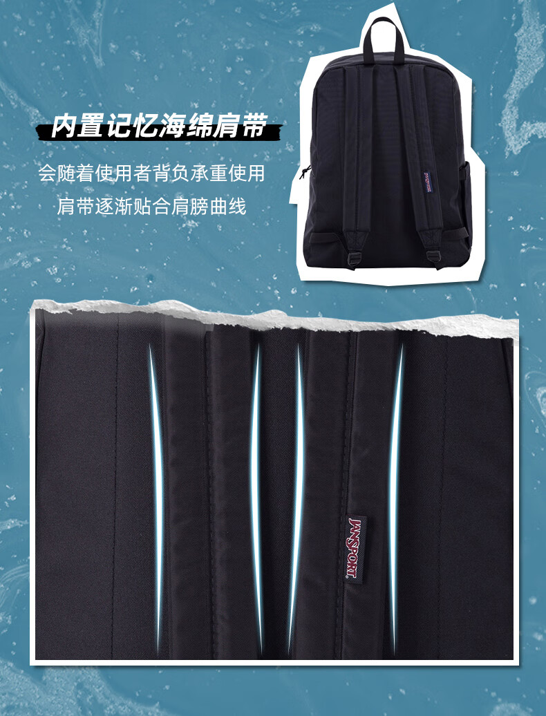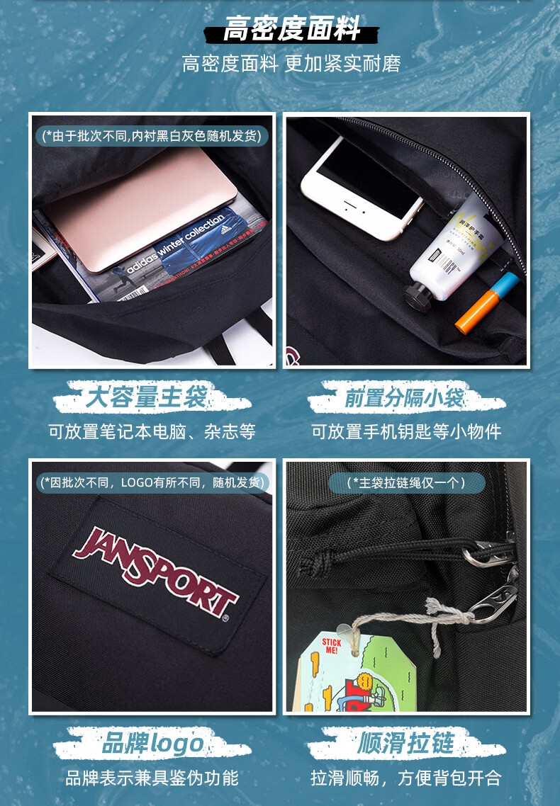 JANSPORT Jasper School Bag Lightweight Backpack Men's and Women's Travel Bag Simple Backpack Computer Bag Student Campus 4QUE008 Jazz Black-Side Bag + Compartment
