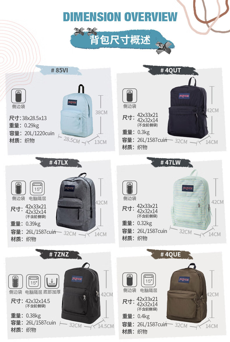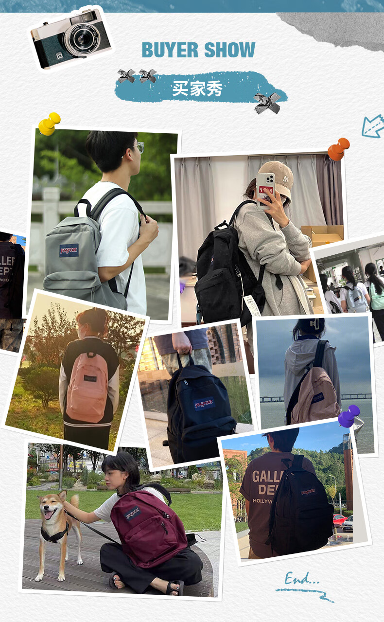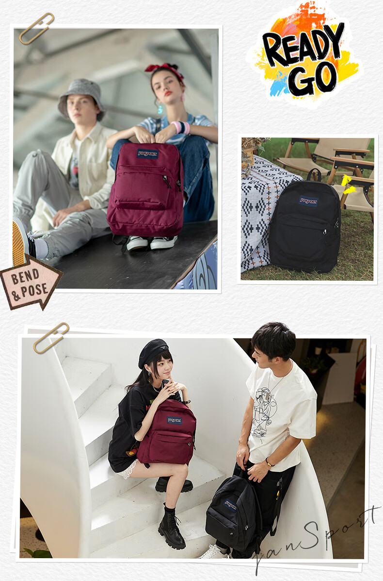 JANSPORT Jasper School Bag Lightweight Backpack Men's and Women's Travel Bag Simple Backpack Computer Bag Student Campus 4QUE008 Jazz Black-Side Bag + Compartment