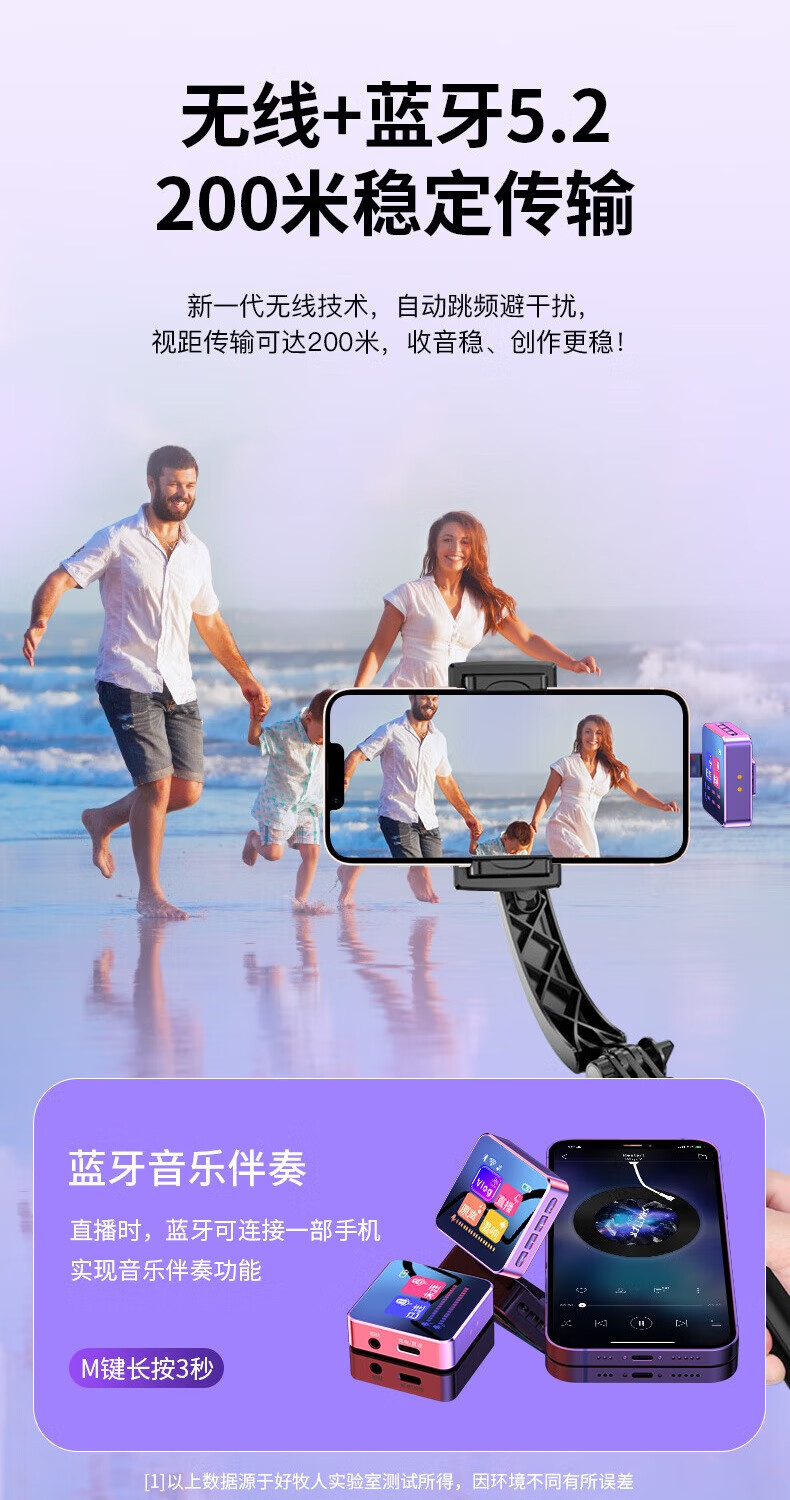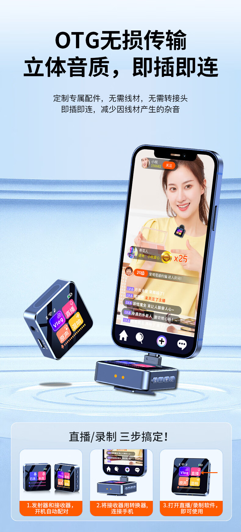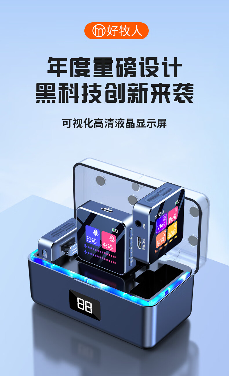 Good Shepherd Wireless Microphone Lavalier Recording Equipment Little Bee Radio Microphone One to Four Outdoor Interview Short Video Shooting Mobile Live Broadcast Noise Reduction Bluetooth Microphone Built-in Sound Card Single Version One to One Wireless Lavalier Microphone (Universal for Apple/Android)