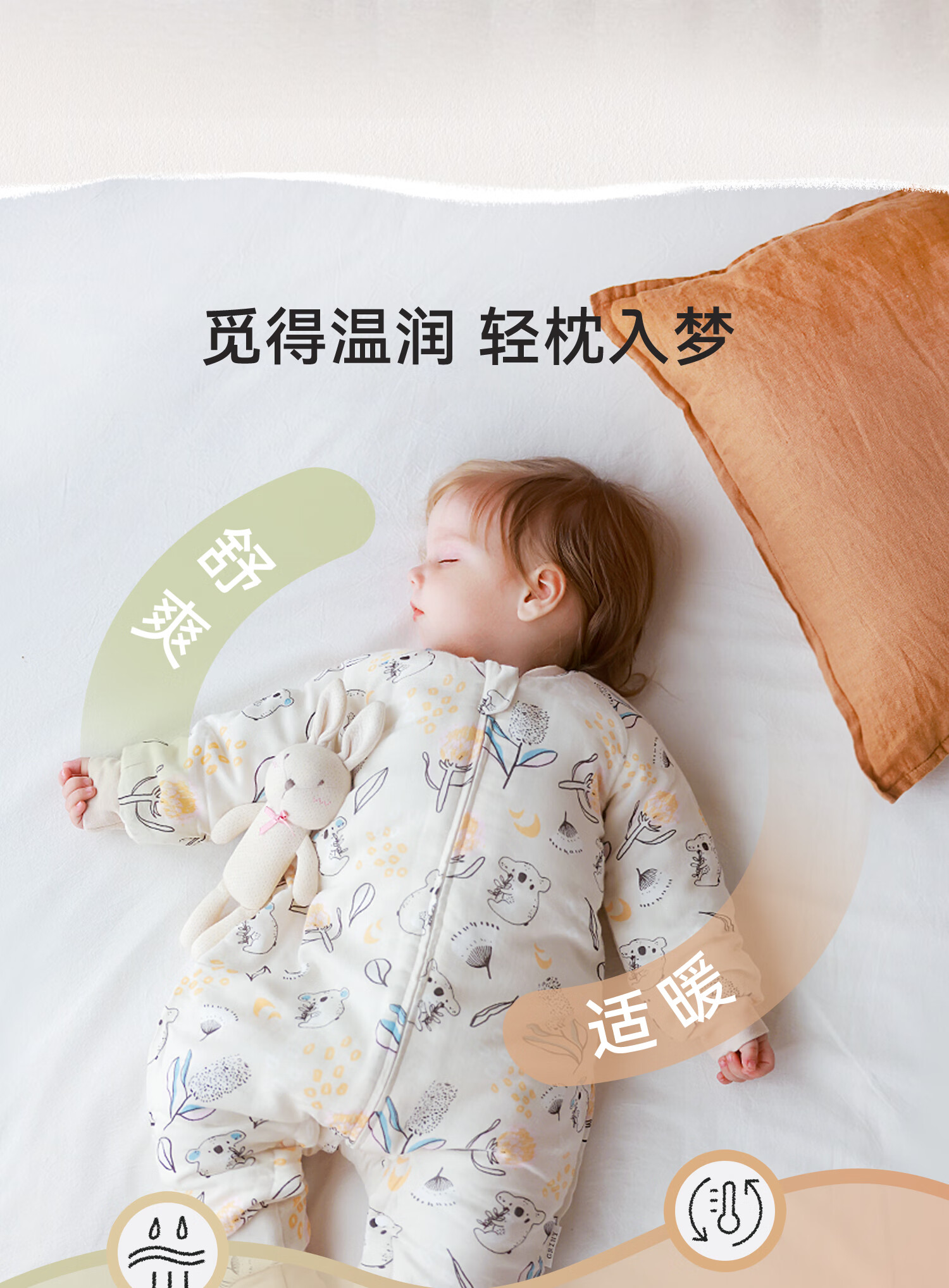 Griny baby sleeping bag autumn and winter baby gauze children's split-legged mulberry silk spring and autumn quilted warm anti-kicking quilt Koala light core thin quilted 80 (S size, recommended height below 85cm)