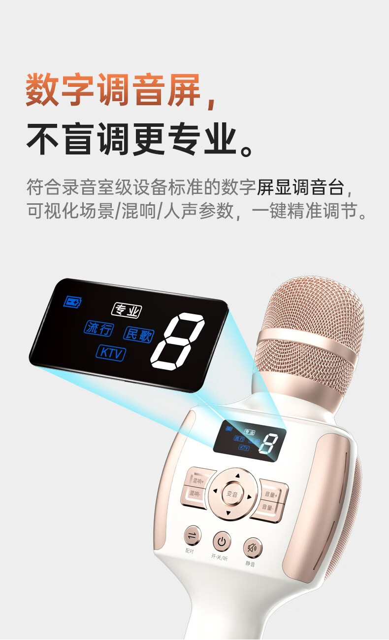 Meiniao karaoke microphone A2 microphone and audio integrated sound card wireless microphone national karaoke TV mobile phone singing live recording outdoor party karaoke A2 digital screen audio microphone pearl white karaoke/recording/live broadcast