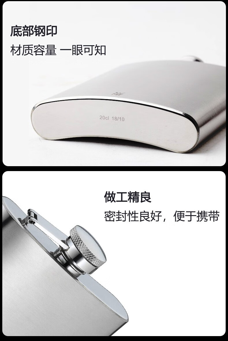WMF Futengbao stainless steel wine bottle, small wine bottle, portable liquor bottle, outdoor portable mini special wine set, wine bottle, stainless steel wine bottle 200ml