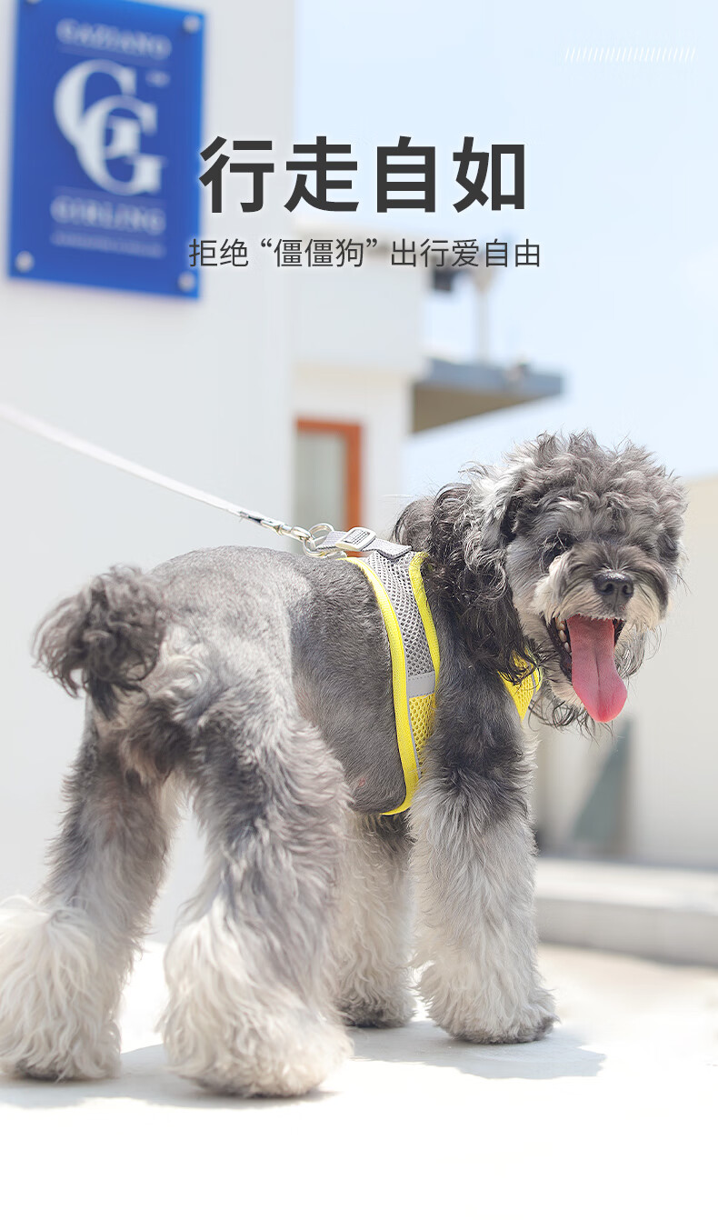 KimPets dog leash, dog leash, small dog vest-type harness, puppy walking chain, puppy pet supplies, lemon yellow - high reflective breathable harness L-recommended 16-22Jin Jin equal to 0.5kg adjustable harness 48-58cm