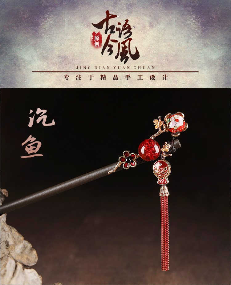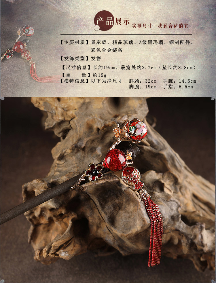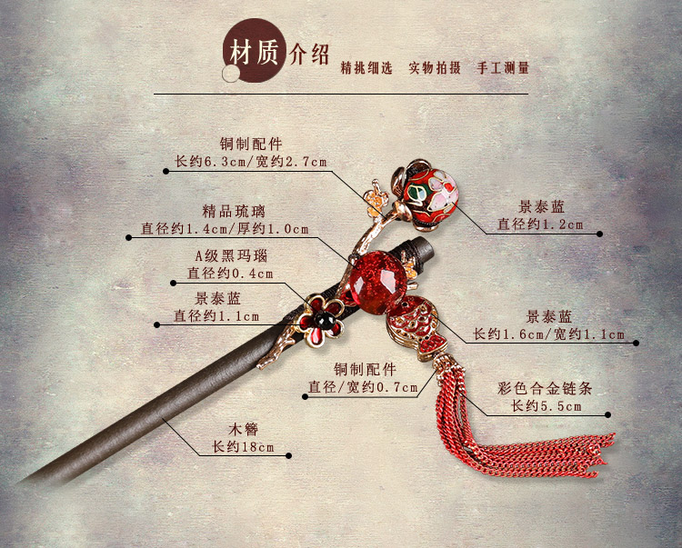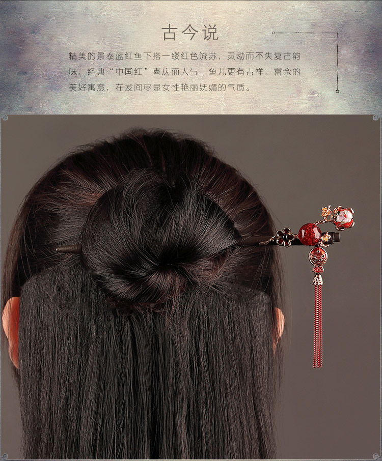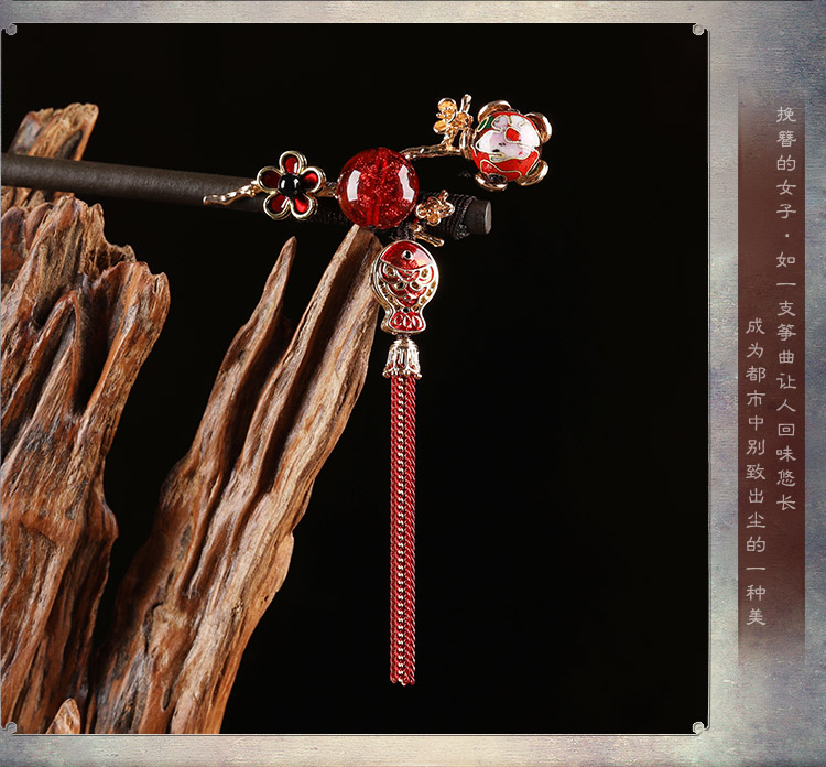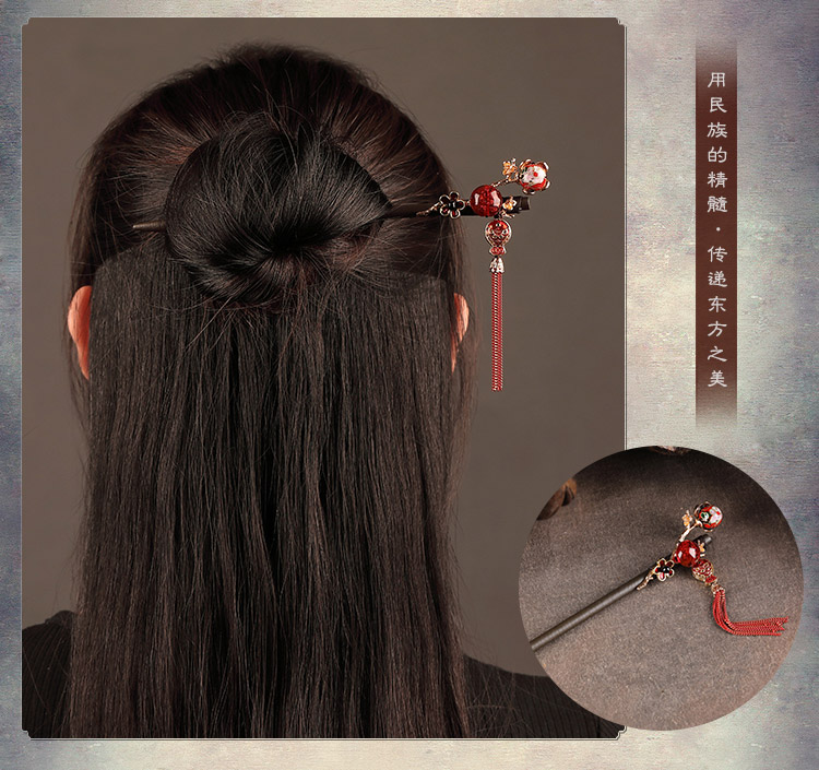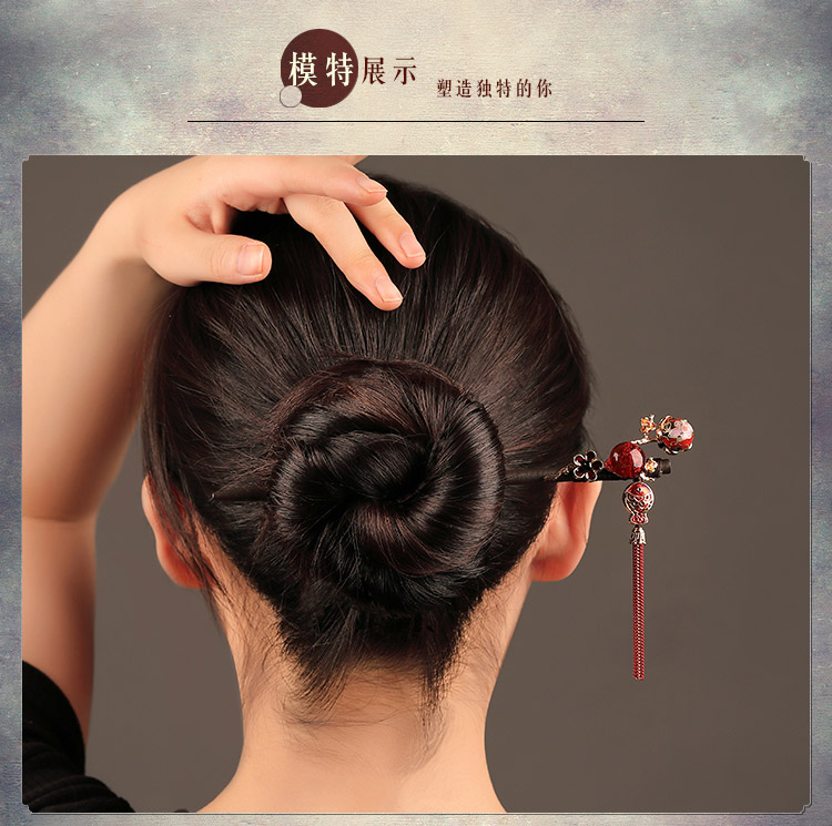 Ancient sayings and modern style, ancient style red hairpin hair accessories, Hanfu headdress, step shake tassels, hairpins, retro hairpins, simple cheongsam, wooden hairpins, hairpins, default packaging