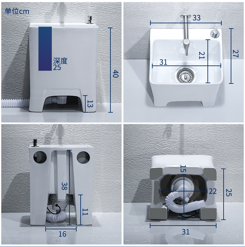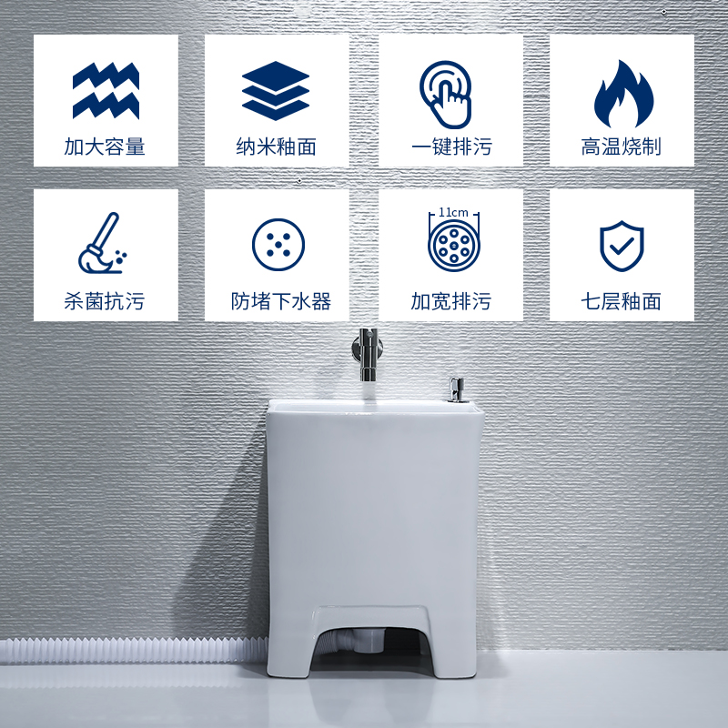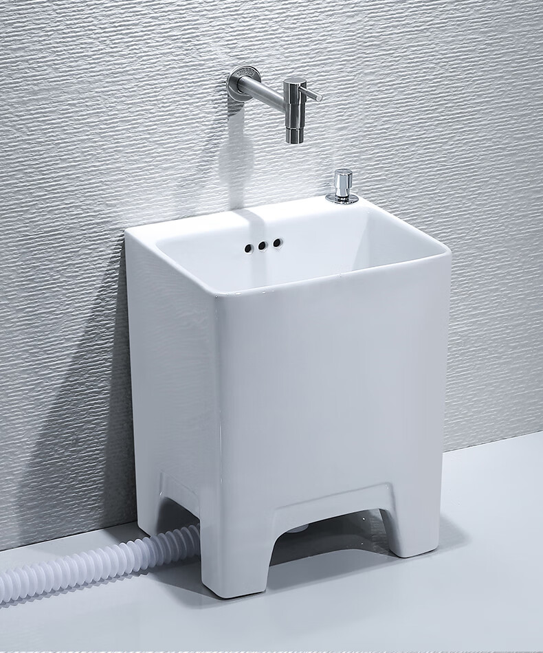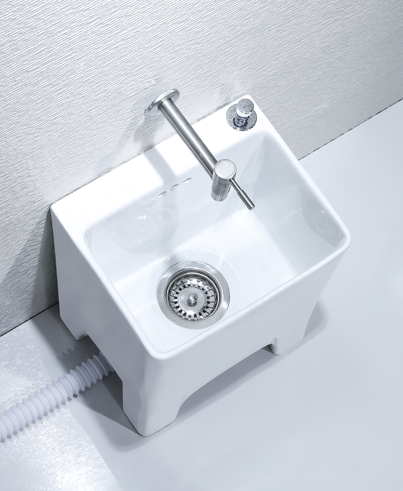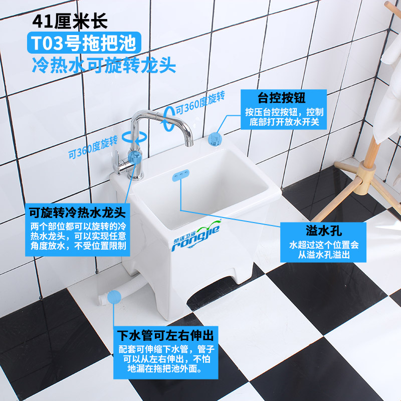 Rongjie super small home bathroom narrow mop pool desk control does not dirty hands household automatic drain mini balcony mop pool T05 (42cm) desk control + single cold faucet