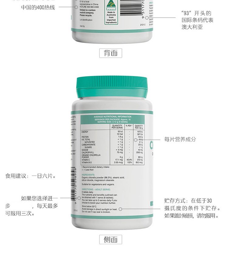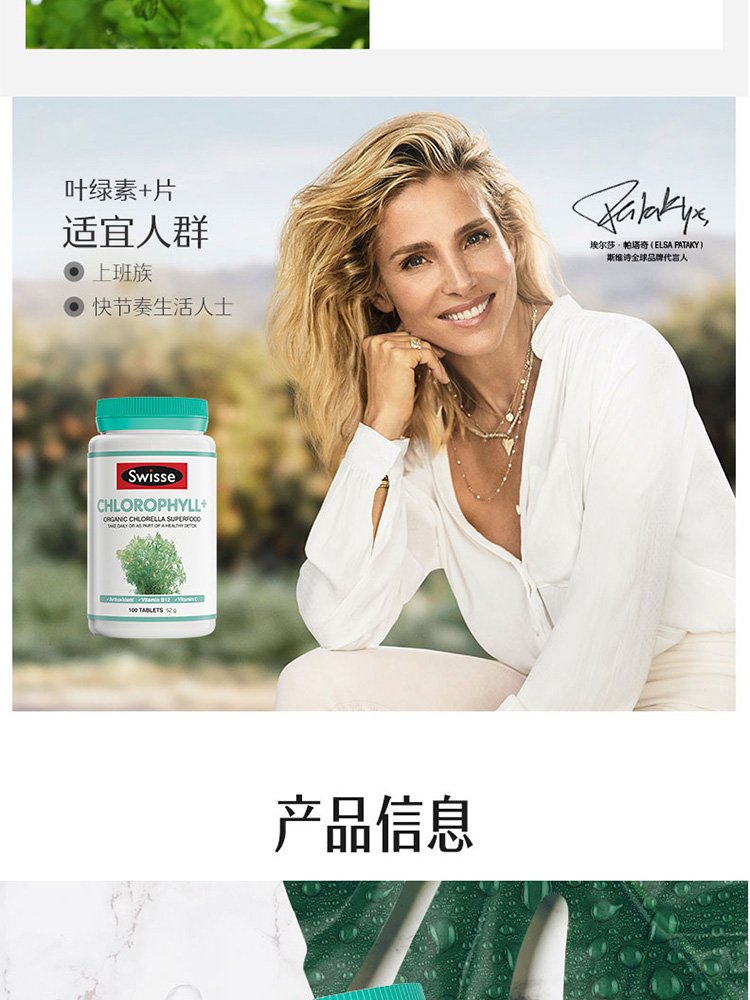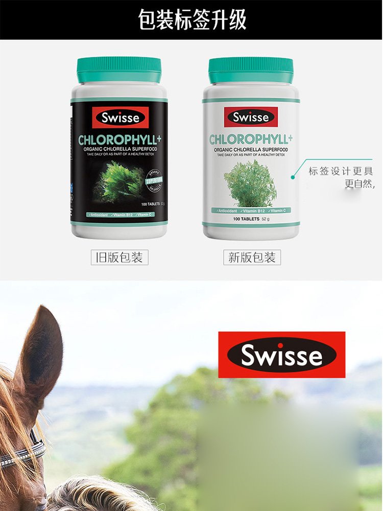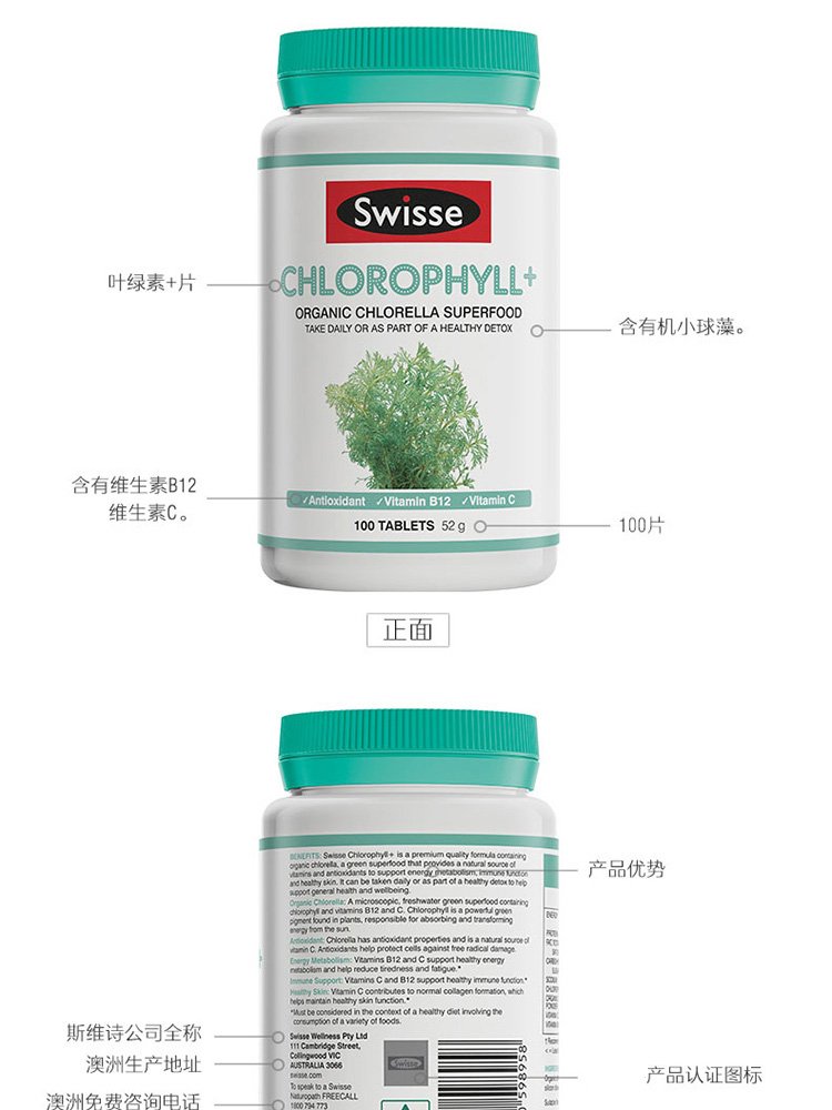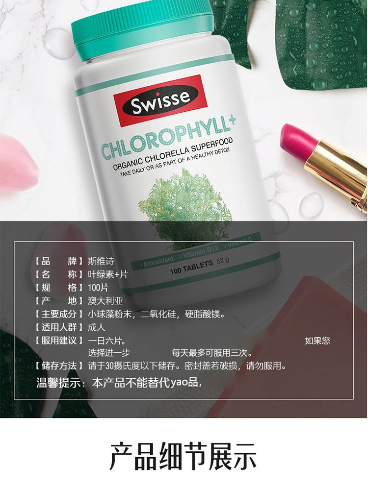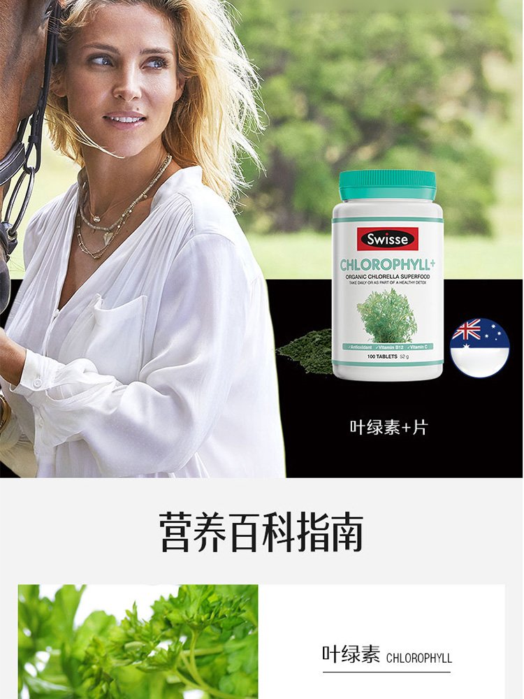 Swisse chlorophyll tablets Chlorophyll for adults, middle-aged and elderly, to cleanse the body, nourish the body, nourish constipation, promote metabolism, imported from Australia, chlorophyll tablets 100 tablets