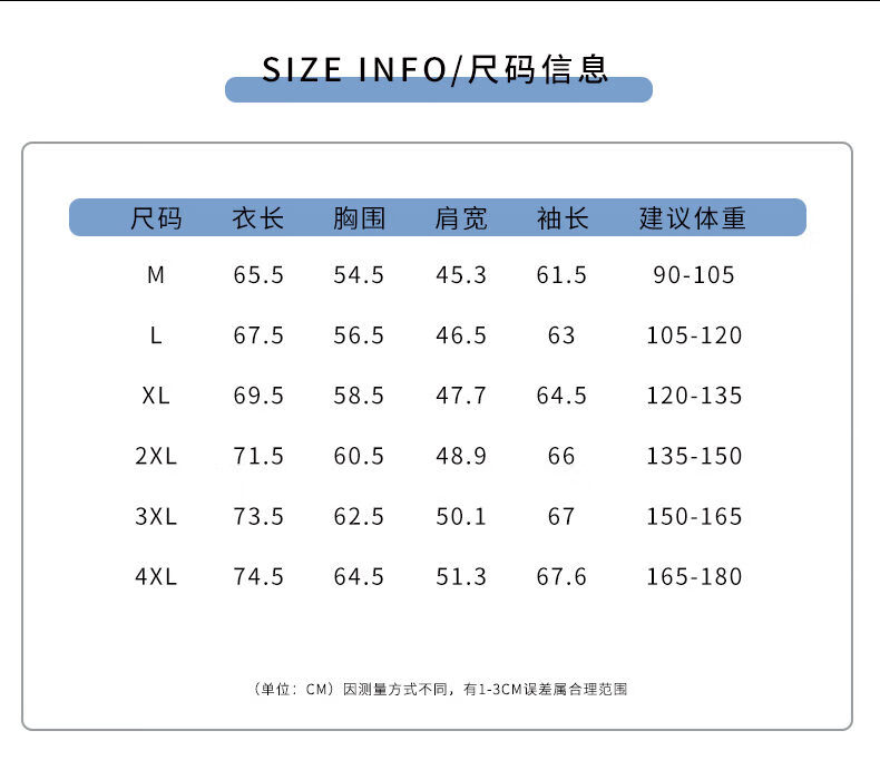 China (cm) 165 / 88-90 170 / 96-98 175 / 108-110 180 / 118-122 185 / 126-130