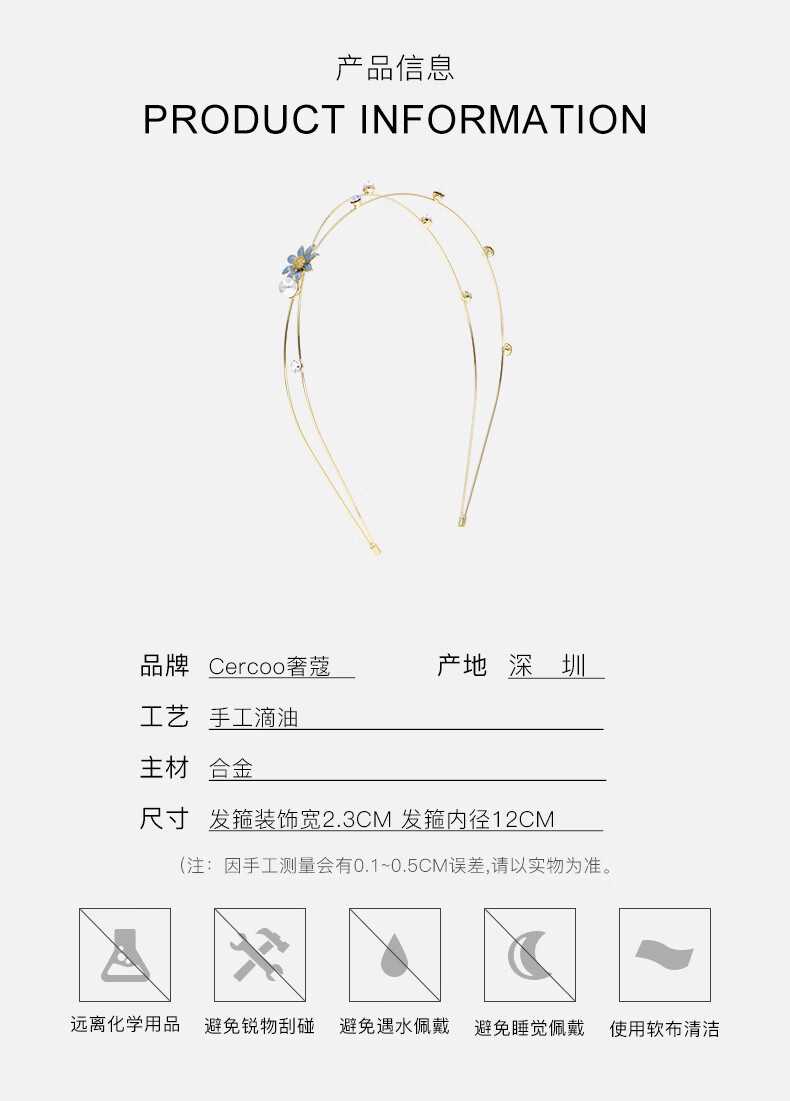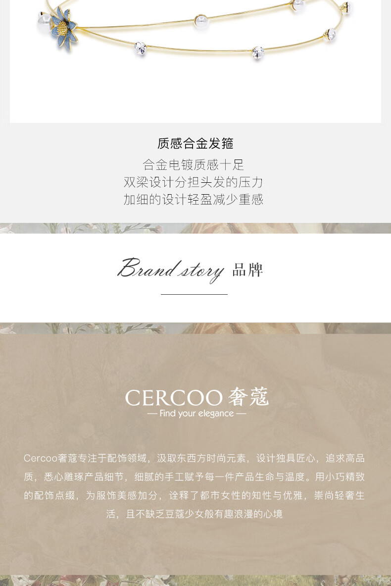 Cercoo Cercoo/Cercoo Daisy Qinghuan Series Headband French Rhinestone Pearl Hairpin Female Temperament Super Fairy Headband Women Blue