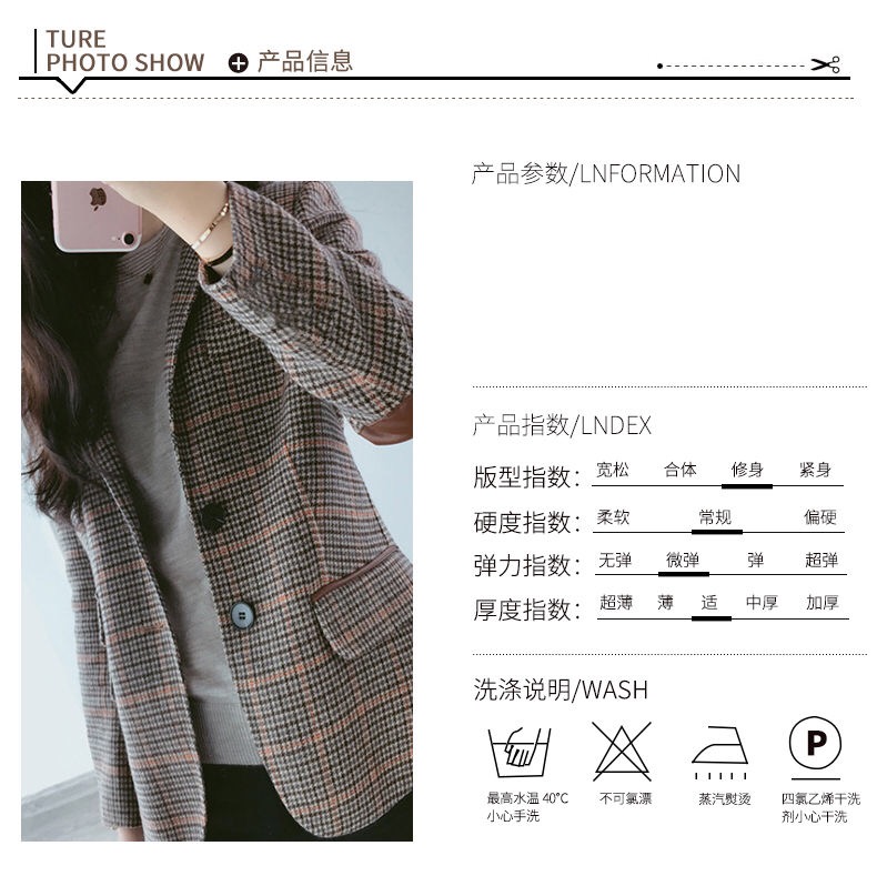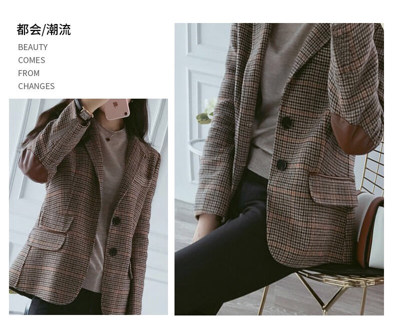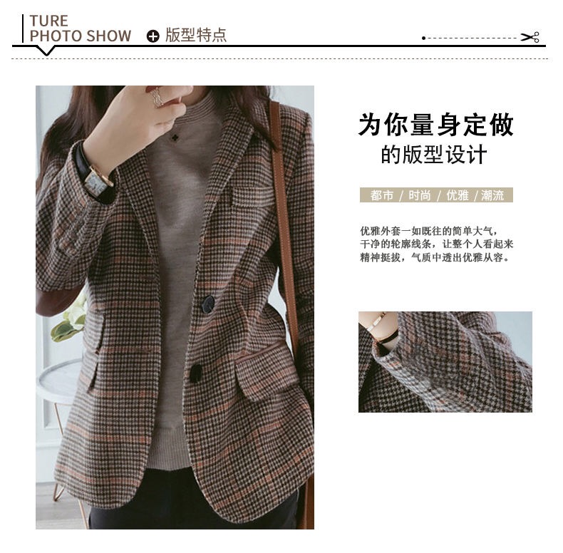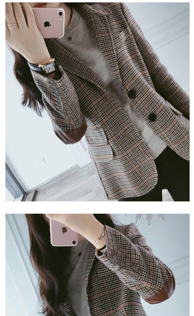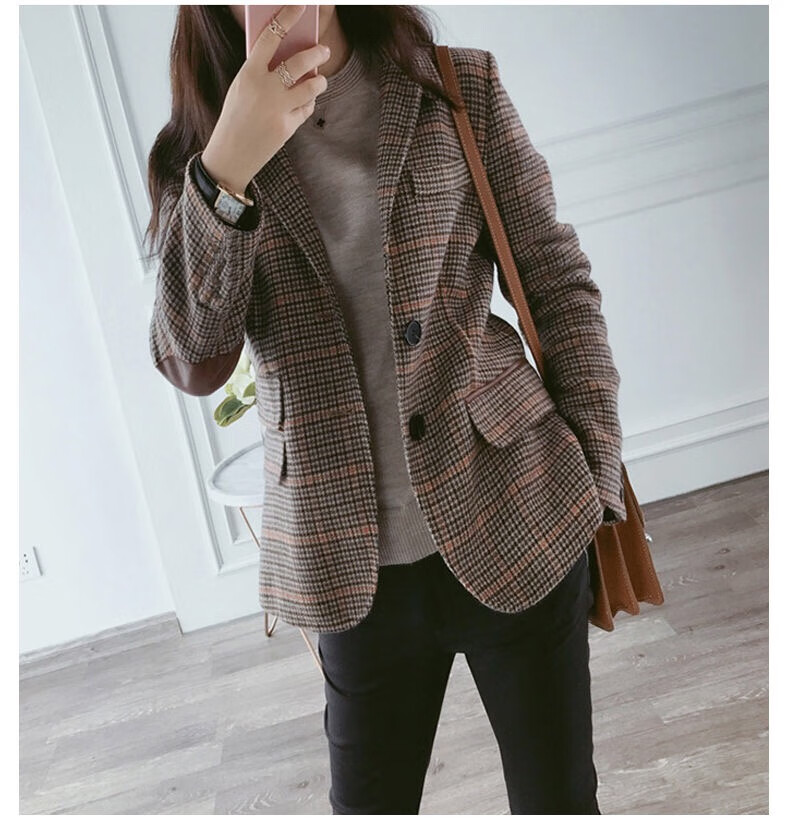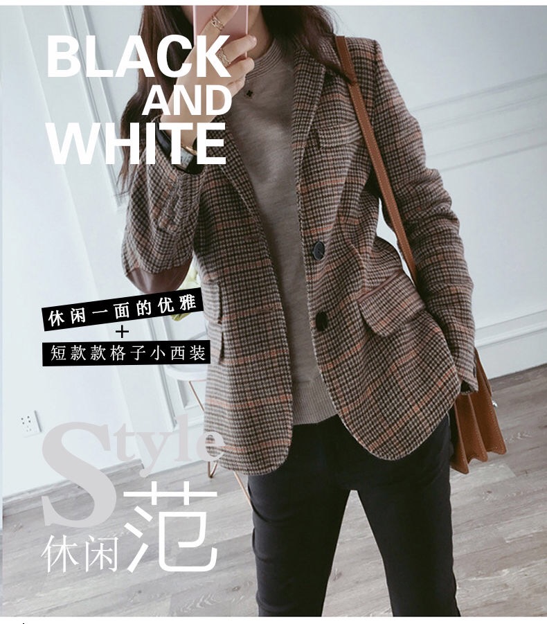 Ai Zhuer Plaid Small Suit Jacket Women's 2026 Spring and Autumn New Women's Korean Style Temperament Plaid Women's Small Suit Top Picture Color M