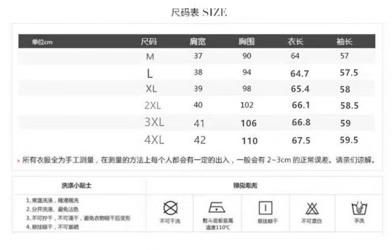 China (cm) 160-165/84-86 165-170 / 88-90 167-172 / 92-96 168-173 / 98-102 170-176 / 106-110