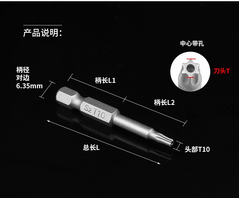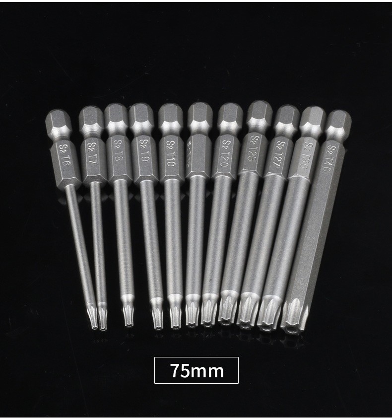Zhongshou plum blossom bit lengthened inner hexagonal six-star with center hole magnetic hand drill electric screwdriver bit wind bit set 75mm*T20 one