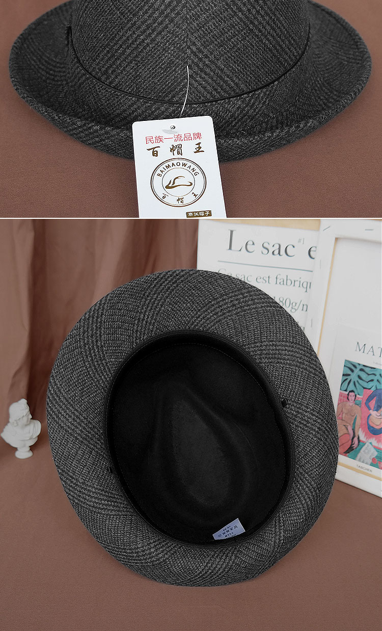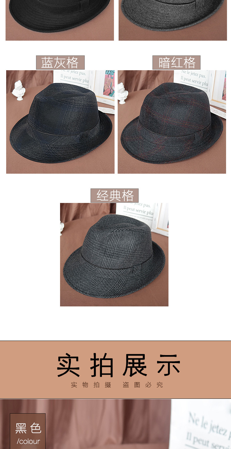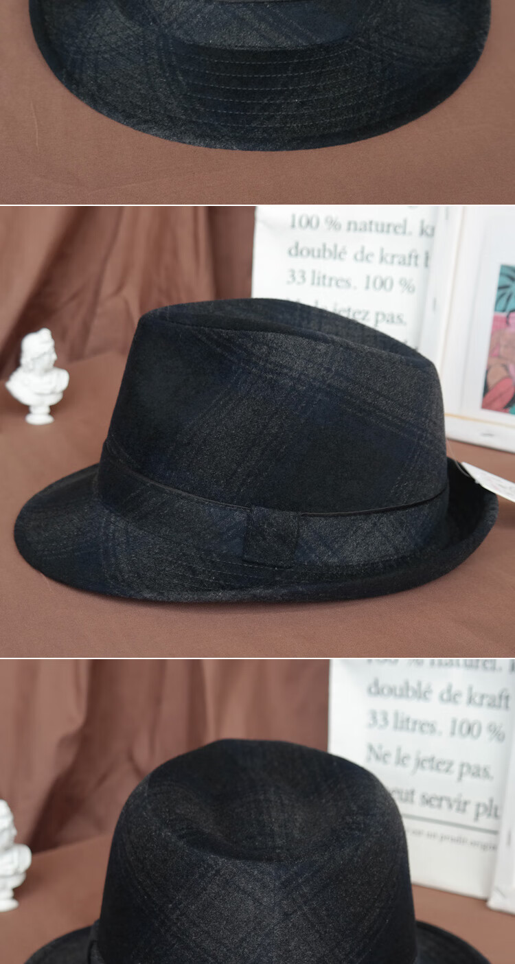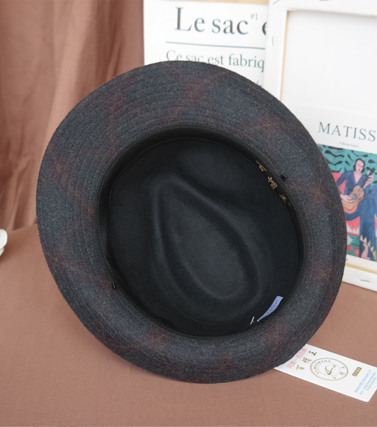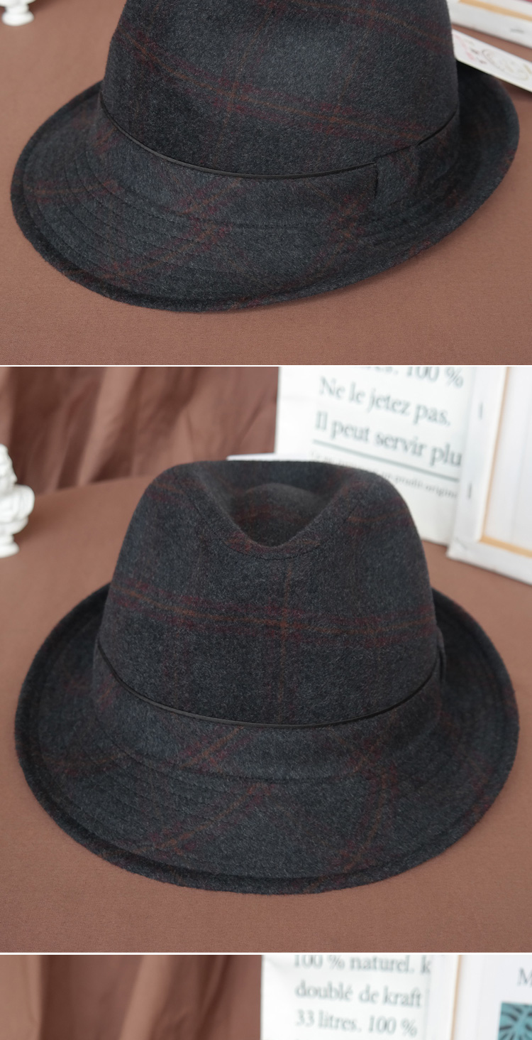 King of Hats, high-end fine wool woolen hat, wool gentleman hat, middle-aged and old hat, British hat, men's dad and grandfather hat, blue and gray plaid, L adjustable (58-59) CM