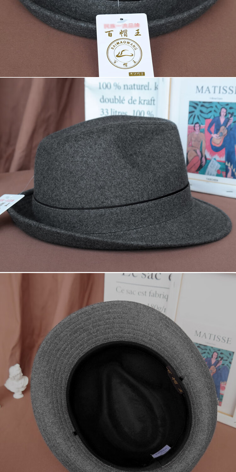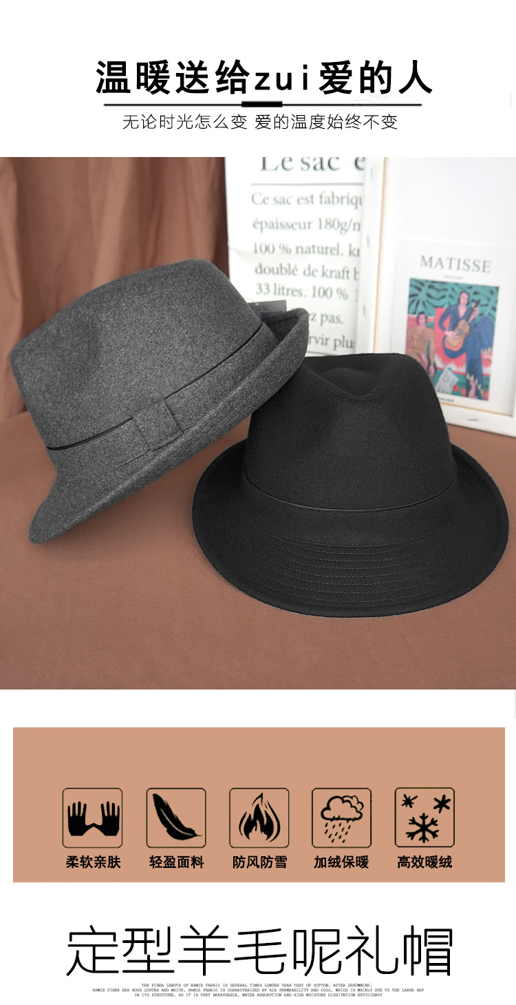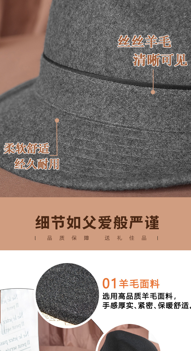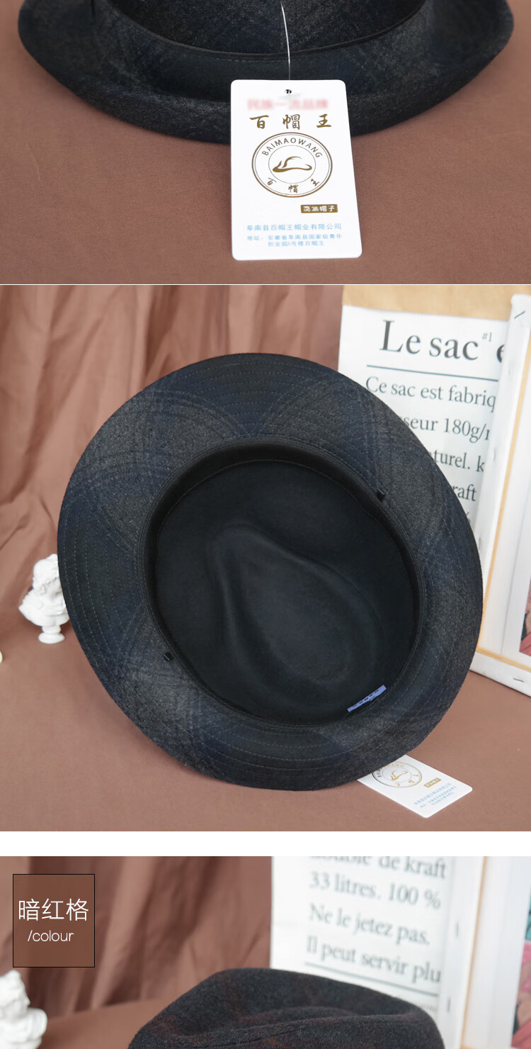 King of Hats, high-end fine wool woolen hat, wool gentleman hat, middle-aged and old hat, British hat, men's dad and grandfather hat, blue and gray plaid, L adjustable (58-59) CM