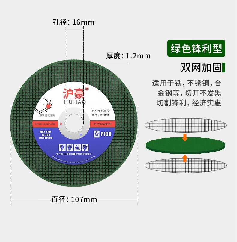 HUHAO angle grinder cutting disc 100 type cutting iron stainless steel metal grinding disc hand grinder grinding disc grinding angle grinding disc resin double mesh green disc buy 50 get 50 free 100 pieces in total