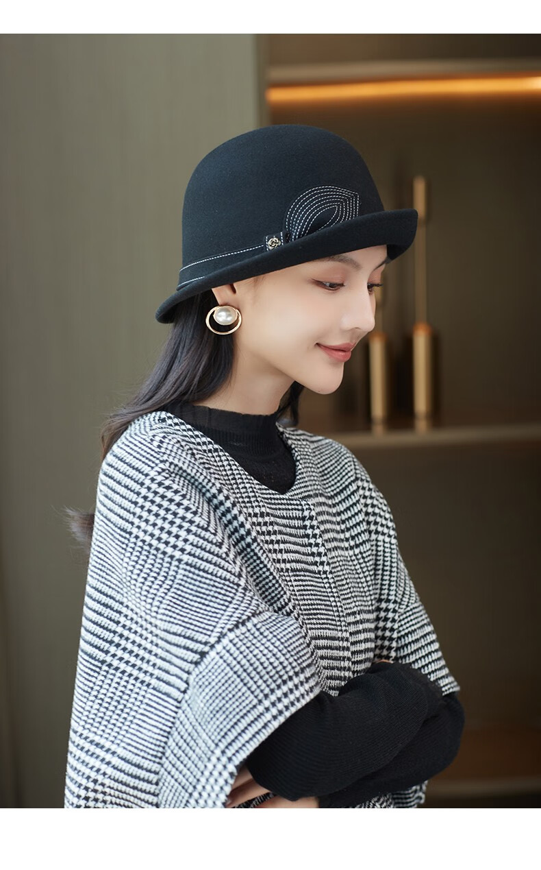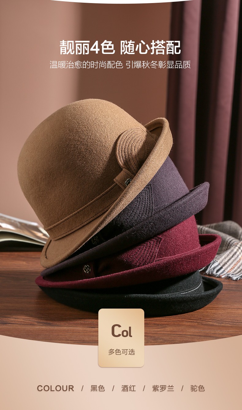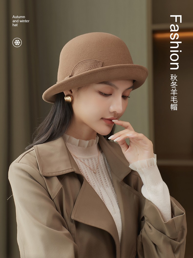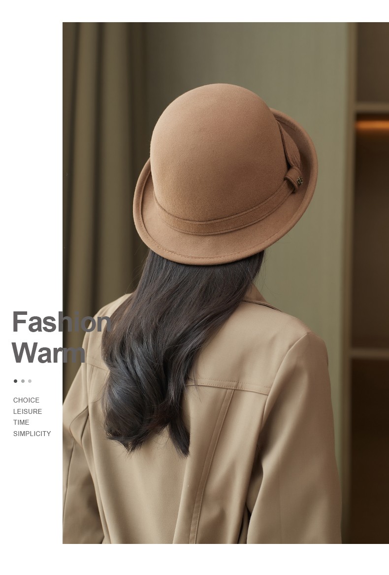 Buta Hat Women's Winter British Retro Hat Versatile Woolen Fisherman Hat Warm and Fashionable Curly Basin Hat Camel