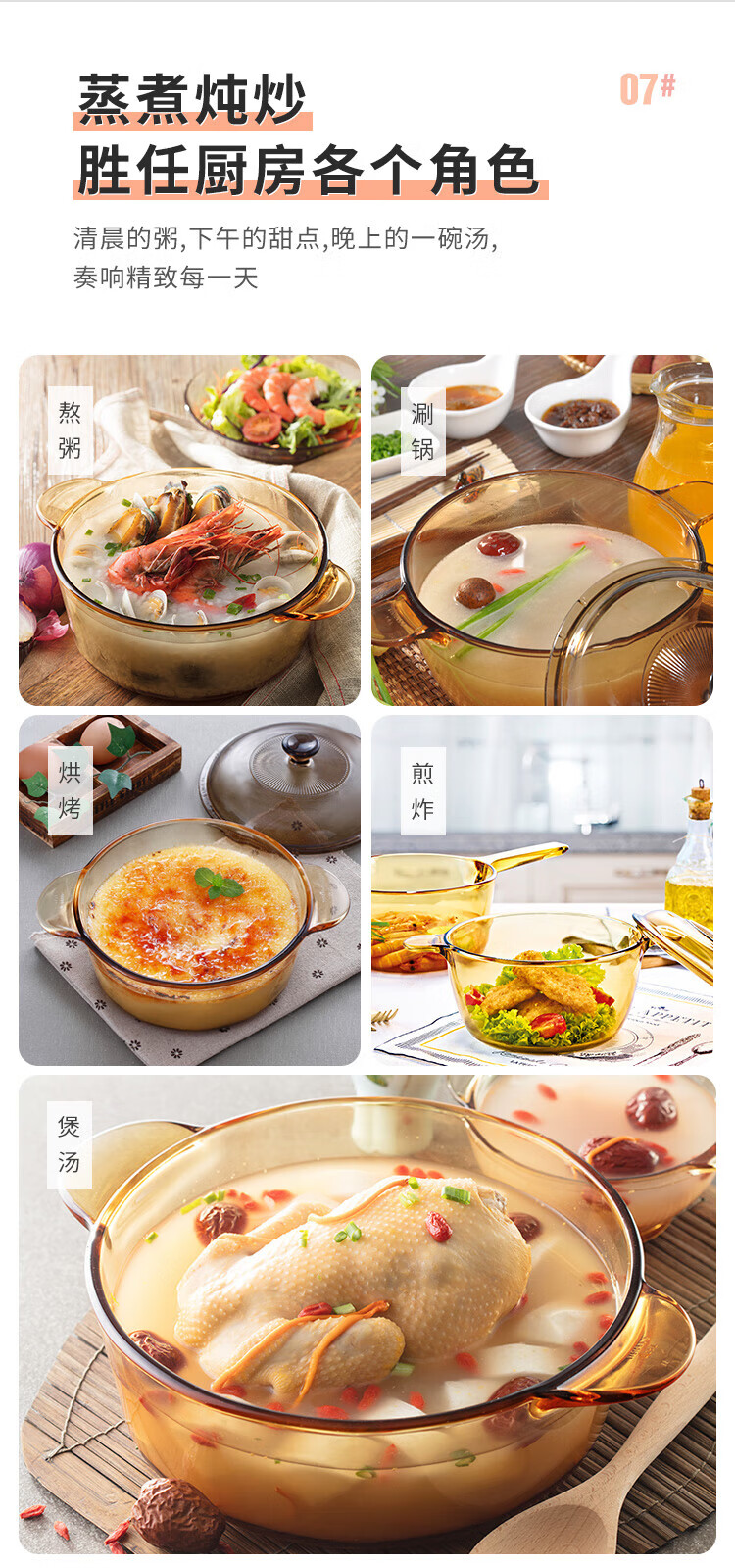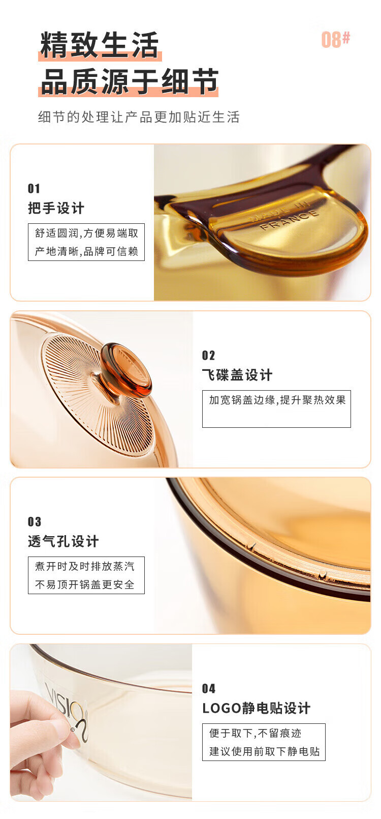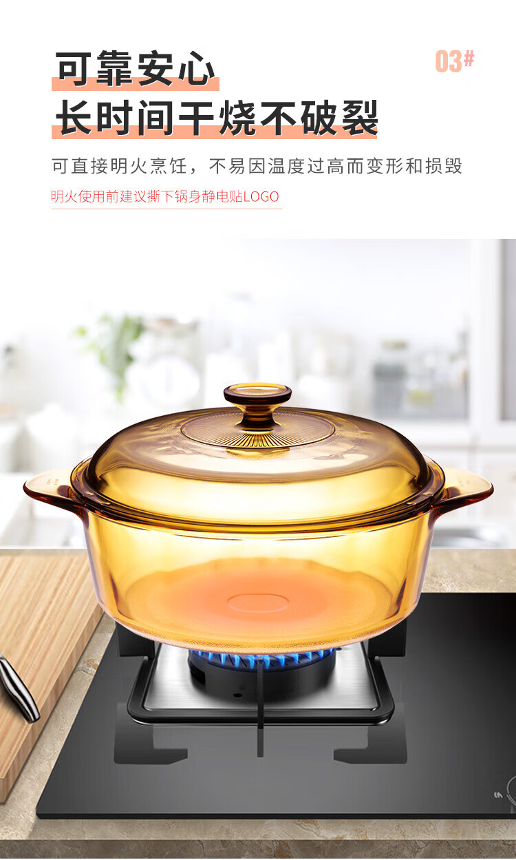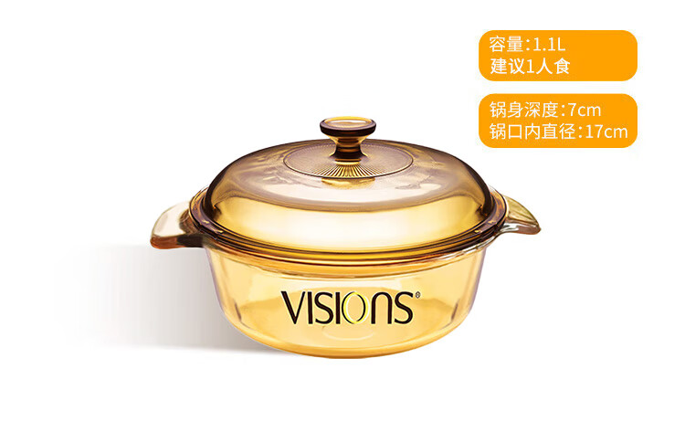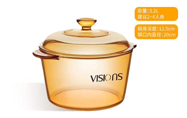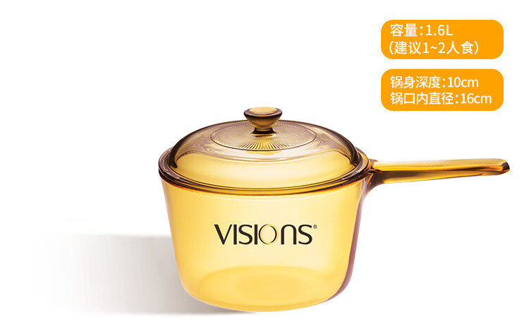 Corning (VISIONS) 1.1L milk pot + 3.2L deep soup pot + 1.6L single handle pot pot set Uncoated heat-resistant glass pot VSP16+VS11+VS32 crystal pot