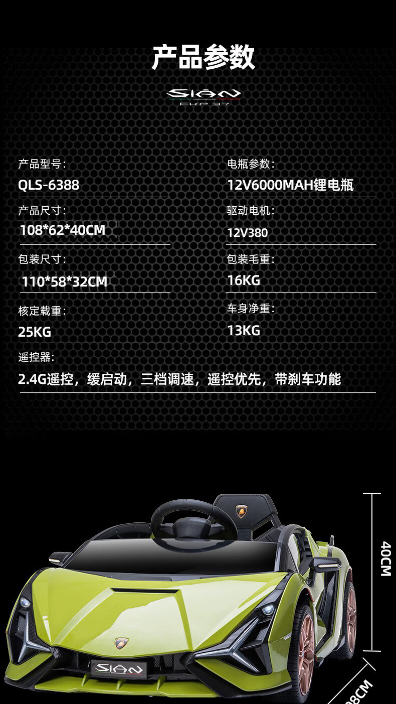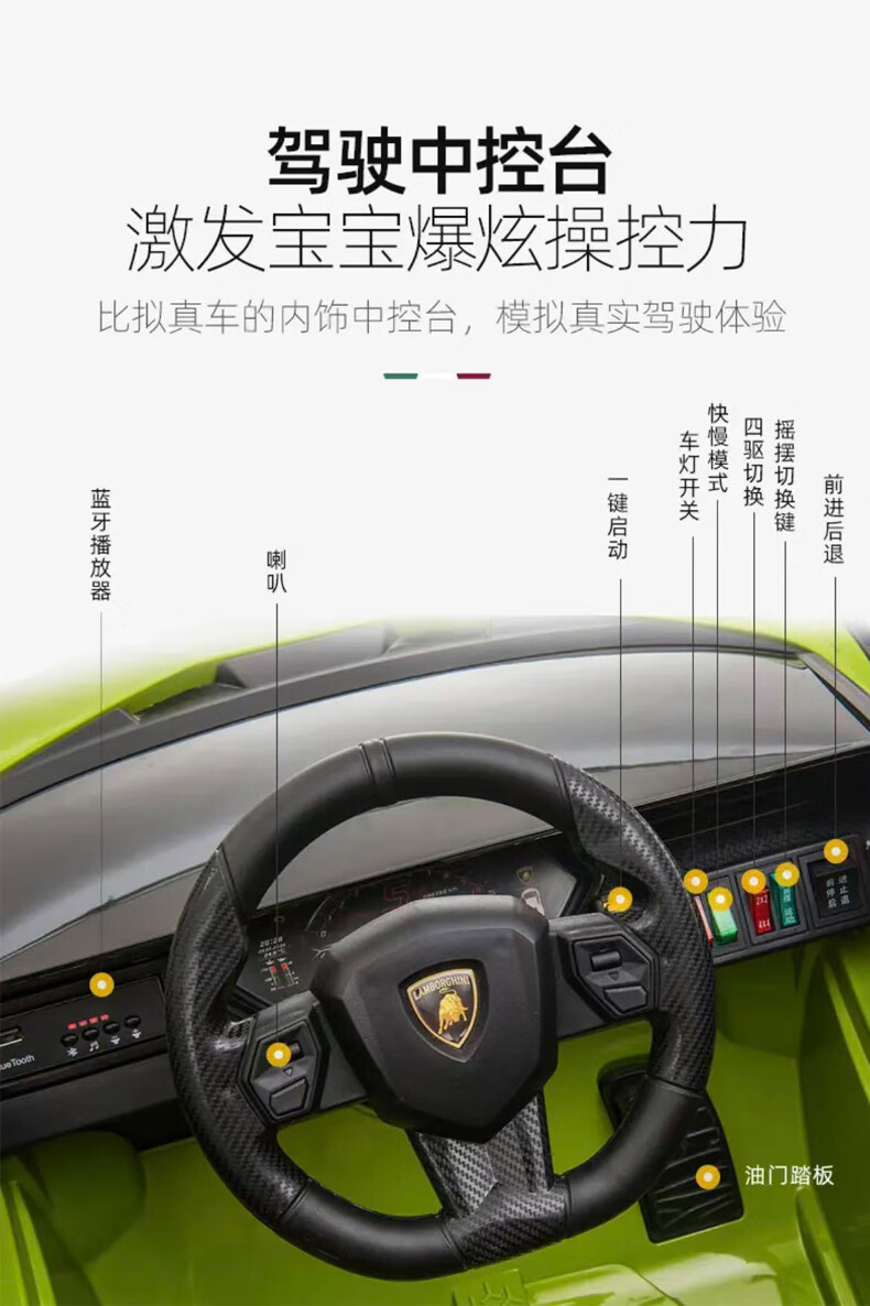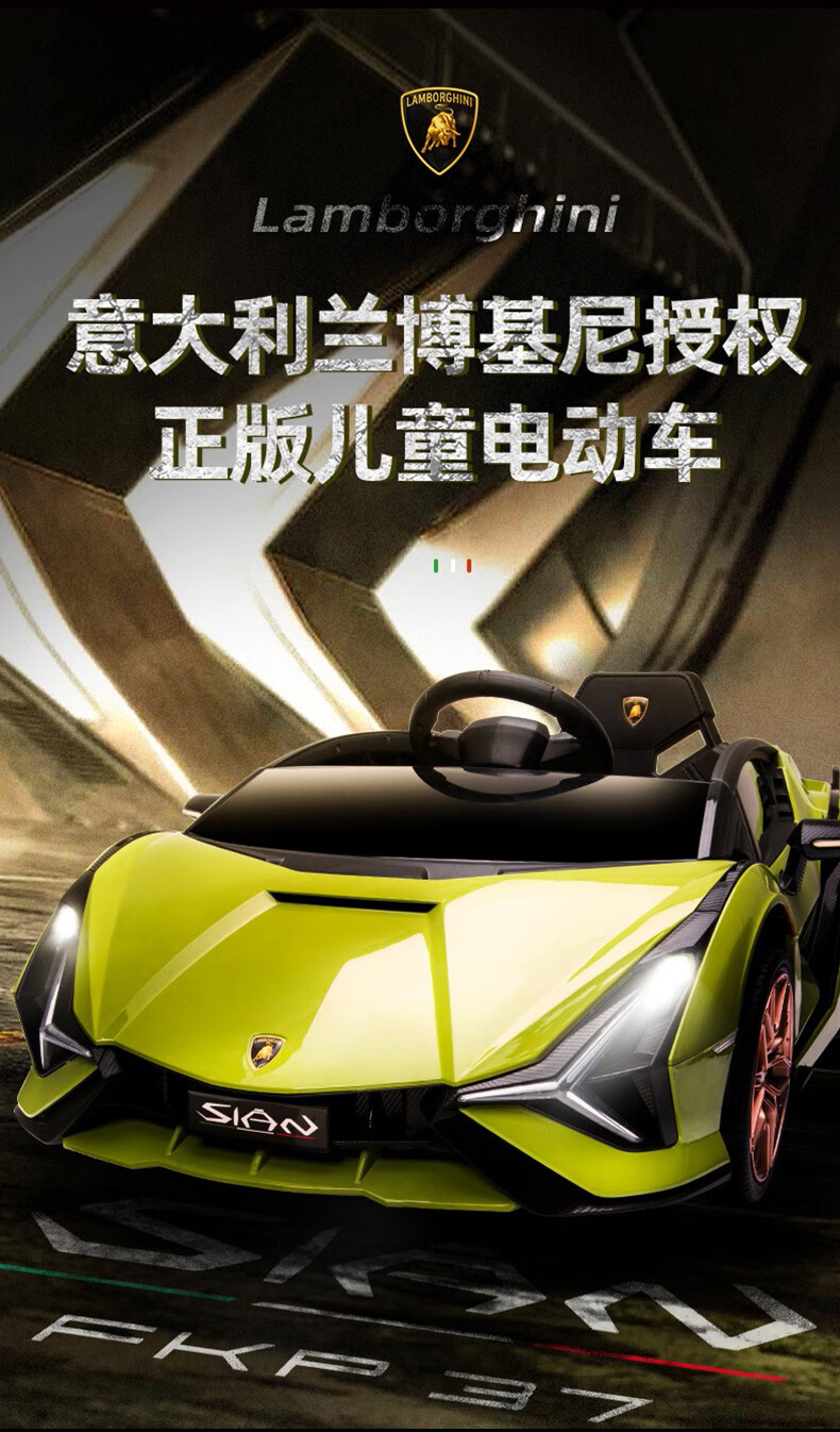 Xingchenhao Lamborghini children's electric car four-wheel toy can sit on a child's baby baby remote control car Lightning SIAN red four-wheel drive + remote control + swing + leather seat + soft wheels