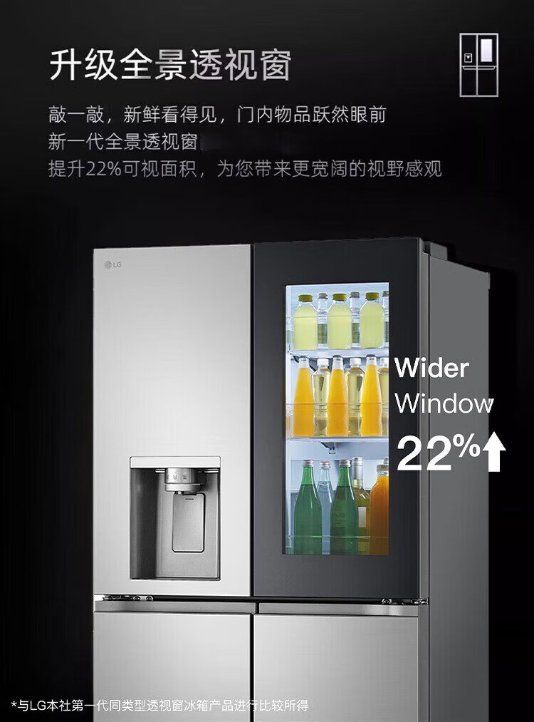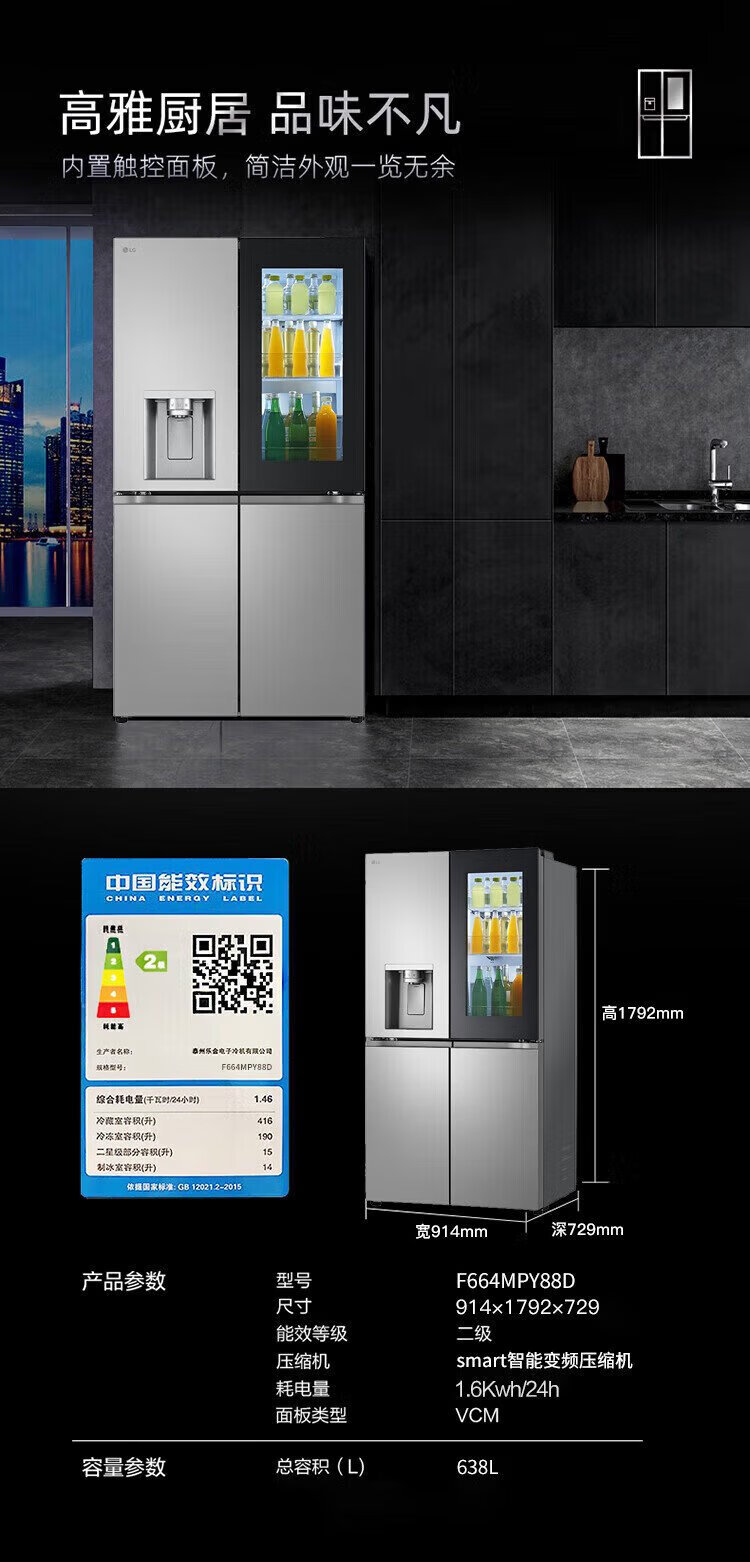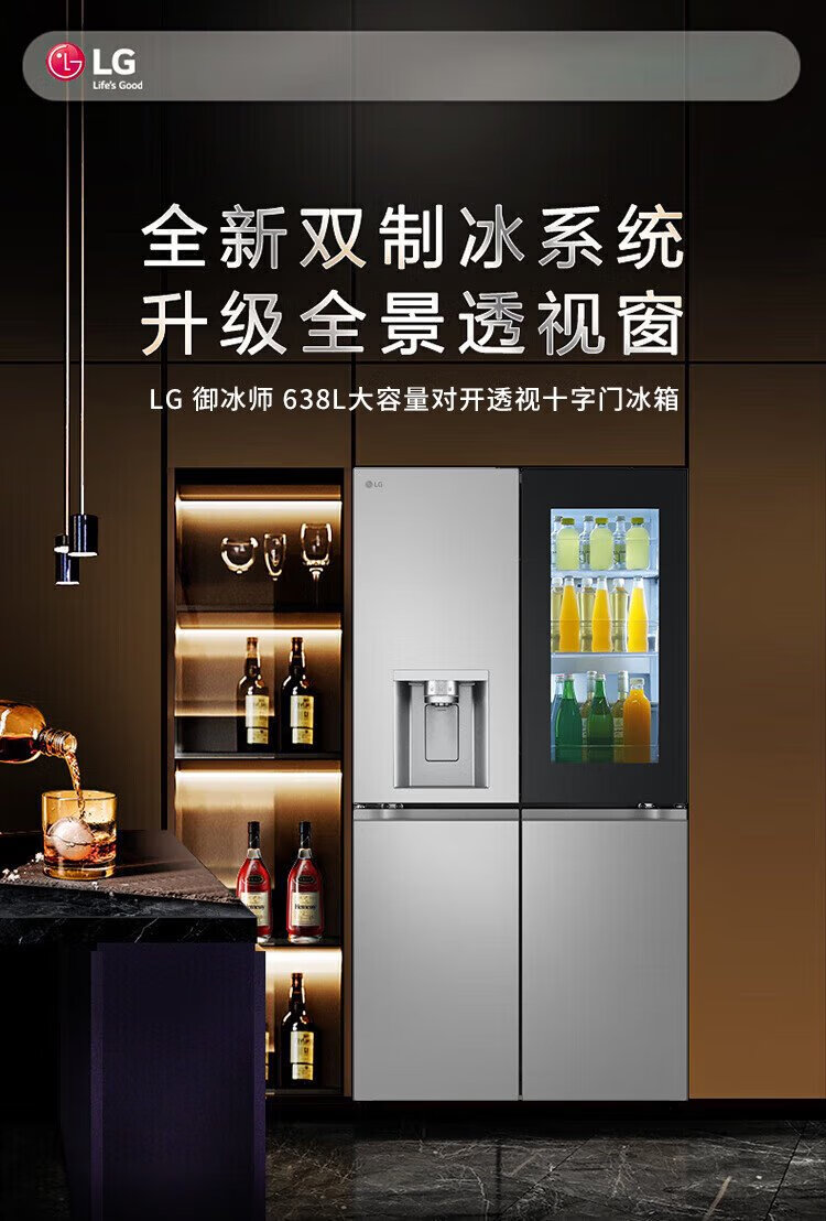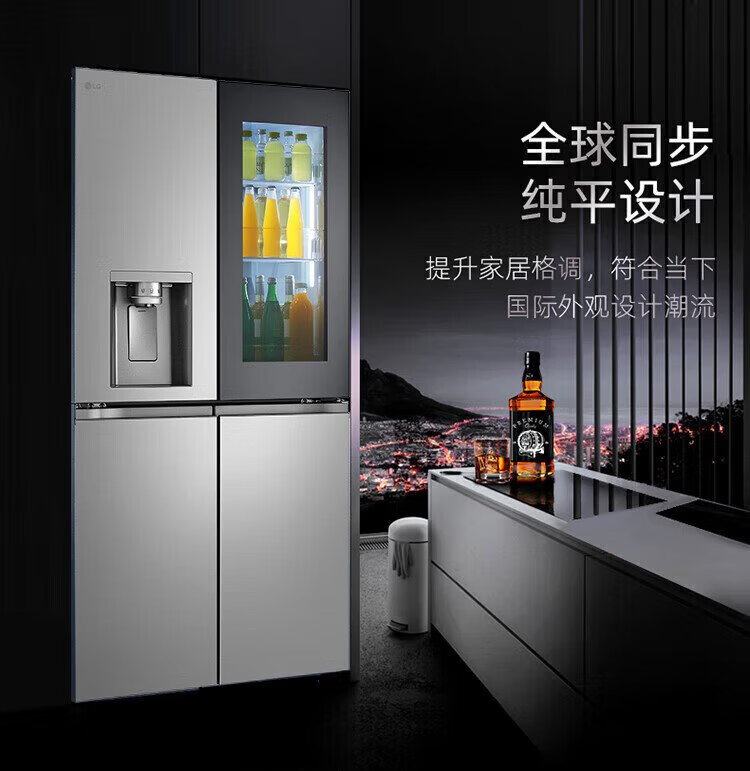 LG638 liter cross-door four-door knock-knock see-through window ice machine refrigerator air-cooled, frost-free, pure flavor and fresh, household large capacity, fully automatic ice making system, home ice bar, cross-door four-door ice making F664MPY88D