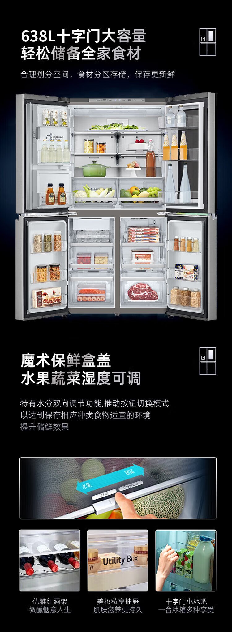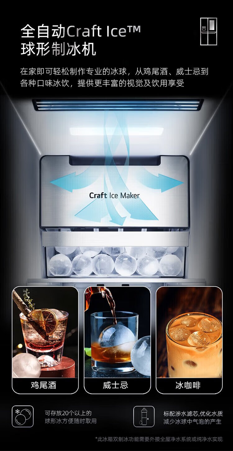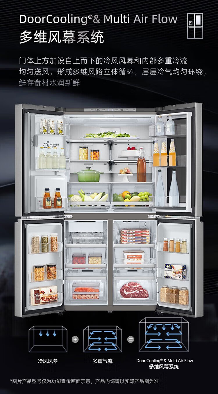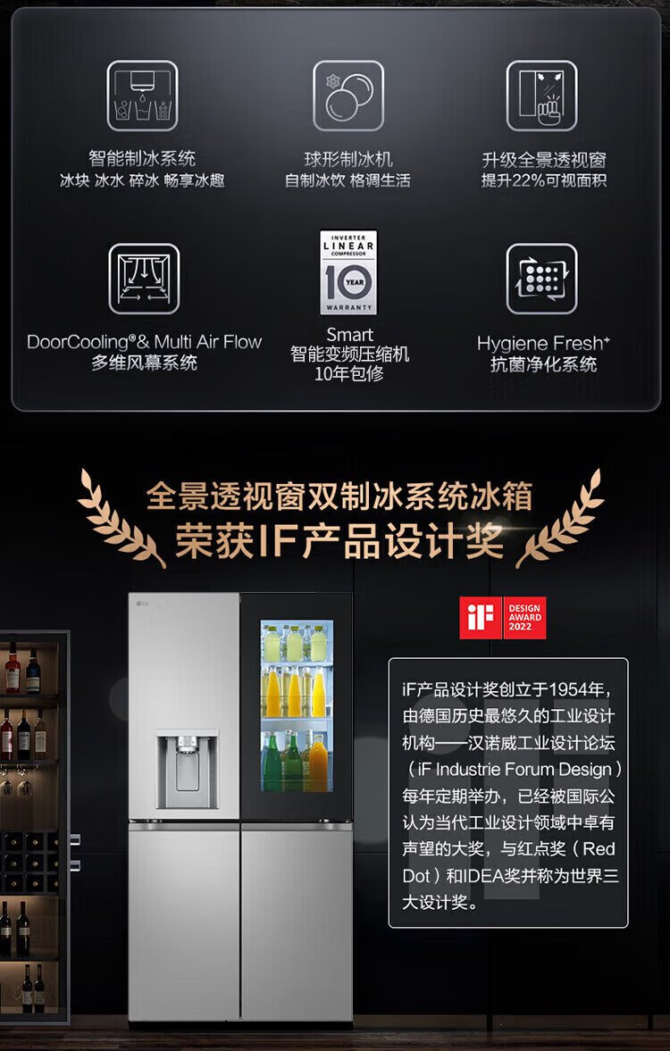 LG638 liter cross-door four-door knock-knock see-through window ice machine refrigerator air-cooled, frost-free, pure flavor and fresh, household large capacity, fully automatic ice making system, home ice bar, cross-door four-door ice making F664MPY88D