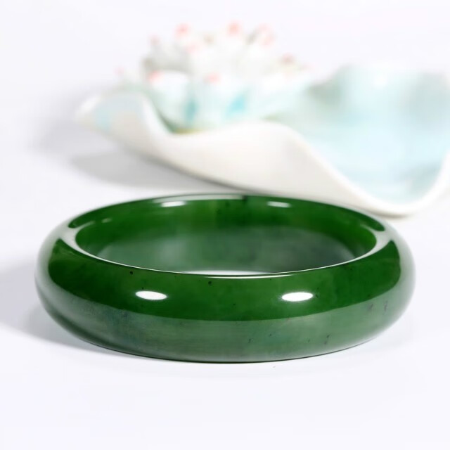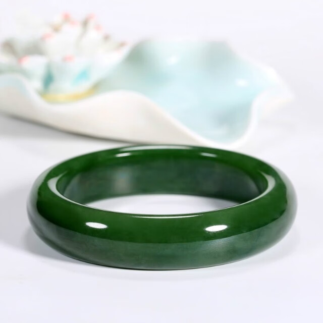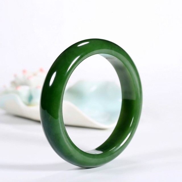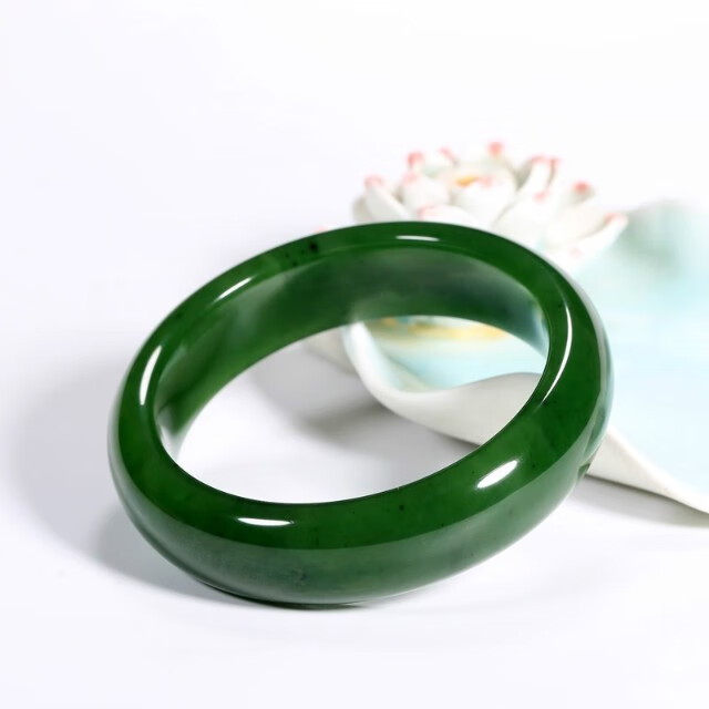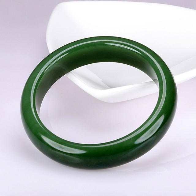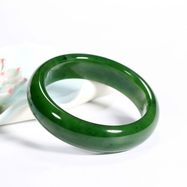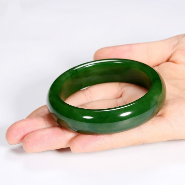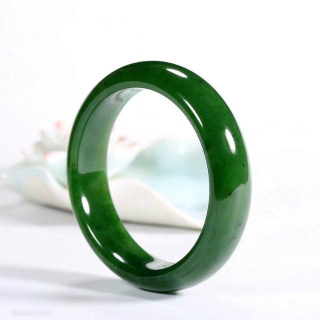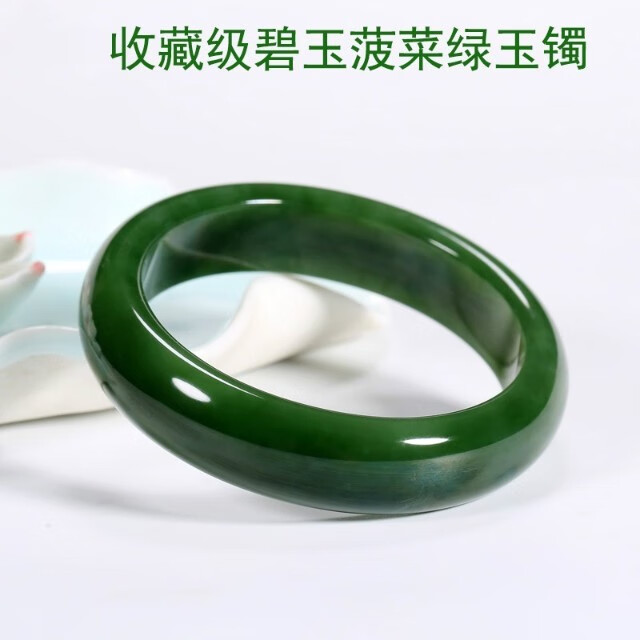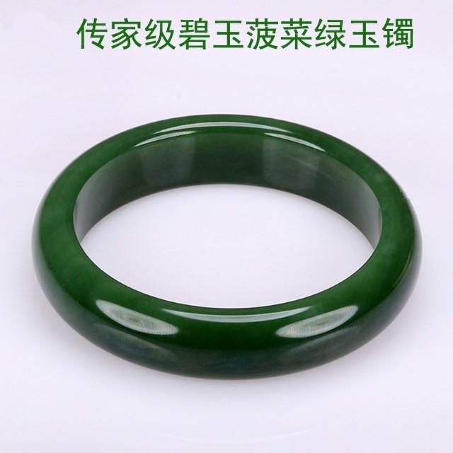 Dingfei Xinjiang Hotan Jade Bracelet Laokeng Material Jasper Spinach Green Women's Model Wide Flat Jade Bracelet Collection Grade No Black Spots 62-63 Circle