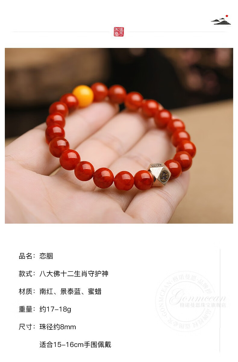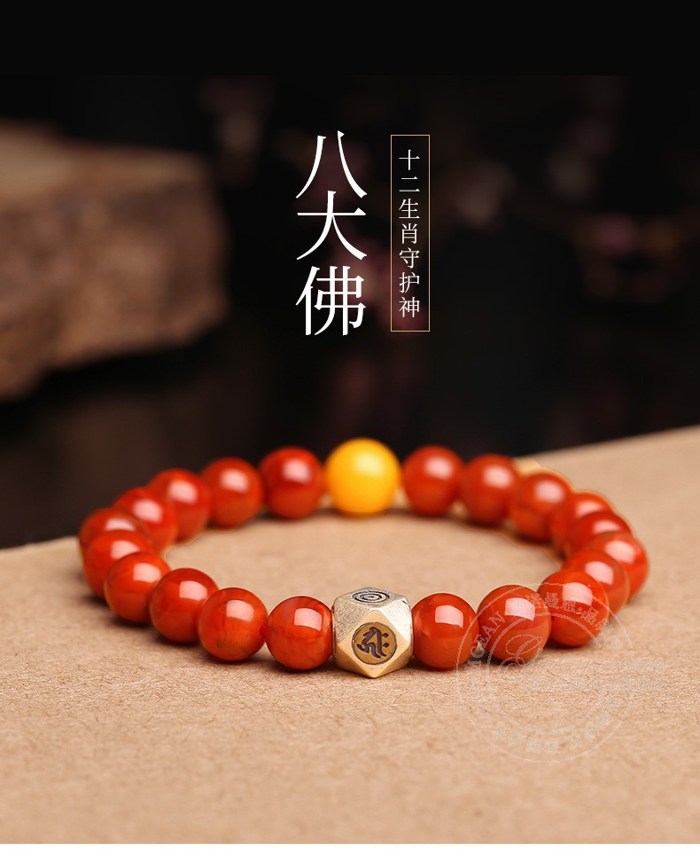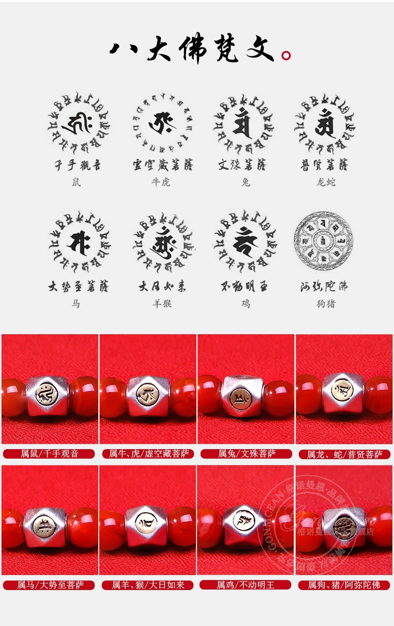 GONMCEAN South Red Bracelet Women's Bracelet Eight Buddhas and Persimmon Red Bracelet Gift for the Year of the Zodiac Rat/Thousand-Hand Guanyin