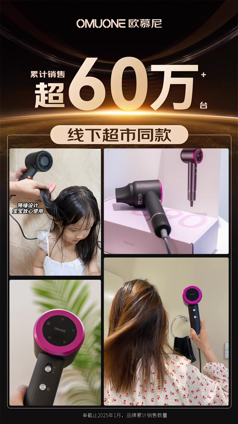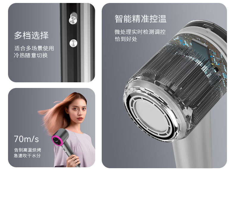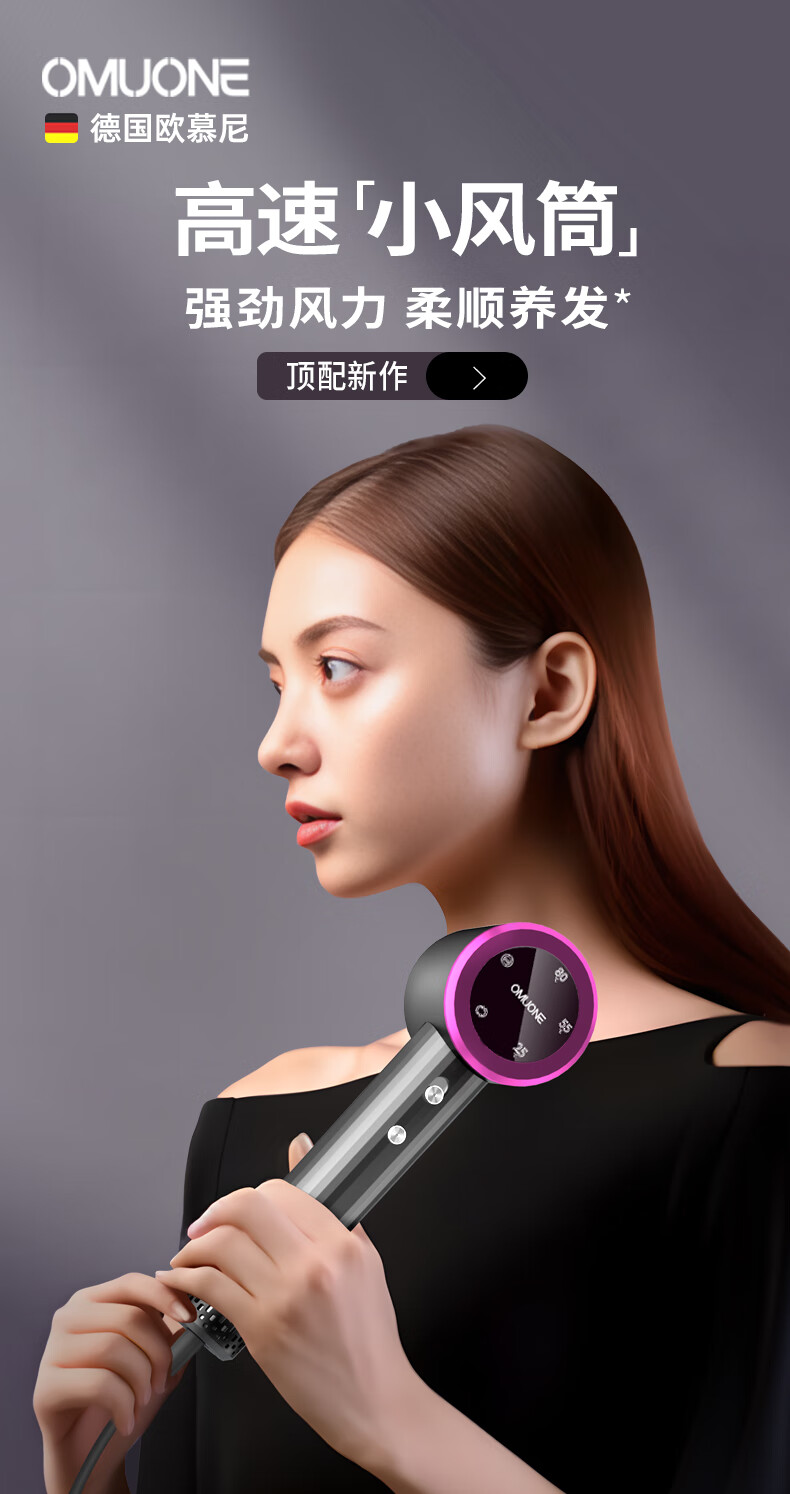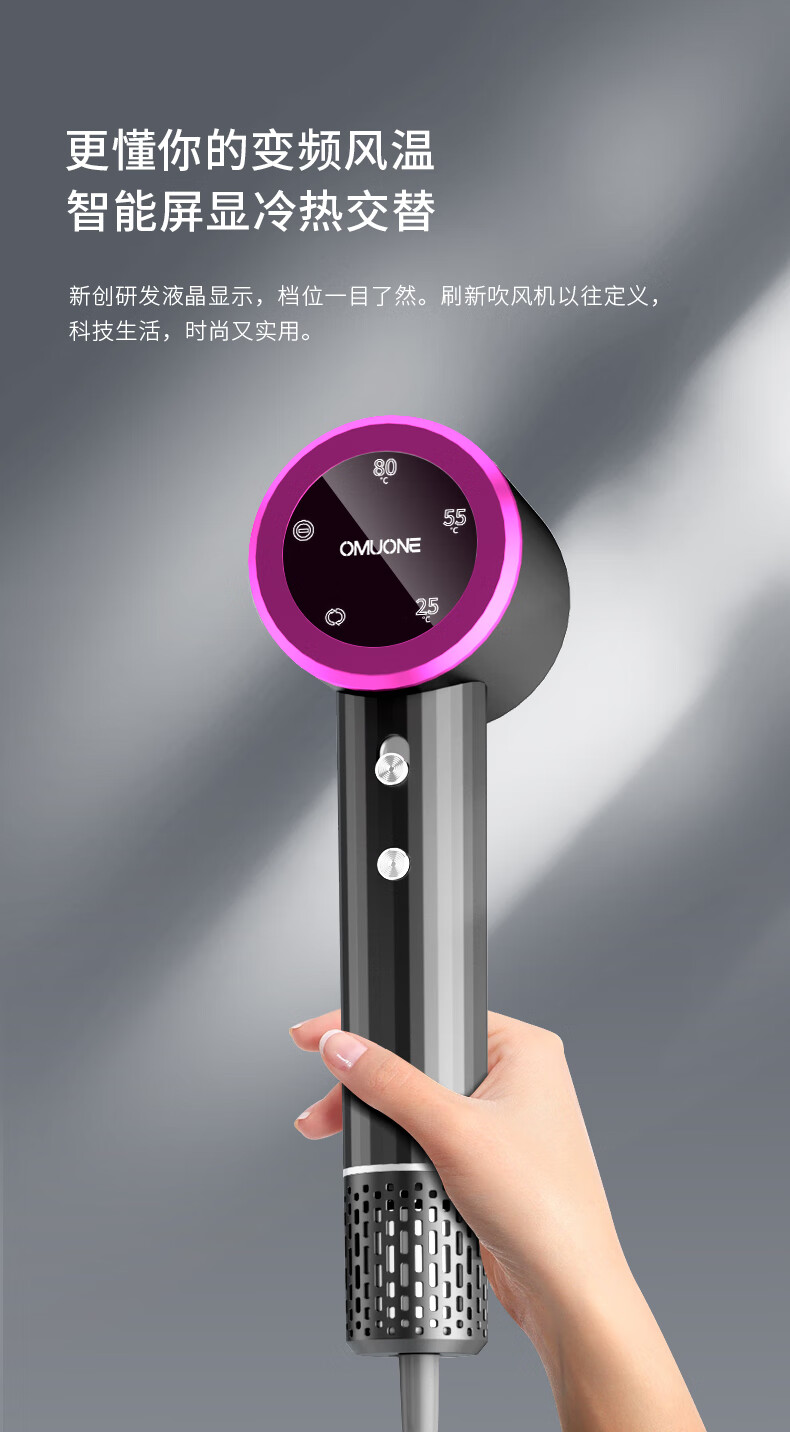 OMUONE high-speed hair dryer household high-power hair care does not damage hair negative ions barber shop professional noise reduction hairdryer salon quick-drying student dormitory gift box for girlfriend birthday Elegant gray 3 meters long line haircut version gift box
