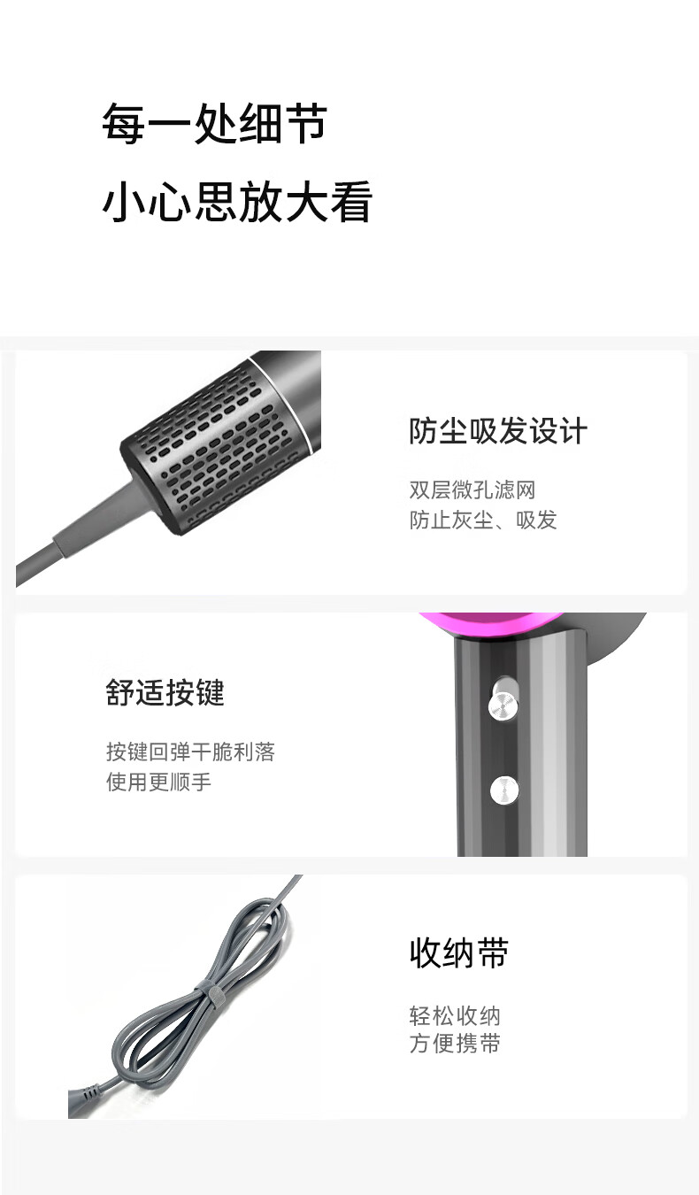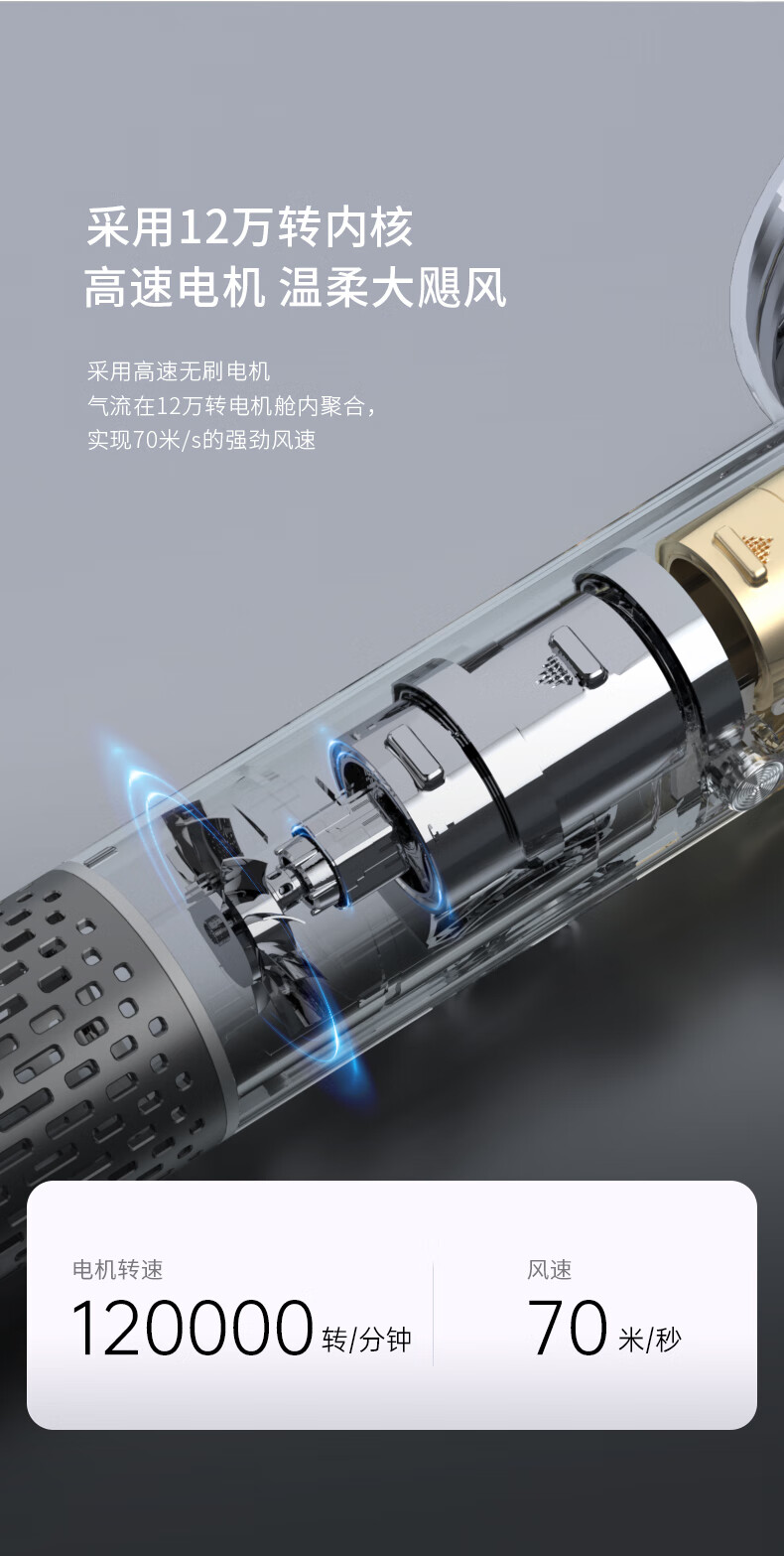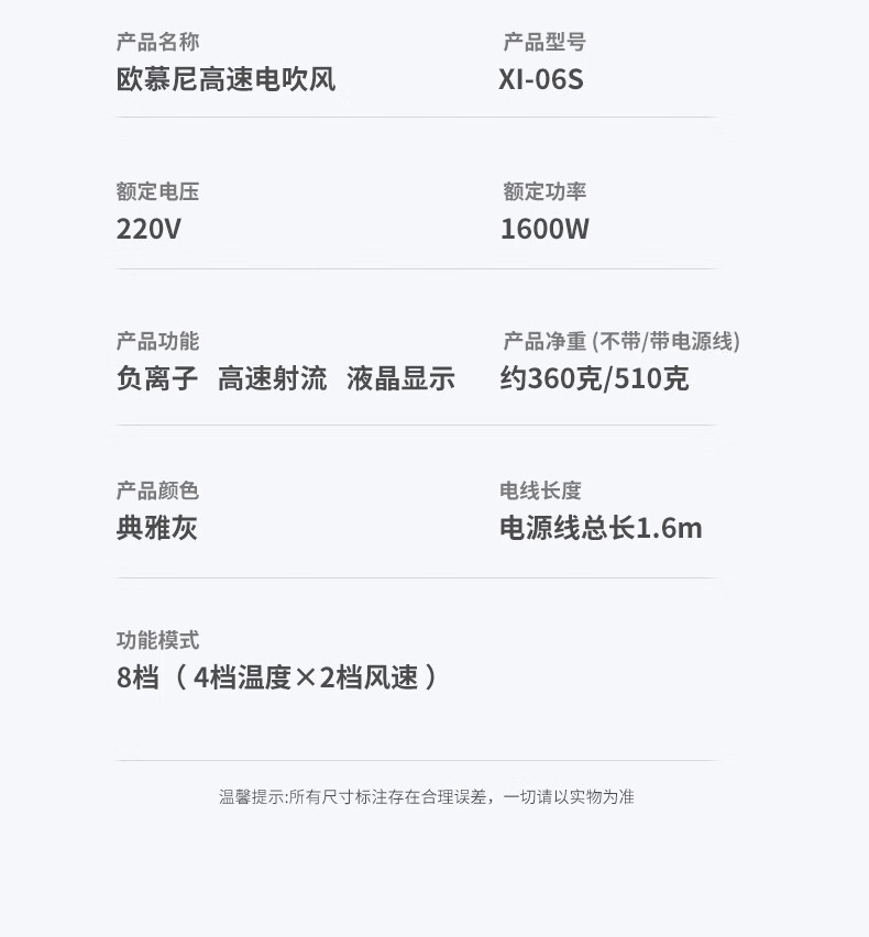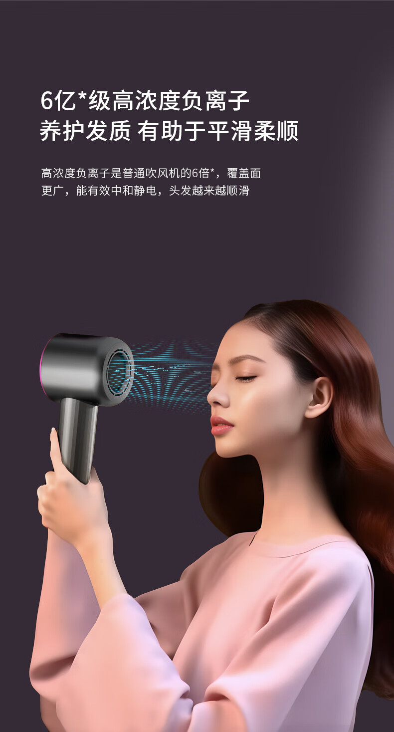 OMUONE high-speed hair dryer household high-power hair care does not damage hair negative ions barber shop professional noise reduction hairdryer salon quick-drying student dormitory gift box for girlfriend birthday Elegant gray 3 meters long line haircut version gift box