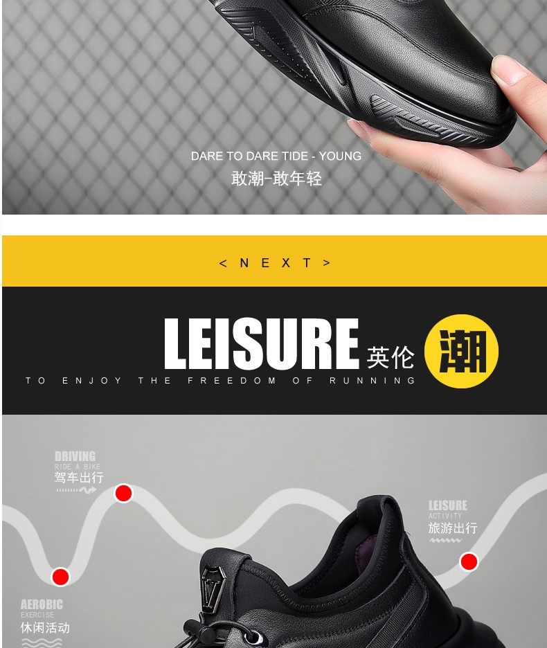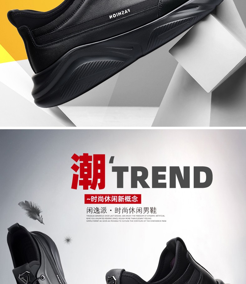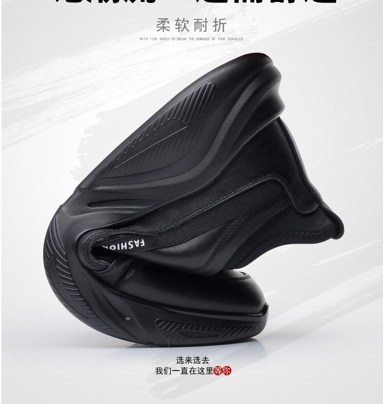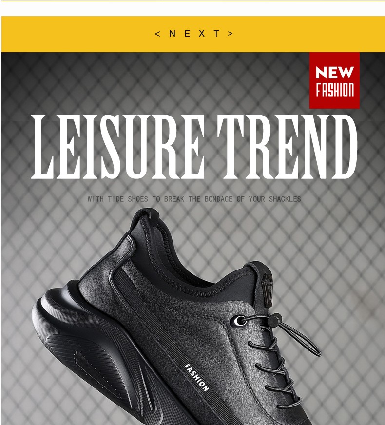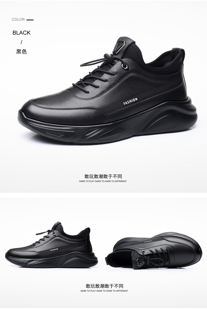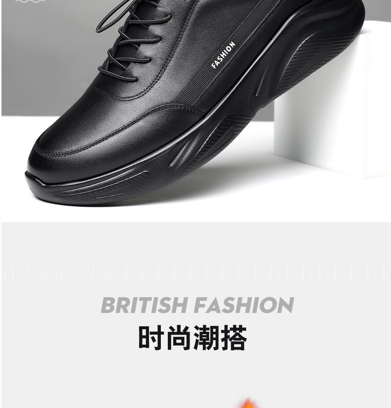 GENAI New Genuine Leather Sports Shoes Men's Casual Shoes Casual Leather Shoes Men's Business Shoes Heightening Shoes Trendy Shoes Men's Shoes Black Genuine Leather + Elastic Mouth Four Seasons Trendy Shoes 40 (250mm)